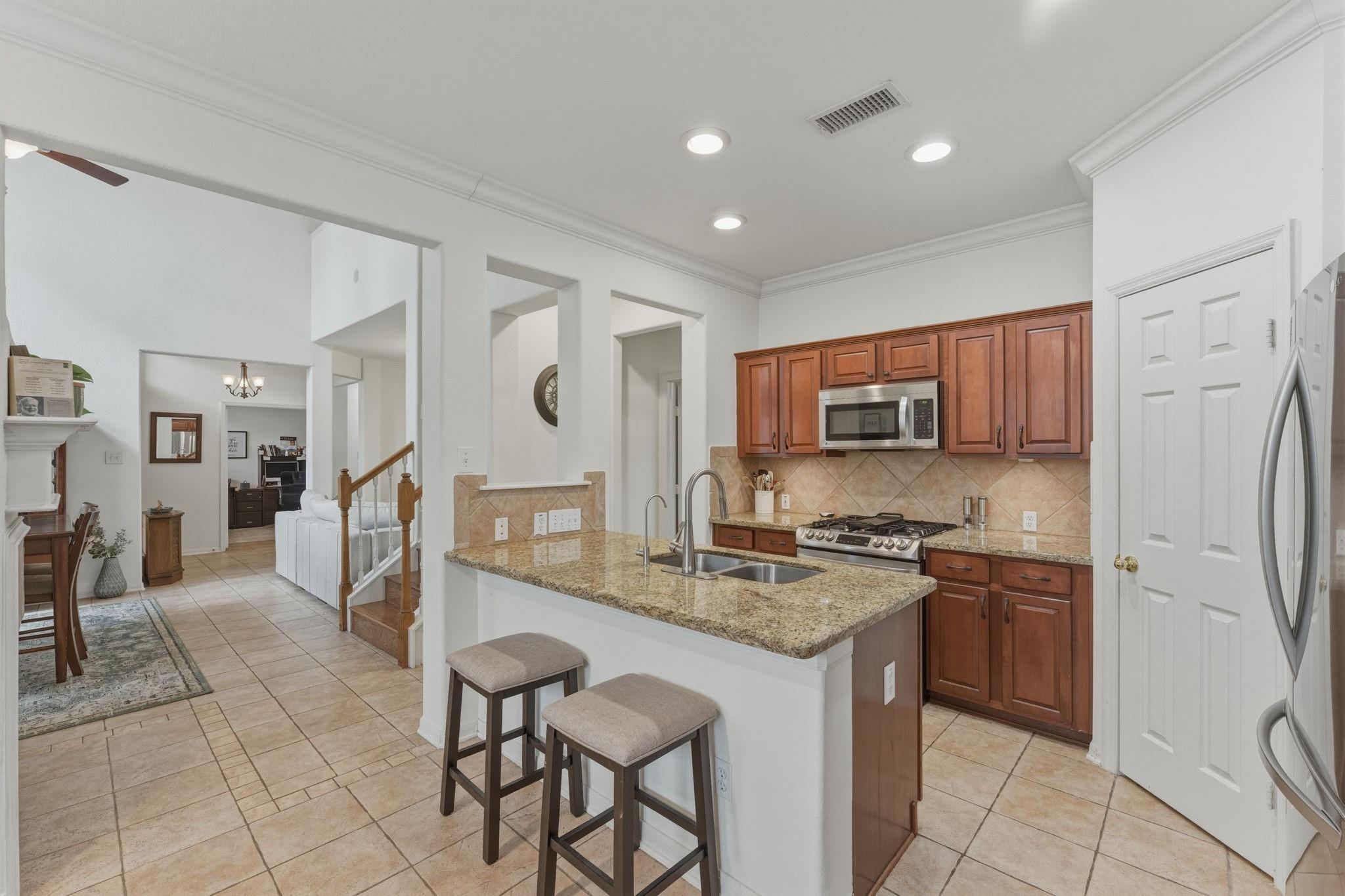 InteriorFireplace:1/Gaslog FireplaceFloors:Engineered Wood,TileBathroom Description:Half Bath,Primary Bath: Double SinksBedroom Desc:En-Suite Bath,Primary Bed - 1st Floor,Walk-In ClosetKitchen Desc:Breakfast Bar,Island w/o Cooktop,Kitchen open to Family Room,PantryRoom Description:Breakfast Room,Family Room,Formal Dining,Gameroom Up,Home Office/Study,Utility Room in HouseHeating:Central GasCooling:Central ElectricWasher/Dryer Conn:YesDishwasher:YesDisposal:YesMicrowave:YesRange:Freestanding Range,Gas RangeOven:Single OvenEnergy Feature:Ceiling FansInterior:Crown Molding,Fire/Smoke Alarm,Vaulted Ceiling,Window Coverings