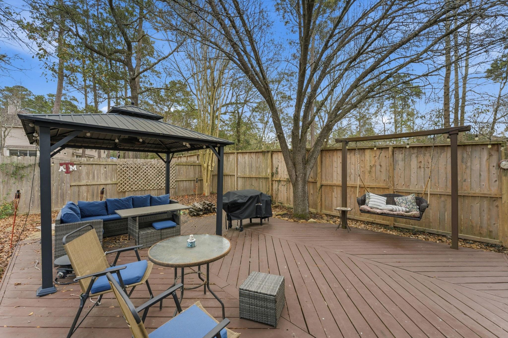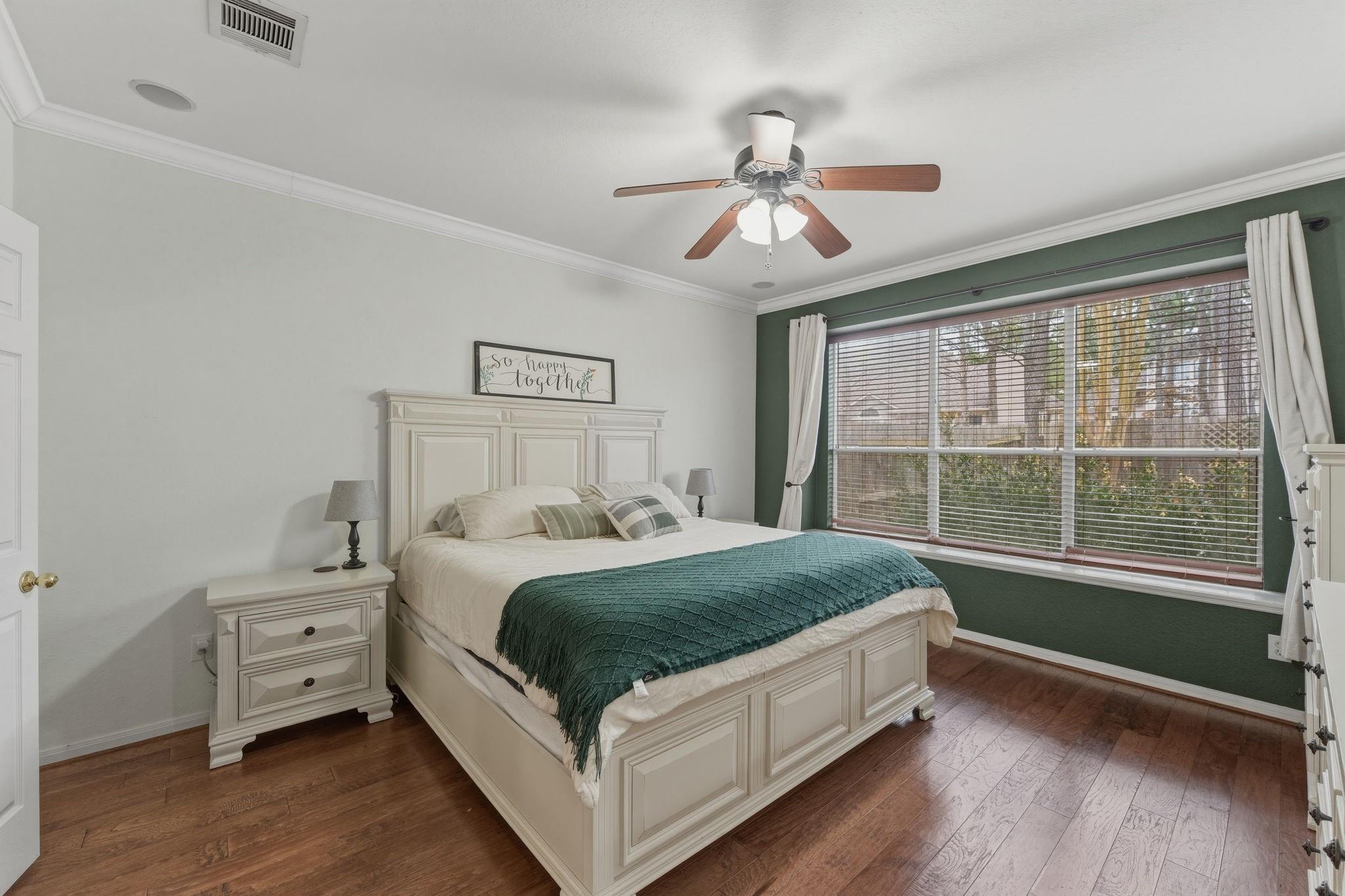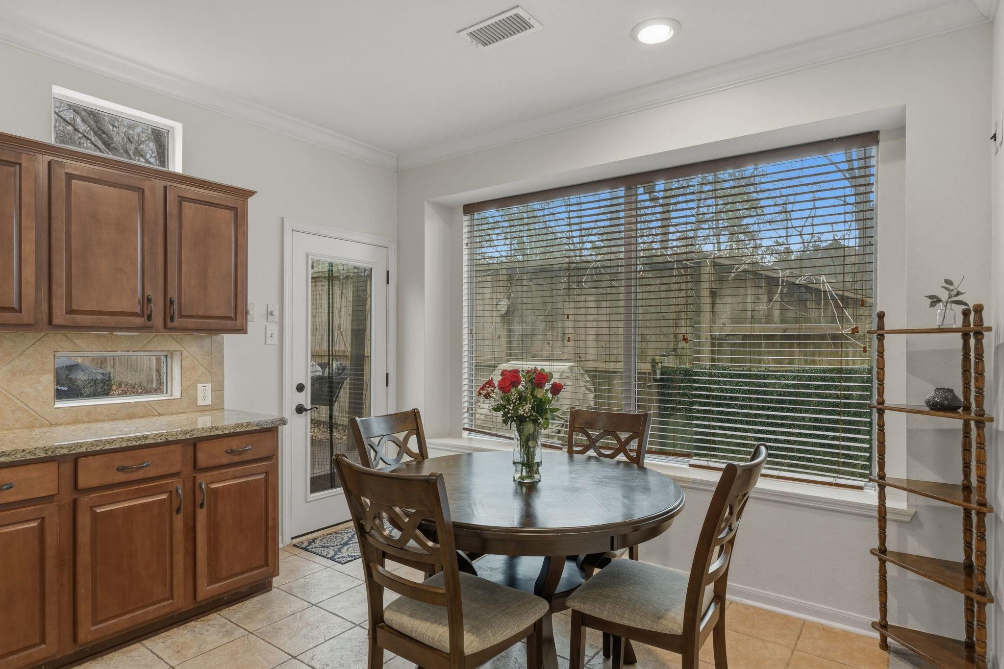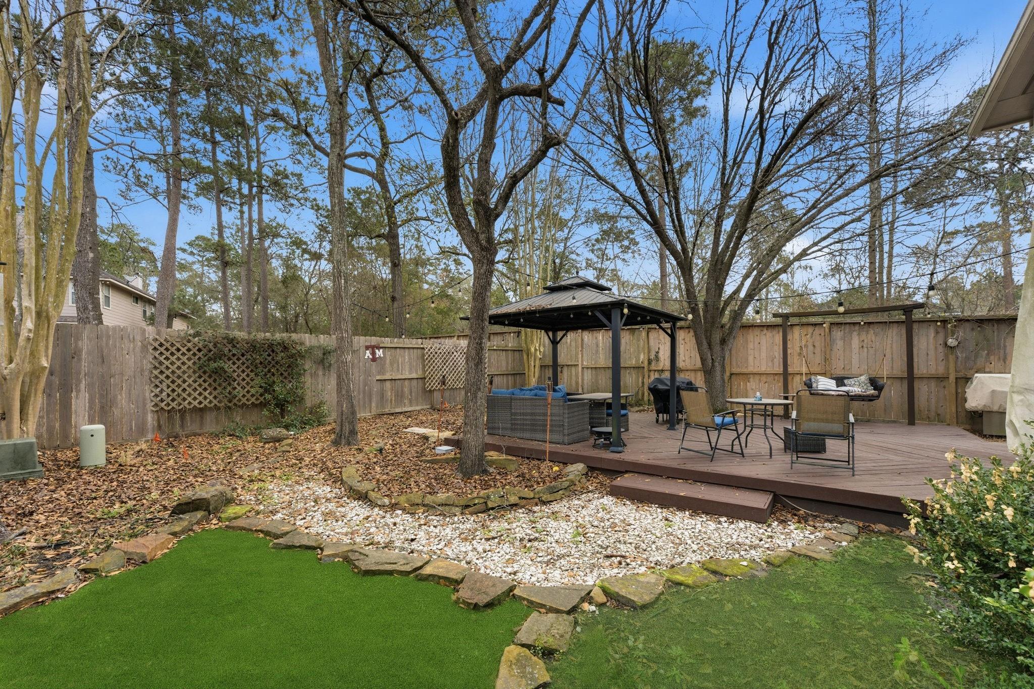 Presenting a beautiful, well maintained townhome in an excellent location of The Woodlands and zoned to the coveted TWHS and a short, shady walk to Windvale Park, pool, tennis courts, basketball courts and new pickle ball courts. This property is a genuine “Lock and Leave” with all exterior maintenance (roof included) and front yard maintained by the HOA (including the sprinkler system). The backyard of this particular unit is a natural setting that does not require mowing, etc. Insurance on the exterior of the dwelling is also included in the HOA fee. Upon entering you will be drawn to the soaring ceilings and an abundance of windows. It’s rare to find a townhome in The Woodlands with a first floor primary bedroom and this really sets this home apart. No carpet, replacement energy-efficient windows, office/flex room on the first floor, surround sound, great storage including a Texas basement, two sided FP, covered gazebo, and roof 2019. Sitting on a corner lot which offers priv