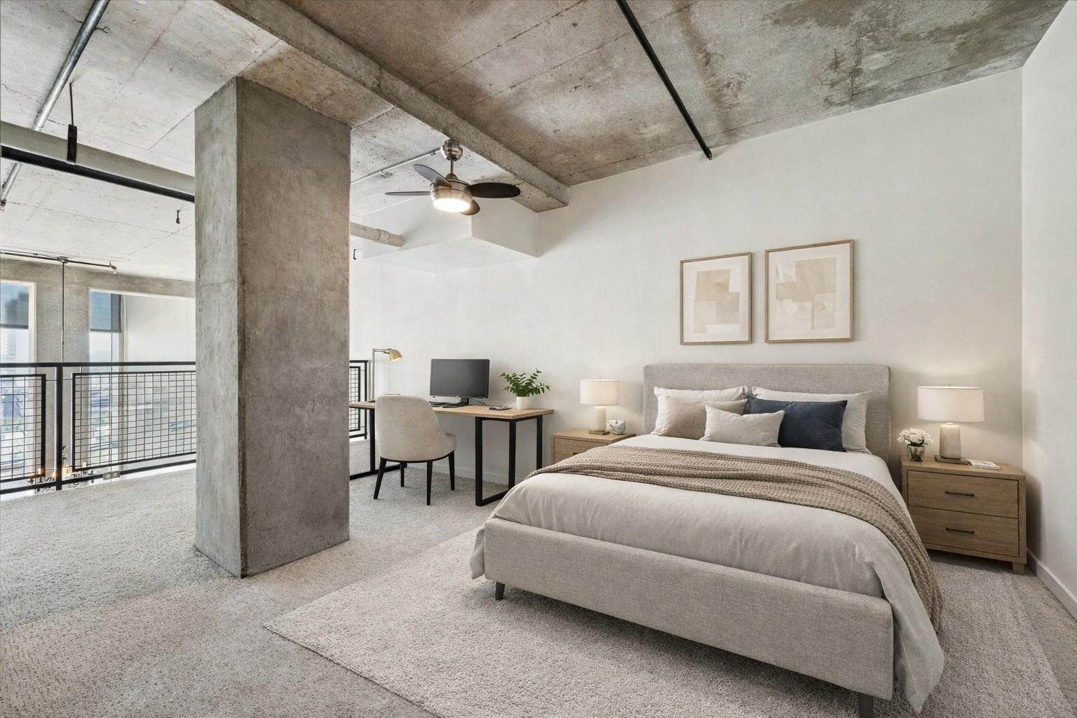 Located on the 13th floor, this loft offers impressive views of Midtown and Downtown. Situated in the heart of Midtown, it provides convenient access to dining, shopping, cultural attractions, and major freeways. The open, naturally lit floor plan serves as an ideal foundation for personalized interior design, presenting a unique opportunity for elegant urban living with exceptional customization potential. Building amenities and features are managed and regularly reviewed to ensure a high standard of comfort and convenience for residents.