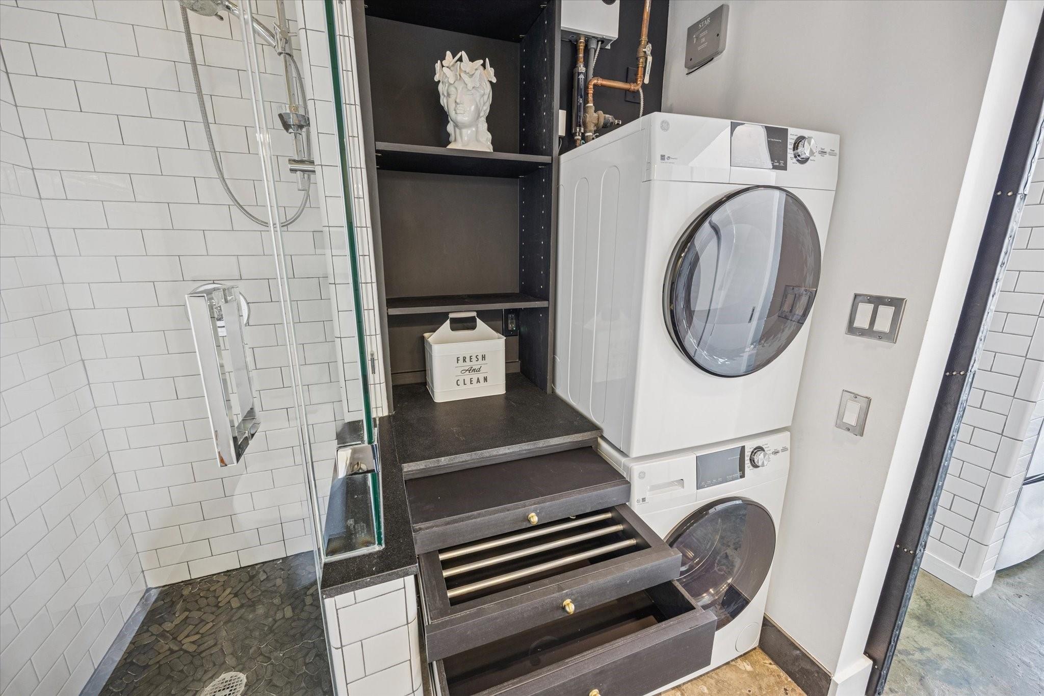 Unit 5400 at RISE Lofts is one of a kind, no other unit like it. Features $100K in upgrades, with designer finishes throughout, including an European style kitchen with touch lighting, custom cabinets with LED under cabinet lighting, butcherblock countertops, oak slab shelving, induction 5 burner stove with double oven, and a designer vent hood from Italy. Primary suite offers his & hers custom closets with built in LED auto lighting & solid walnut flooring. Fully remodeled spa-style bath with custom vanity, double sinks, soaking tub, and separate shower. Heated towel rack and more. Bathrooms fully remodeled and tankless water heater was added. Every space is intelligently utilized, 2nd-floor loft area perfect for a desk or reading nook, extra BONUS room with hidden storage and a built-in bunk bed. High ceilings and floor-to-ceiling windows fill the home with natural light. Close to everything Midtown and Downtown have to offer. Don’t miss this opportunity. Check out the virtual tour