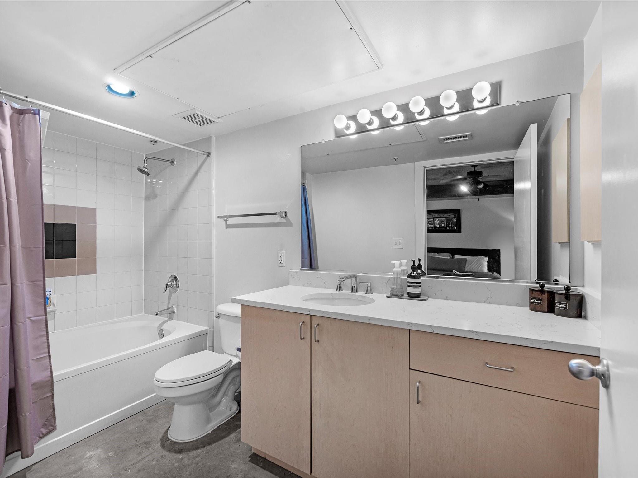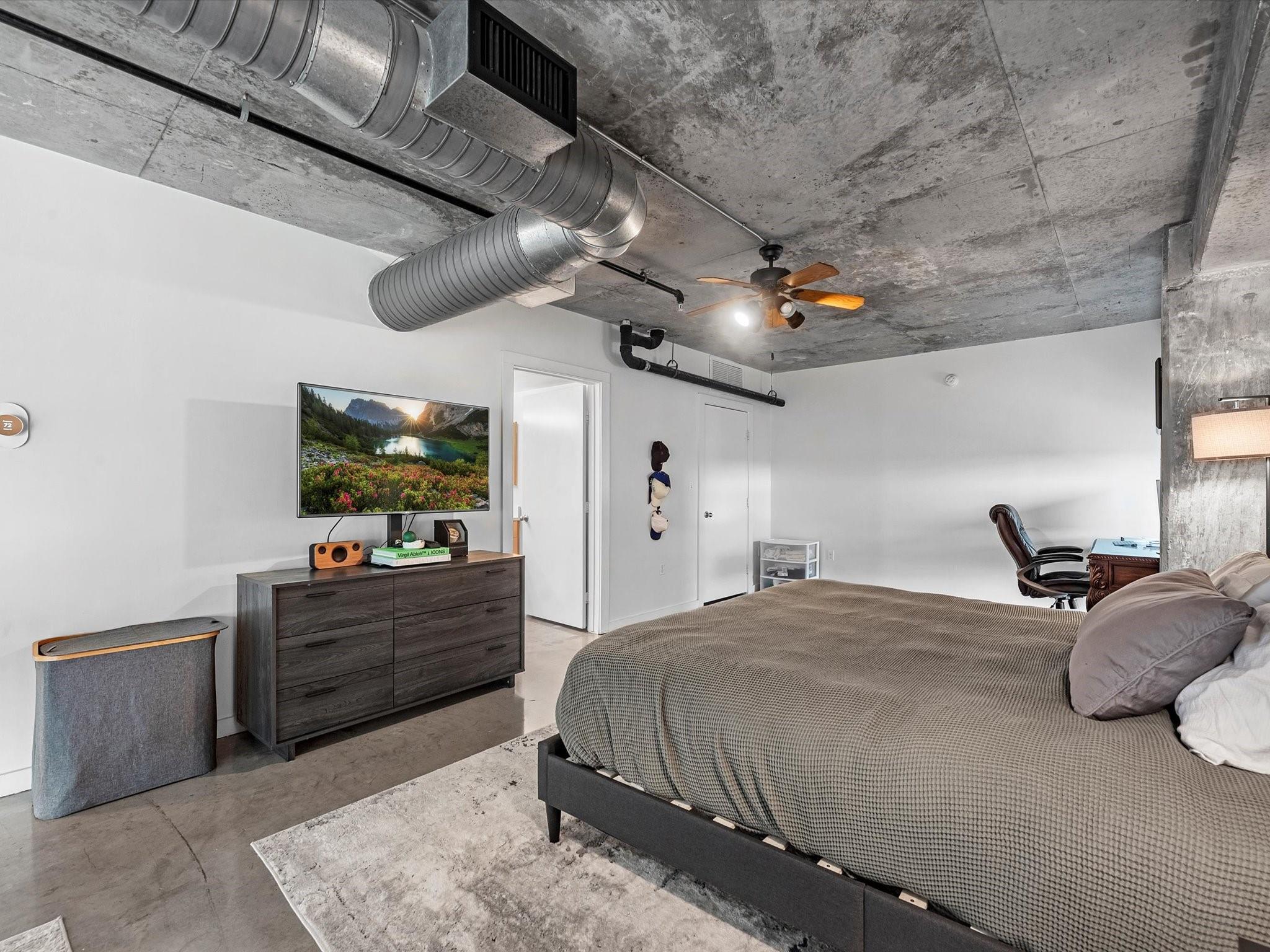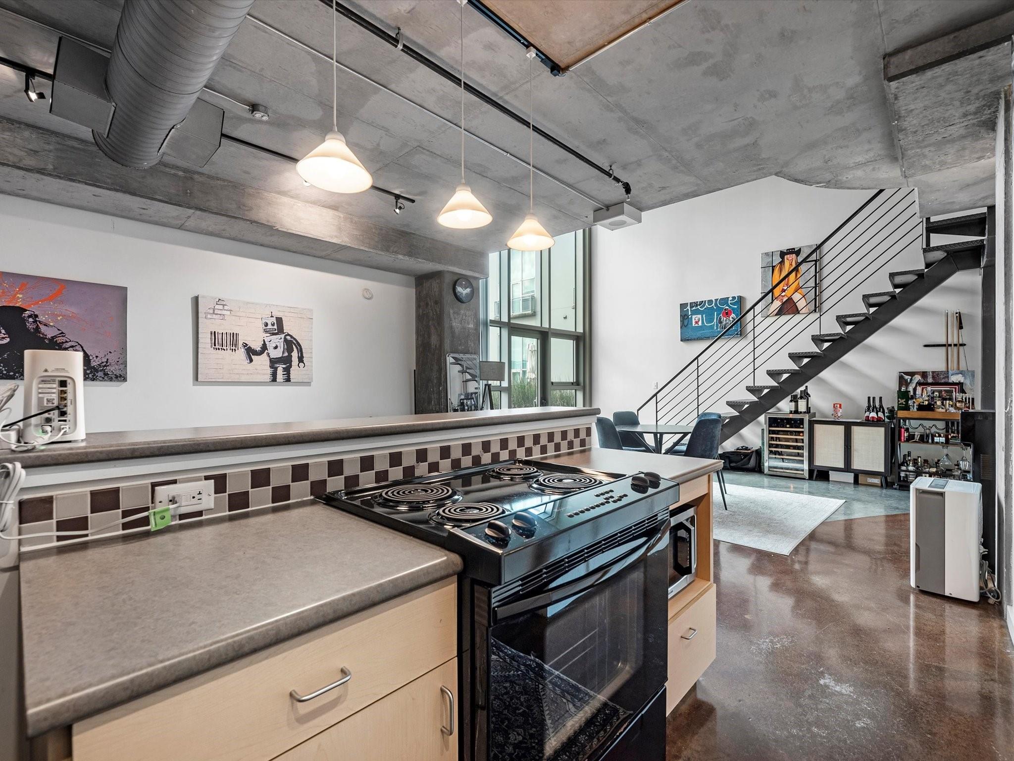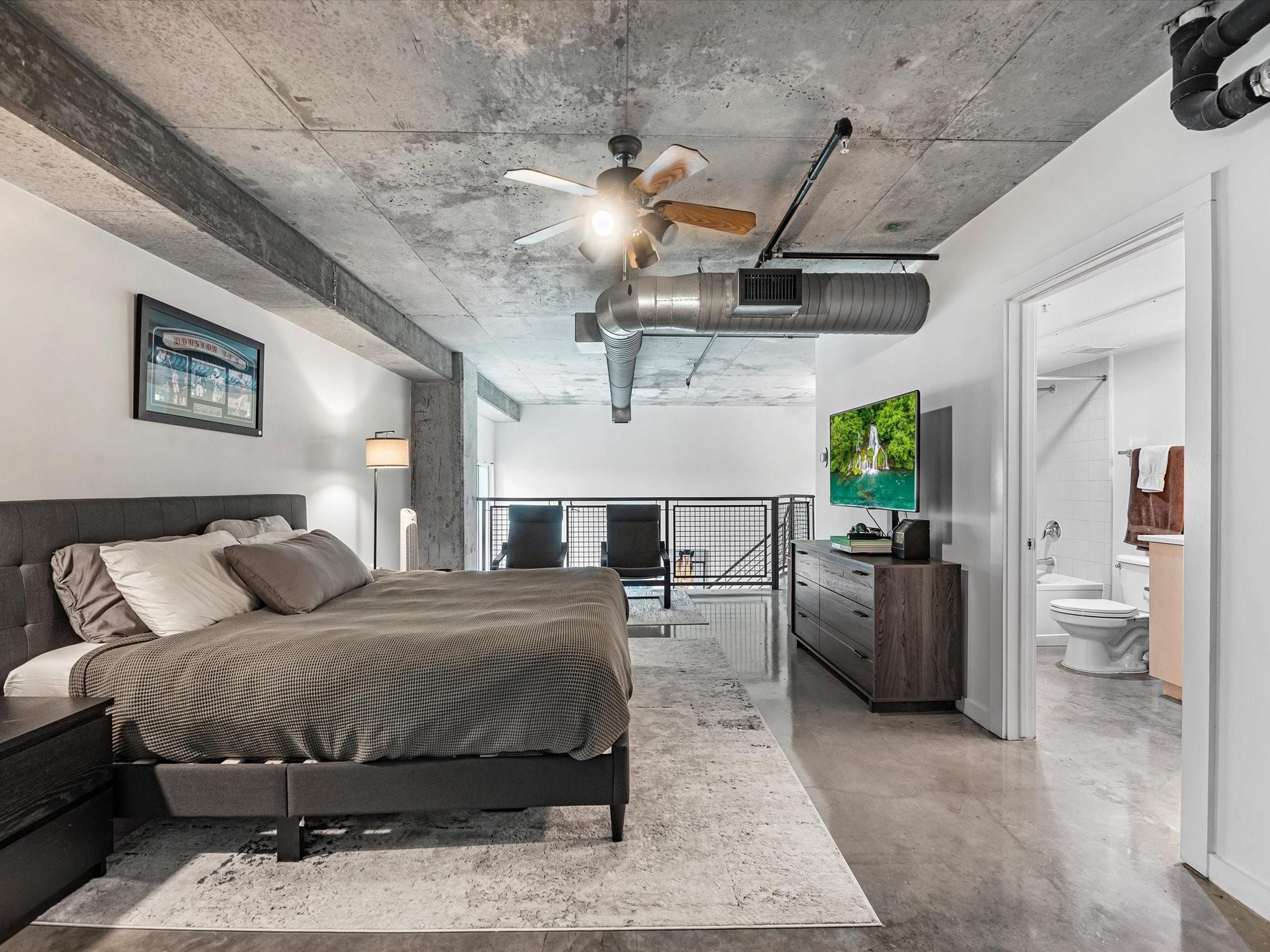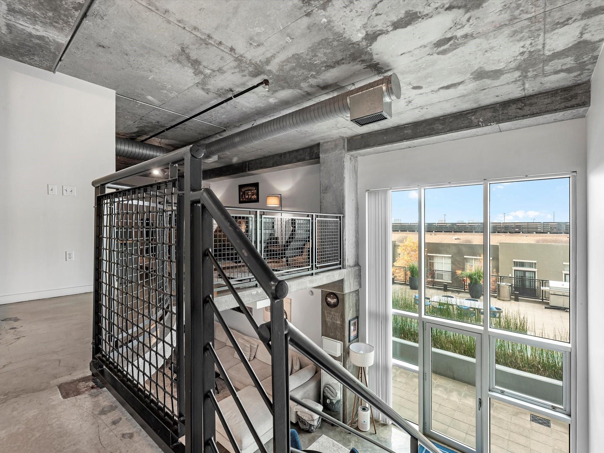 Urban sophistication meets industrial character in this stylish 1-bedroom, 1.5-bath loft in the heart of Midtown. Located on the 5th floor of Rise Lofts, the home features high ceilings, stained concrete floors, and floor-to-ceiling windows that fill the space with natural light. Step outside to the peaceful Zen garden and community terrace just beyond the balcony. The open layout offers a spacious living area and a functional kitchen ready for your personal touch. A half bath and laundry room sit off the dining area. Upstairs, the loft-style bedroom includes a sitting area, ample closet space, and an en-suite bath. Highlights include a new HVAC system with two condensers installed in 2024, assigned parking, 24-hour concierge, secure access, and a rooftop pool with city views. Enjoy a walkable Midtown location near Houston’s top dining, nightlife, green spaces, and local favorites.