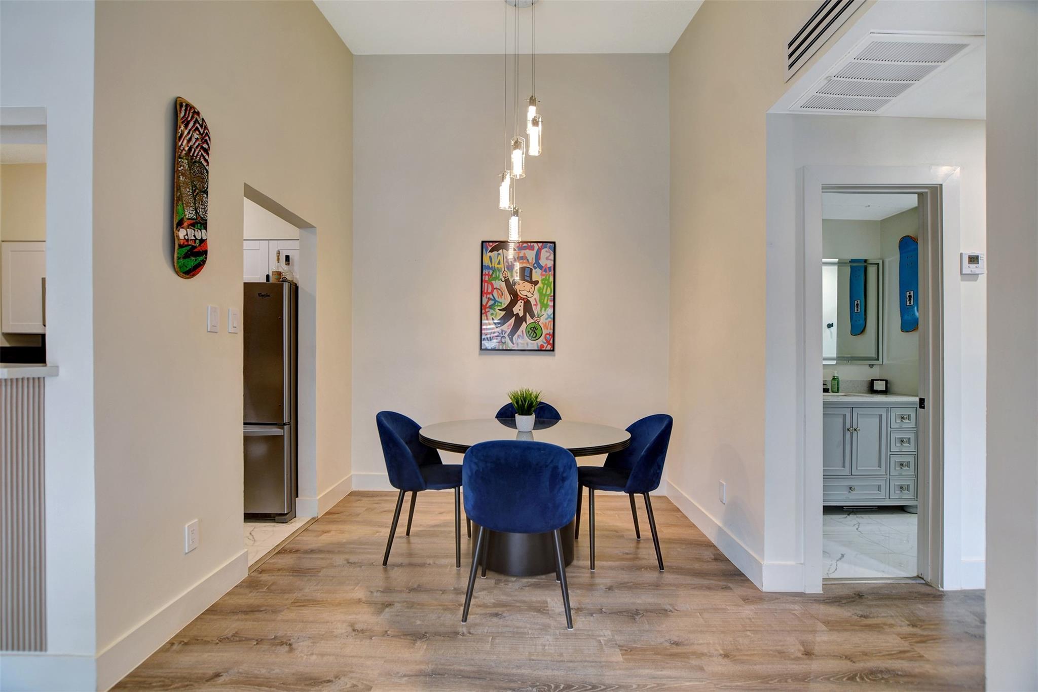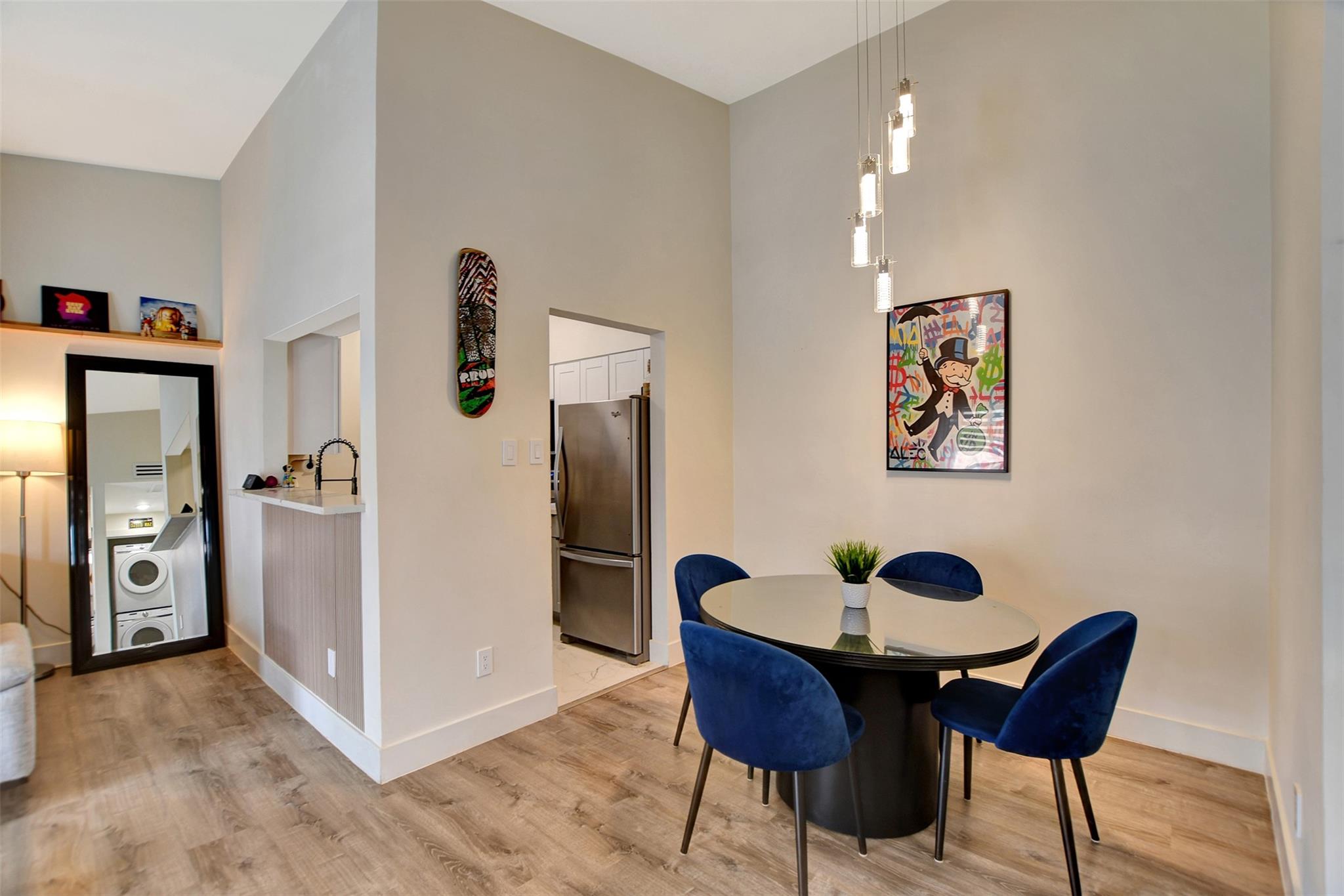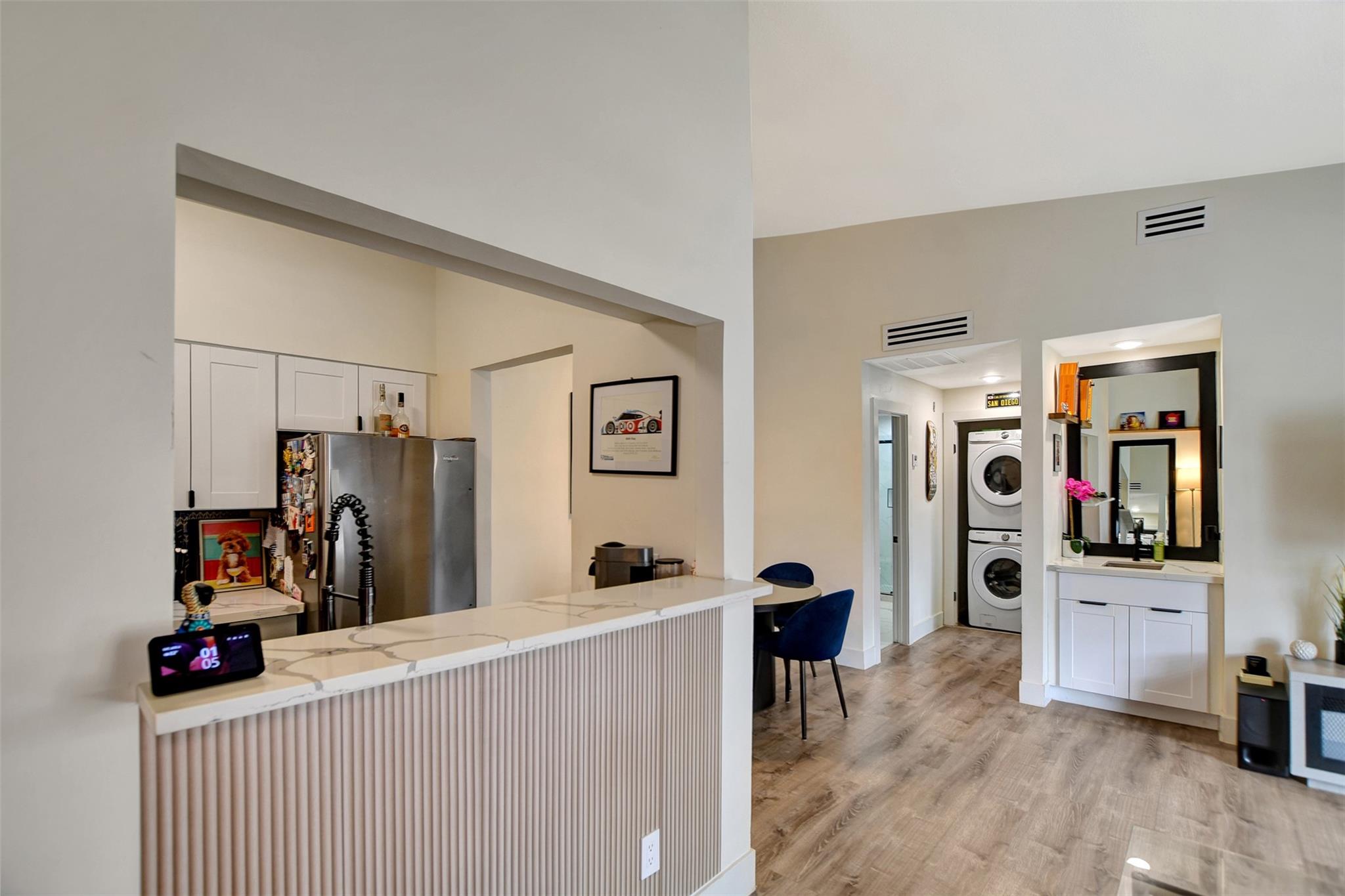 InteriorFireplace:1/Wood Burning FireplaceFloors:Tile,Vinyl PlankCountertop:CalacattaBathroom Description:Bidet,Primary Bath: Shower OnlyBedroom Desc:All Bedrooms Down,Walk-In ClosetKitchen Desc:Breakfast Bar,Kitchen open to Family RoomRoom Description:1 Living Area,Formal Dining,Formal Living,Home Office/Study,Living/Dining Combo,Utility Room in HouseHeating:Central ElectricCooling:Central ElectricDishwasher:YesDisposal:YesMicrowave:YesRange:Electric RangeOven:Electric OvenAppliances:Dryer Included,Electric Dryer Connection,Full Size,Gas Dryer Connections,Refrigerator,Stacked,Washer IncludedEnergy Feature:Ceiling FansInterior:Balcony,Brick Walls,Central Laundry,Fire/Smoke Alarm,High Ceiling,Vaulted Ceiling,Wet Bar