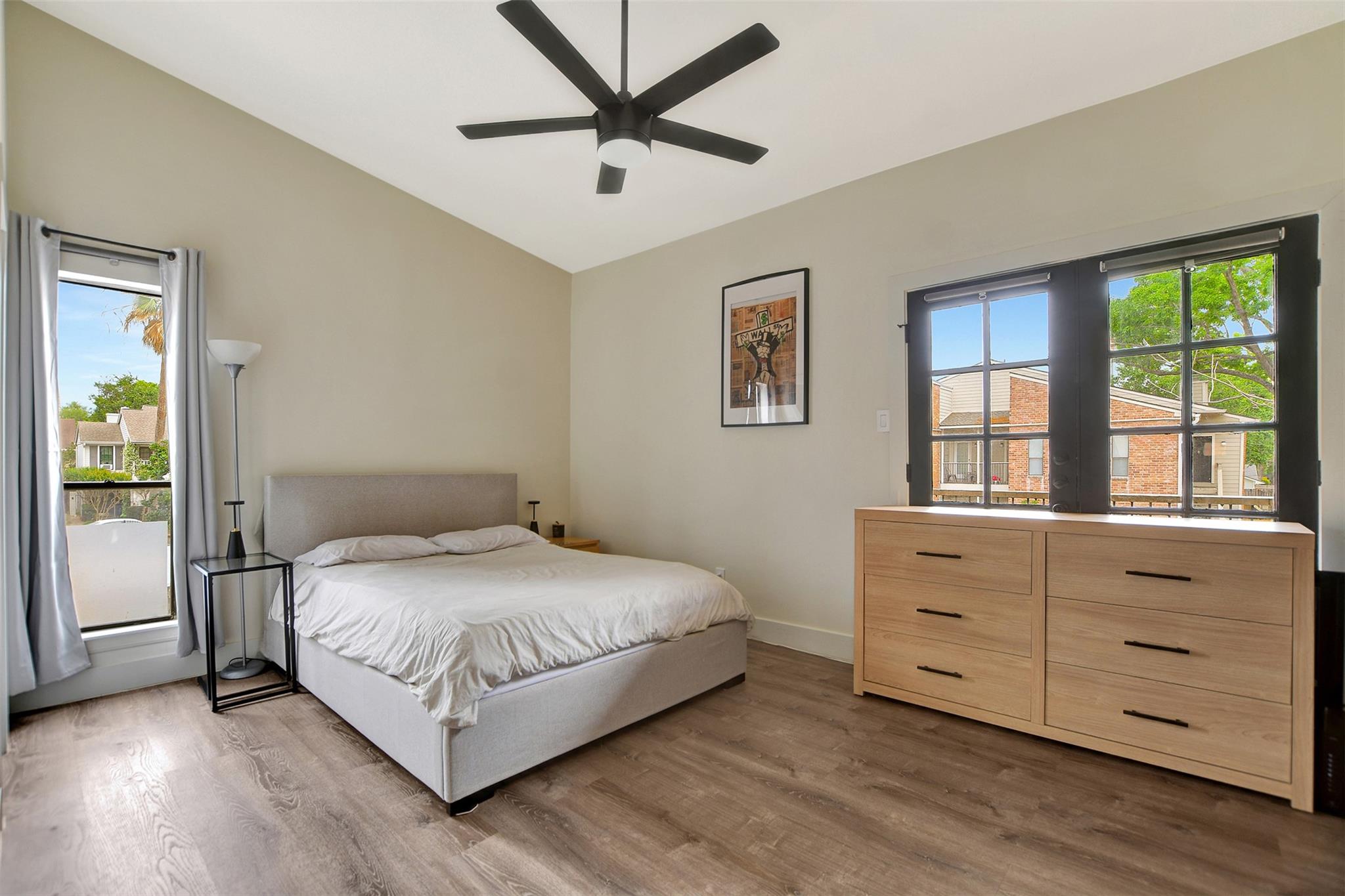 LOCATION! LOCATION! LOCATION! Enjoy effortless living in this turnkey 1 bed, 1 bath featuring a modern design, no neighbors above, and impressive vaulted ceilings. Minutes away from The Galleria, Post Oak BLVD, Uptown Park, River Oaks District, Tanglewood Dog Park, HEB, A+ Schools, Whole foods, Trader Joes, Memorial park and everything else Houston offers. Gated community with controlled access, water, roof, exterior lawn, pool covered by HOA.