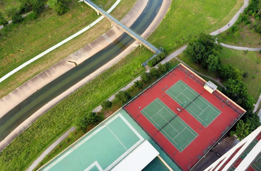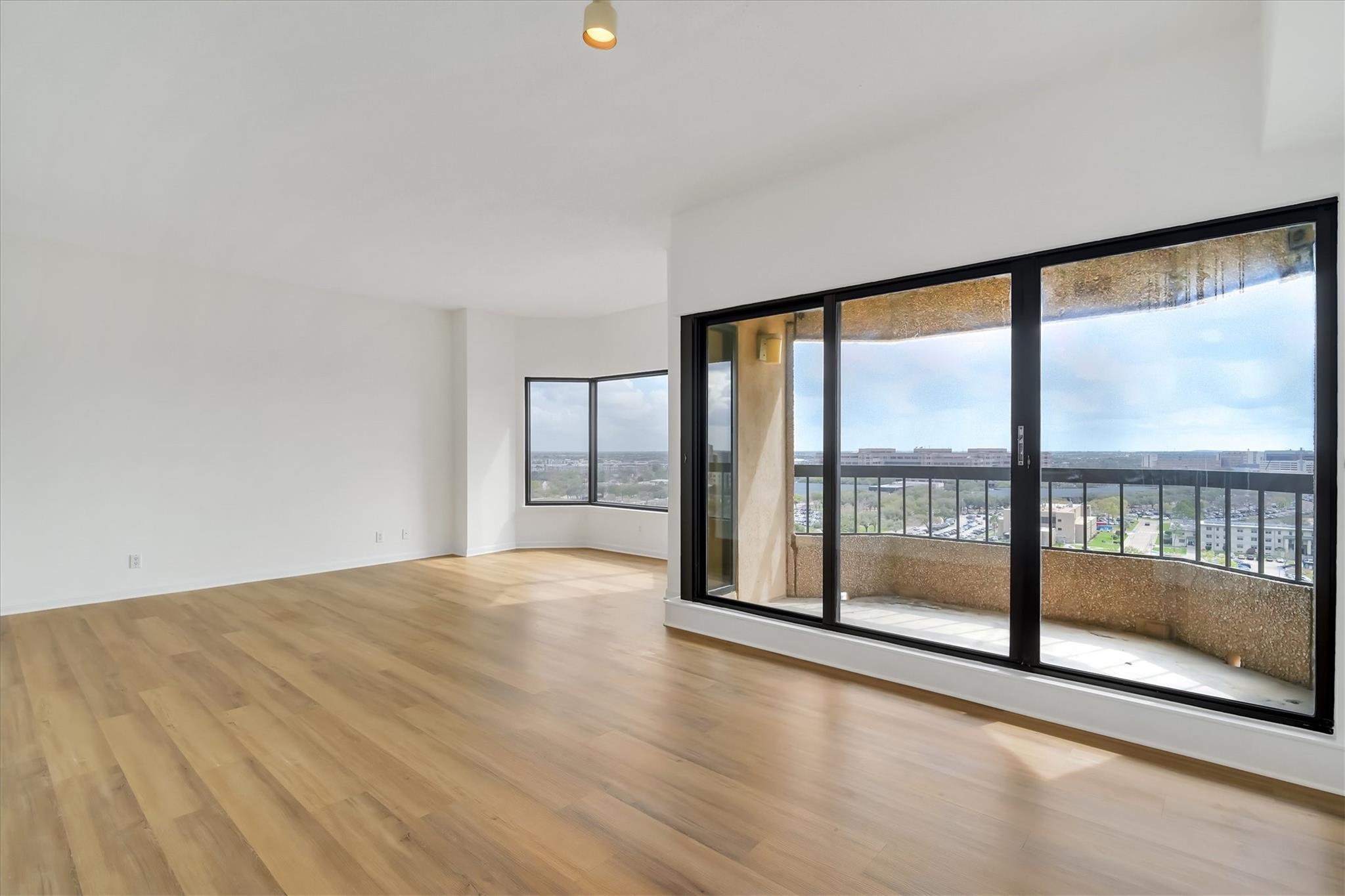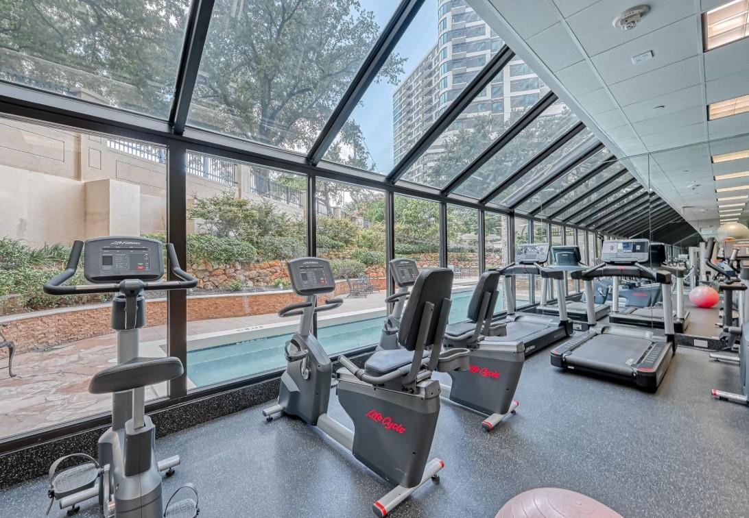 Perched on the 14th floor, this residence offers sweeping Houston views. Floor-to-ceiling windows & a shaded private balcony create a true sky-home experience. Inside features new flooring, fresh paint & an in-unit washer/dryer. The kitchen offers stainless appliances and an eat-in breakfast area, while the tranquil primary suite includes a sitting area and walk-in closet. Enjoy sparkling city lights each night. Residents enjoy concierge and valet, controlled access, double-gated parking, emergency power, and on-site grocery, meal delivery, housekeeping, and maintenance. Resort-style amenities include a heated pool with lap lane, fitness center, racquetball, tennis and pickleball courts, running track, wet and dry saunas, outdoor kitchen, party rooms, pet run, and private pedestrian access to the Bayou Trail and Hermann Park. Minutes from the Medical Center, Museum District, Houston Zoo, and Miller Outdoor Theatre. Includes two deeded parking spaces and air-conditioned storage.