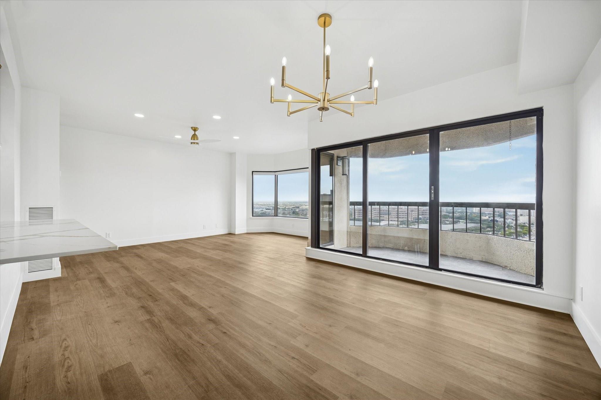 RARE, highly sought Dover Plan on 22nd floor! Walk to Medical Center, Hermann Park, Zoo. Beautifully FULLY RENOVATED NOVEMBER 2025! Luxury details include, remote blinds in all rooms, new stainless appliances, elegant light fixtures, digital thermostat, freshly painted, newly installed luxury vinyl low maintenance wood plank flooring throughout. UNDERSTATED ELEGANCE for carefree pampered lifestyle! Washer and dryer, luxury countertops, glass backsplash. Storage galore! New cabinetry in kitchen, pantry & bathrooms. 2-parking spaces + private storage. Spires exudes luxury, 5-Star 24/7 Concierge & Valet, double-gated parking garage, monitored entry video cameras & common areas, perimeter fencing. Amenities: multiple meeting/party rooms, 24-hour fully equipped gym, heated pool w/lap lane, wet & dry saunas, outdoor grill/kitchen, table tennis, racquetball, lighted tennis courts, pickleball courts, pedestrian gate to Bayou Hike & Bike Trail & Hermann Park. Dedicated emergency power.