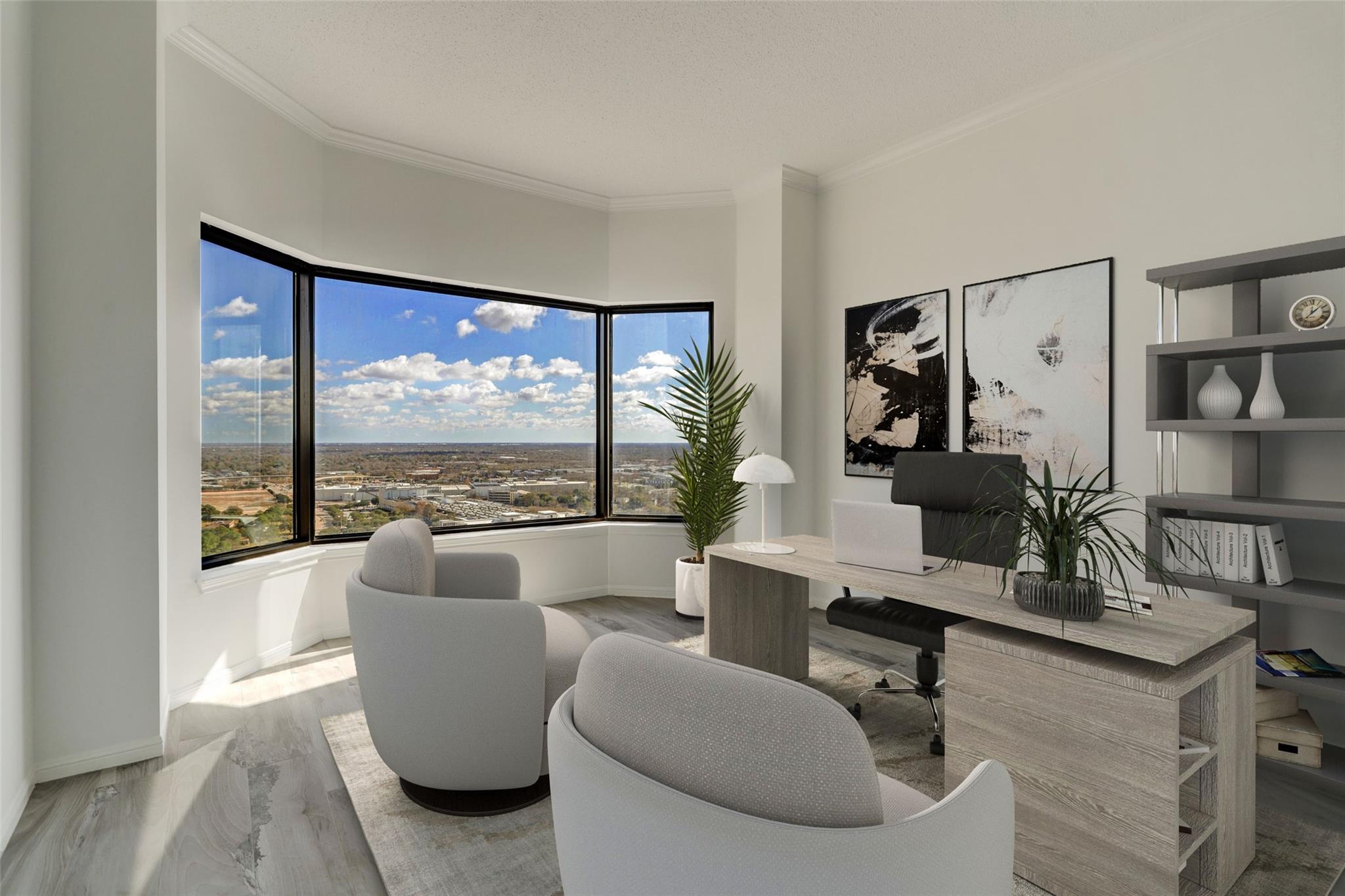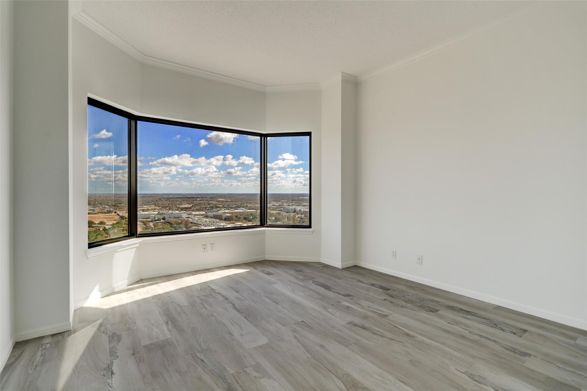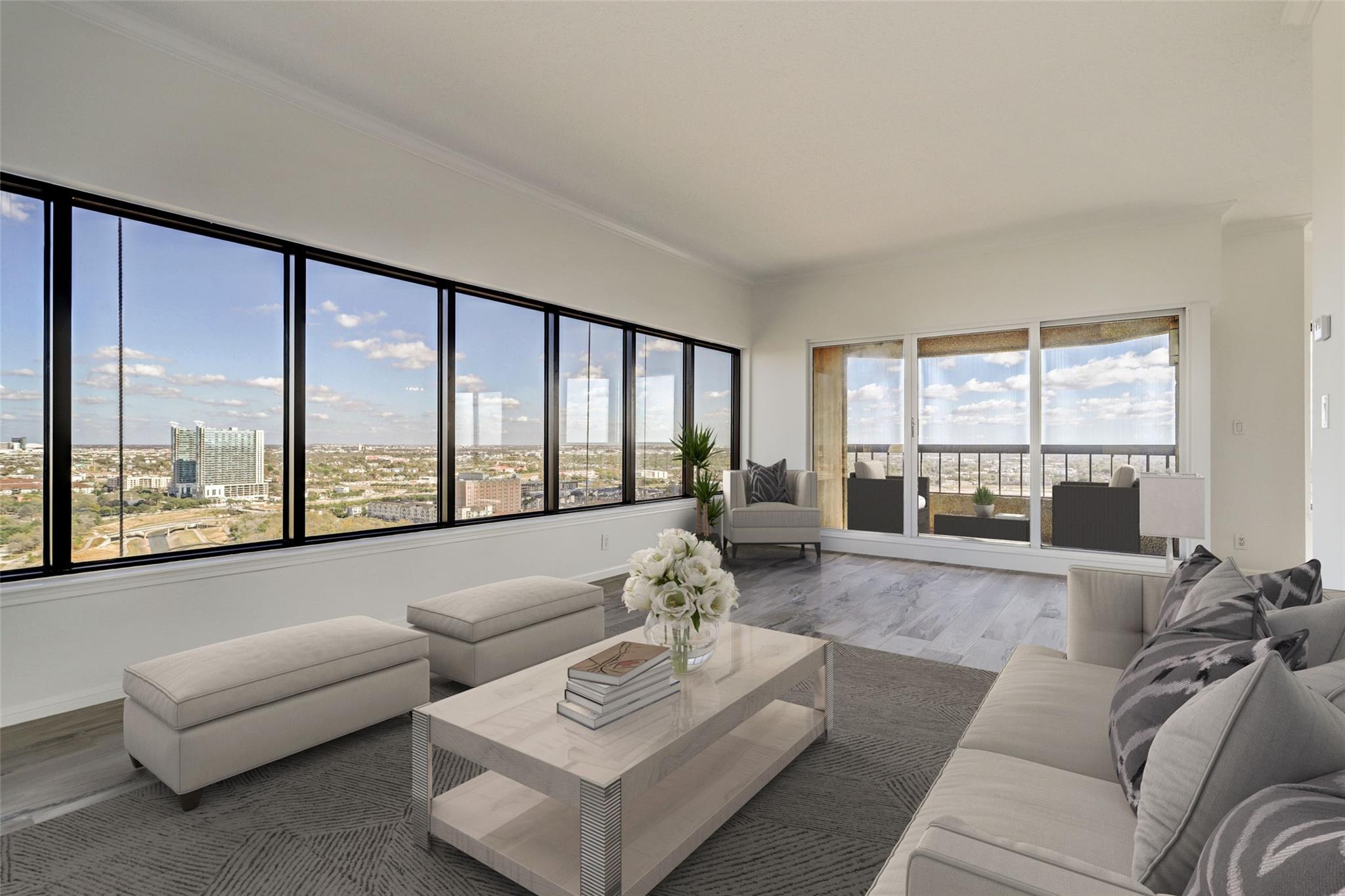 Recently remodeled large 3 bedroom/2 bath unit w/ gorgeous North & East facing views. Located on the 27th floor, it gets beautiful light & has incredible panoramic views of the city, Buffalo Bayou, all while being in the heart of the medical center. Move-in ready, this like-new condo features a gorgeous updated kitchen w/ custom cabinetry including soft close drawers, quartz counters & SS appliances. The entire condo was just freshly painted (April 2026) & has pretty wood-look tile floors in all of the living spaces. Huge living room w/ a wall of windows & breathtaking views. Large primary bedroom w/ tons of windows, walk-in closet & spa like bath including marble-like porcelain tiled shower, soaking tub, quartz vanity, 2 sinks & more. Great size secondary bedroom & 3rd bedroom/study that share an updated bathroom w/ quartz counters. The Spires is a full service building with tons of amenities, including valet, concierge, pool, outdoor kitchen, tennis & racquetball courts, & more!