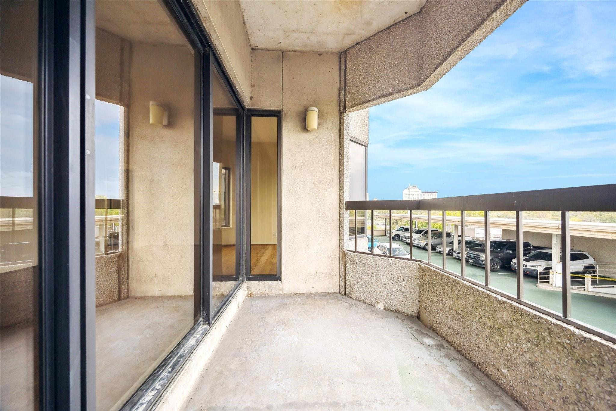 Spacious 5th floor one bedroom residence with hardwood floors and generous room sizes. North facing views and a private balcony. Dining room with wall of custom built-in cabinetry. Kitchen with stacked washer/dryer and pantry. Primary suite with walk-in closet. Park-side full service high rise living with 24 hour guarded entry, concierge, valet, porter, fitness center with dry sauna, party rooms and indoor racquetball court. Private resident access to hike/bike trails connecting you to Hermann Park and the medical center. Convenient access to freeways and Downtown.