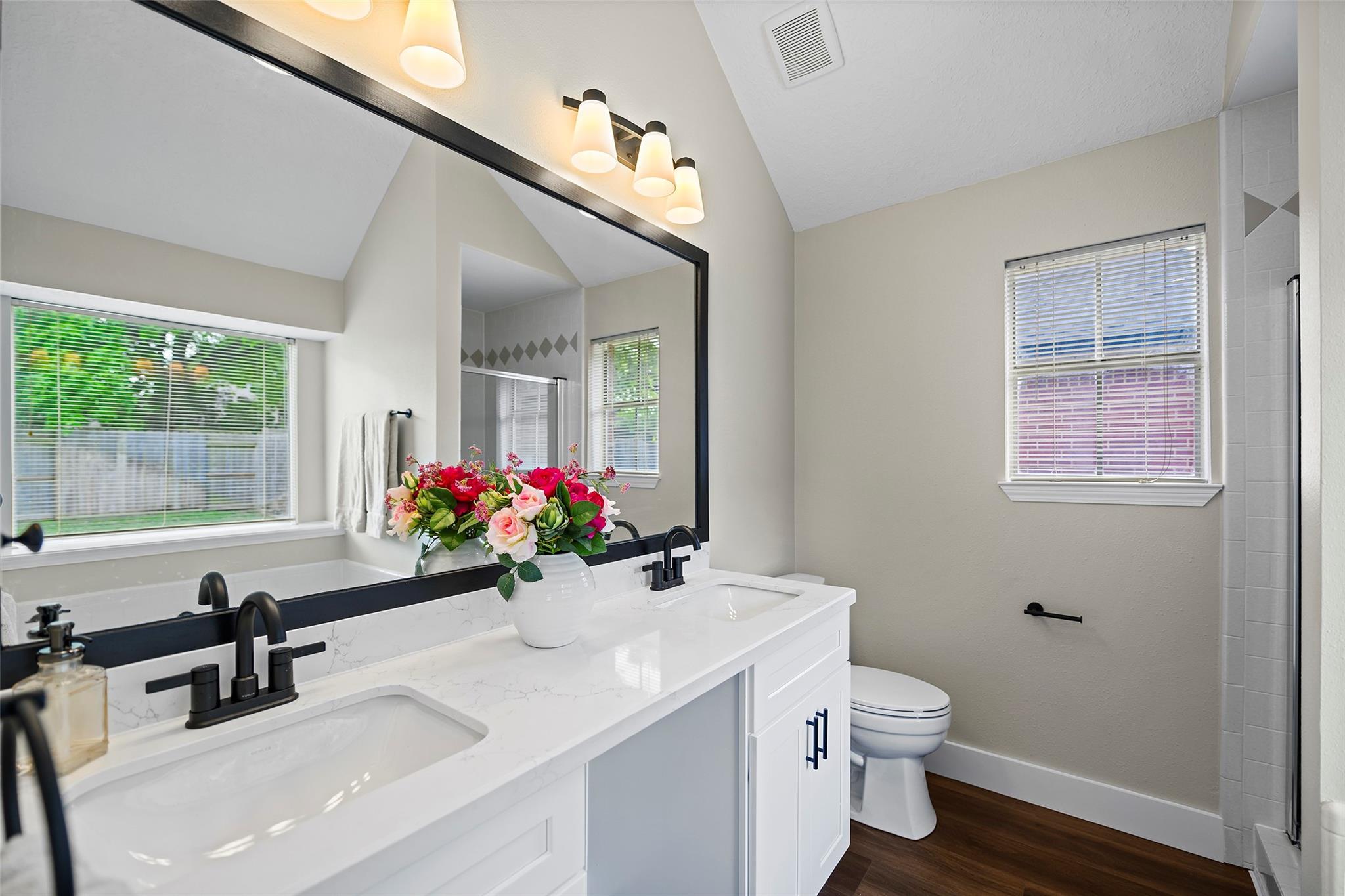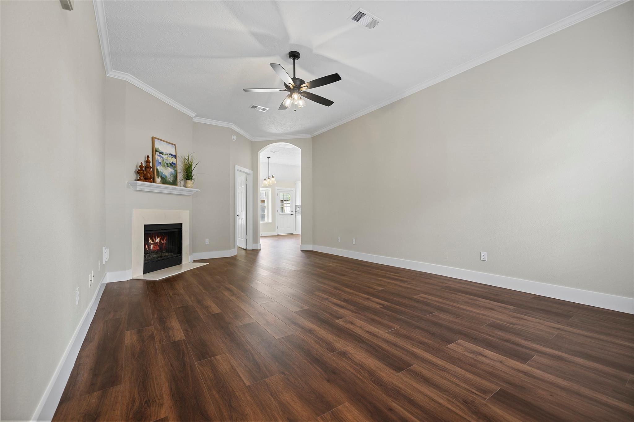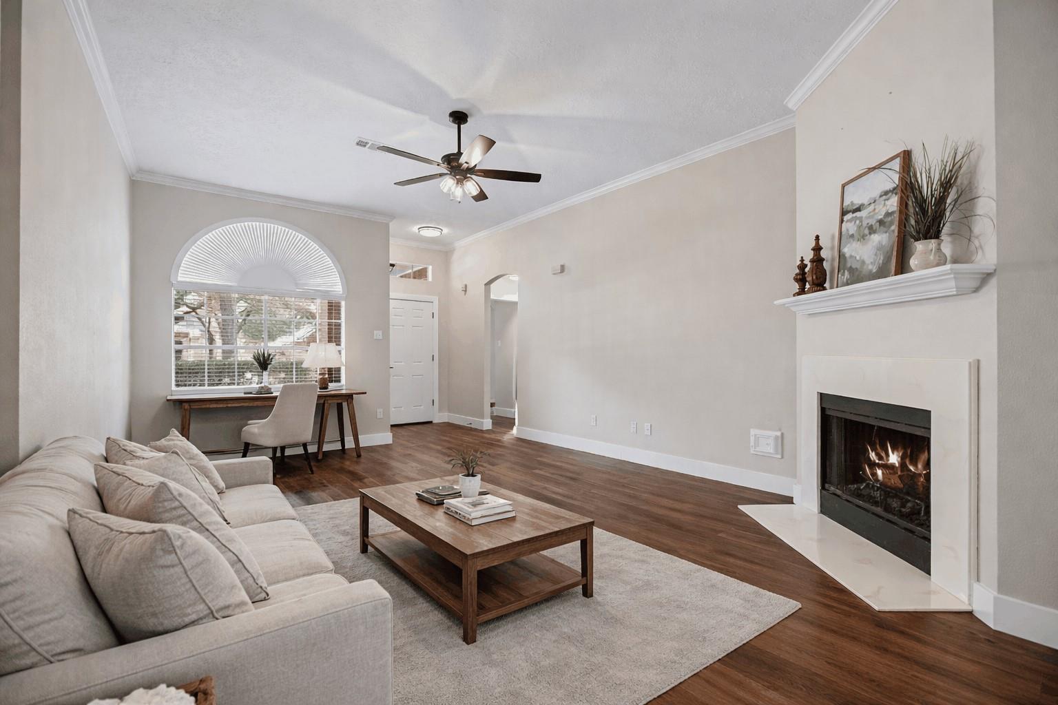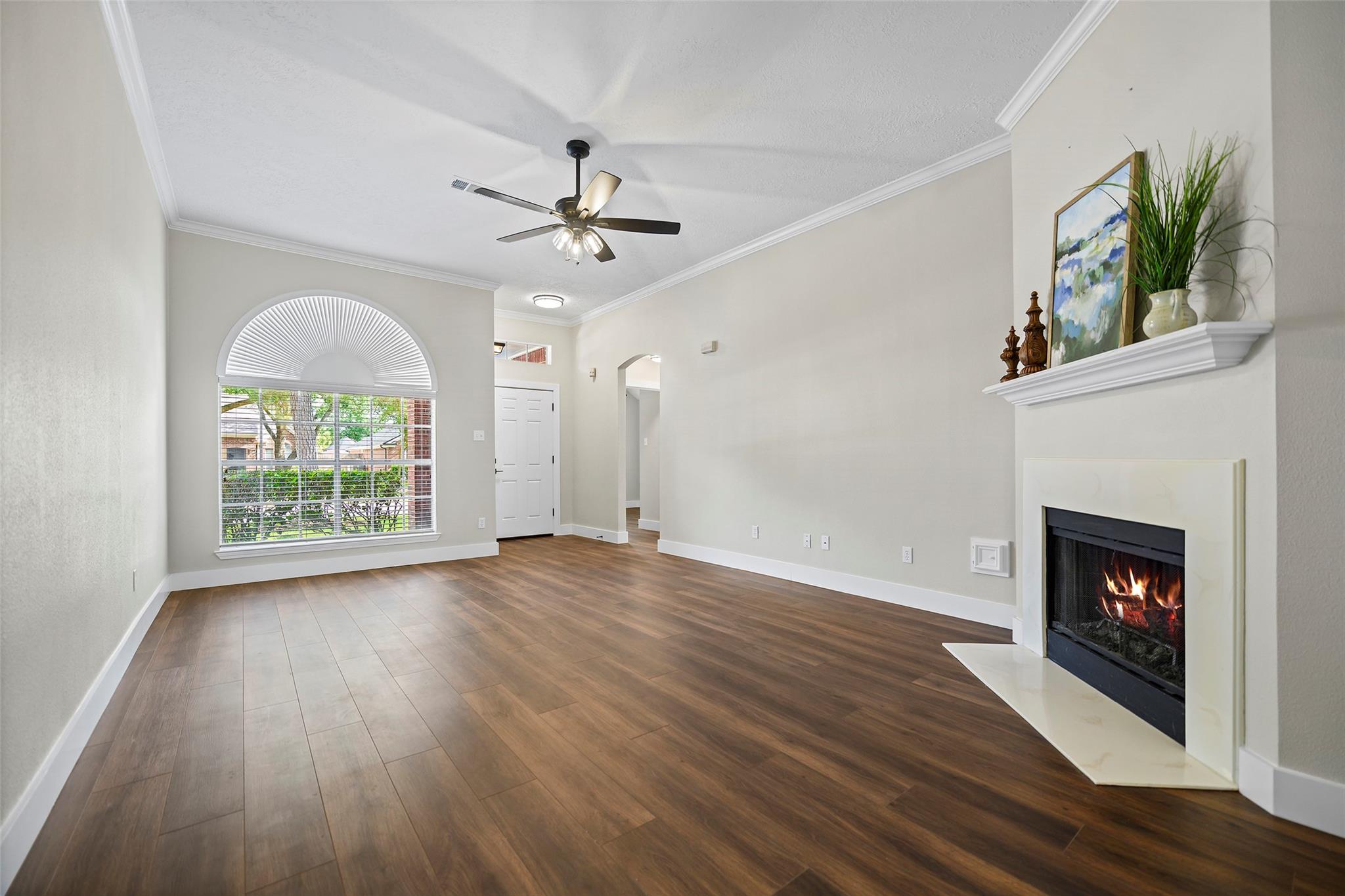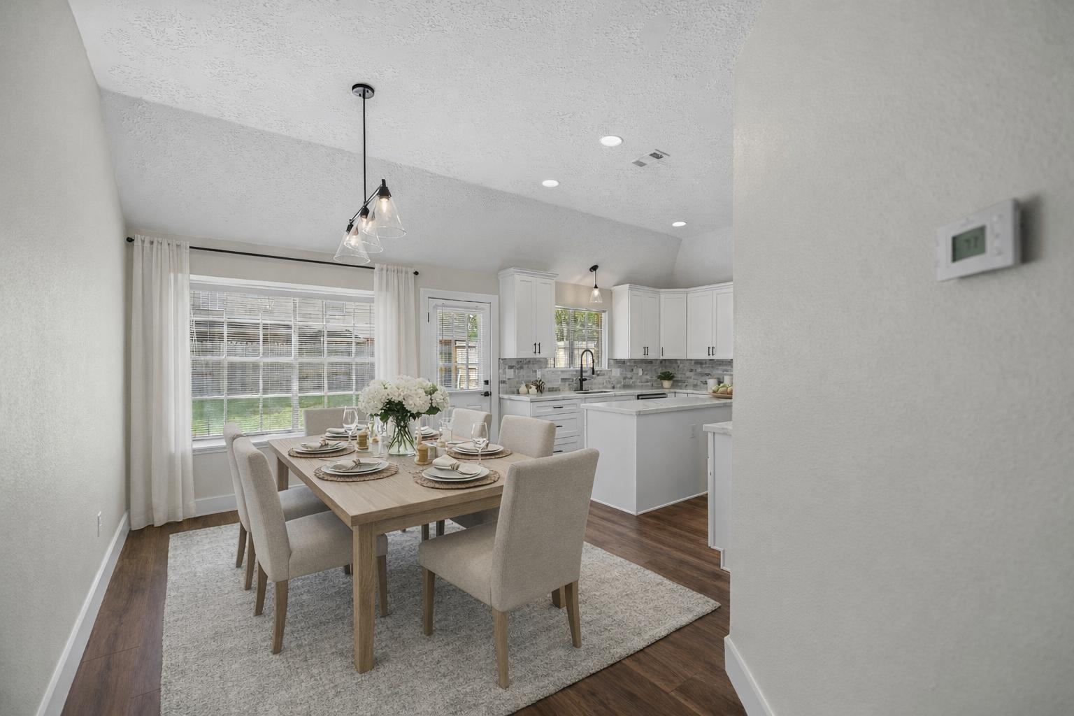 Move-in ready & designed for easy living, this charming one-story home offers 3 bedroom, a bright, open layout perfect for everyday comfort. Enjoy stylish updates throughout as you open the door into a FABULOUS family room, including timeless luxury vinyl flooring that flows throughout the home! Fresh paint from walls, to ceilings to the elegant 5.5” baseboards for a clean, modern feel. The totally remodeled island kitchen features stainless appliances including a Samsung gas range w/griddle & convection oven, plus GORGEOUS Quartz countertops & crisp white Shaker style cabinets for prep & storage space! An eat-in casual dining space creates the coziest of moments for entertaining. Serene primary w/updated ensuite bath. Step outside to a backyard w/plenty of room for a playset or future pool. Located in the sought-after Fairfield community, enjoy a true lifestyle w/parks, pools, trails & endless amenities. Convenient to Hwy 290/99, shopping, dining, and zoned to CFISD schools!