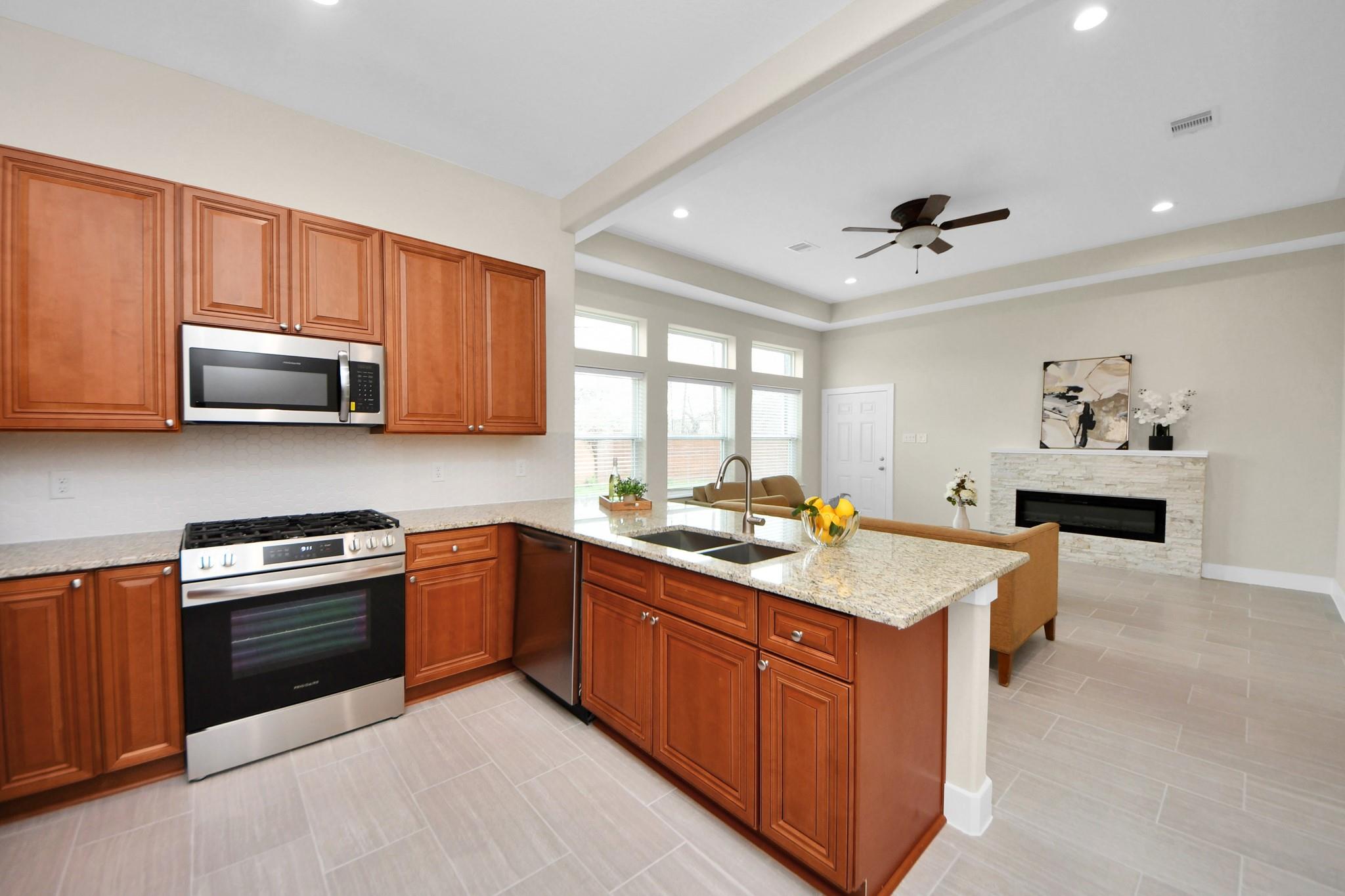 InteriorFireplace:1/Electric Fireplace,Gaslog FireplacePets:NoSmoking Allowed:NoFloors:TileCountertop:GRANITEBathroom Description:Half Bath,Primary Bath: Double Sinks,Primary Bath: Separate Shower,Primary Bath: Shower Only,Secondary Bath(s): Shower OnlyBedroom Desc:All Bedrooms Down,Primary Bed - 1st Floor,Walk-In ClosetKitchen Desc:Breakfast Bar,Instant Hot Water,Kitchen open to Family RoomRoom Description:1 Living Area,Entry,Family Room,Living Area - 1st Floor,Living/Dining Combo,Utility Room in HouseHeating:Central GasCooling:Central ElectricConnections:Electric Dryer Connections,Washer ConnectionsDishwasher:YesDisposal:YesCompactor:NoMicrowave:YesRange:Gas CooktopInterior:Dryer Included,Refrigerator Included,Washer Included