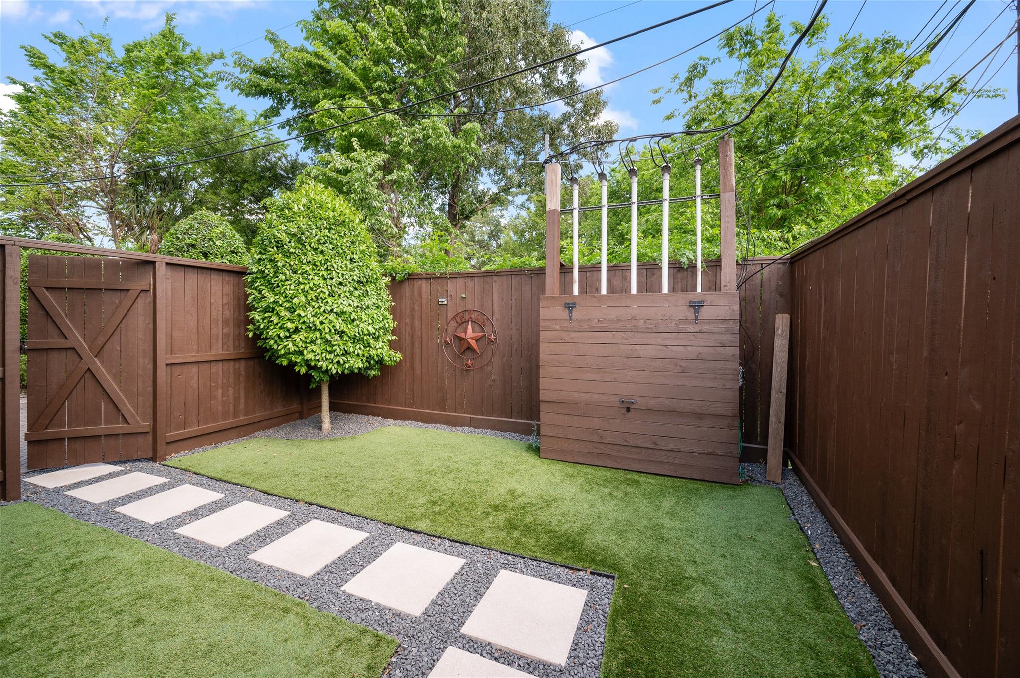 Tucked away in a gated community, this well-maintained townhome offers the rare feeling of space and privacy while still being in the heart of the city. A side greenspace enhances the sense of openness, and from the kitchen and dining room windows, you can even enjoy views of downtown Houston fireworks. Inside, the home features a freshly painted interior, creating a bright, clean, and move-in ready feel throughout. The private yard is thoughtfully designed with low-maintenance Astro Turf and a freshly painted pergola—perfect for relaxing or giving pets room to play. Zoned to sought-after Oak Forest Elementary School, this home is a fantastic opportunity you won’t want to miss.