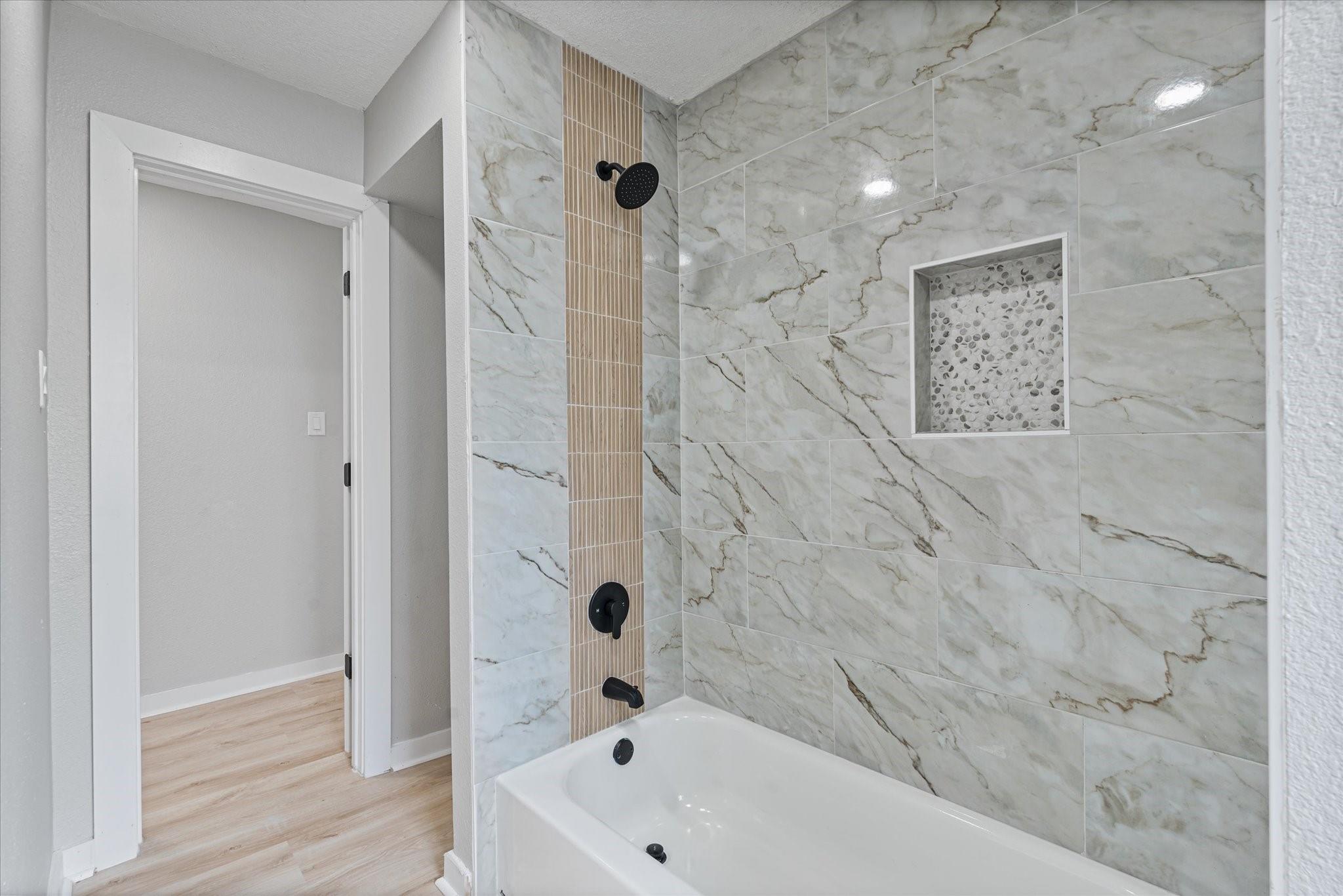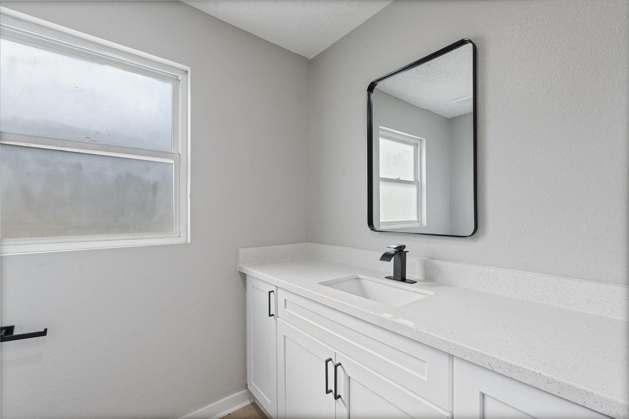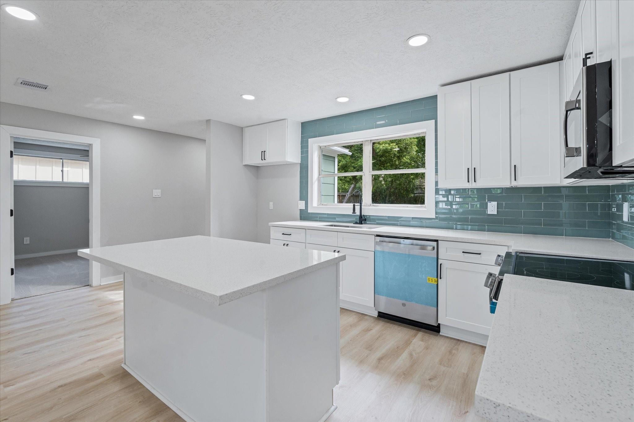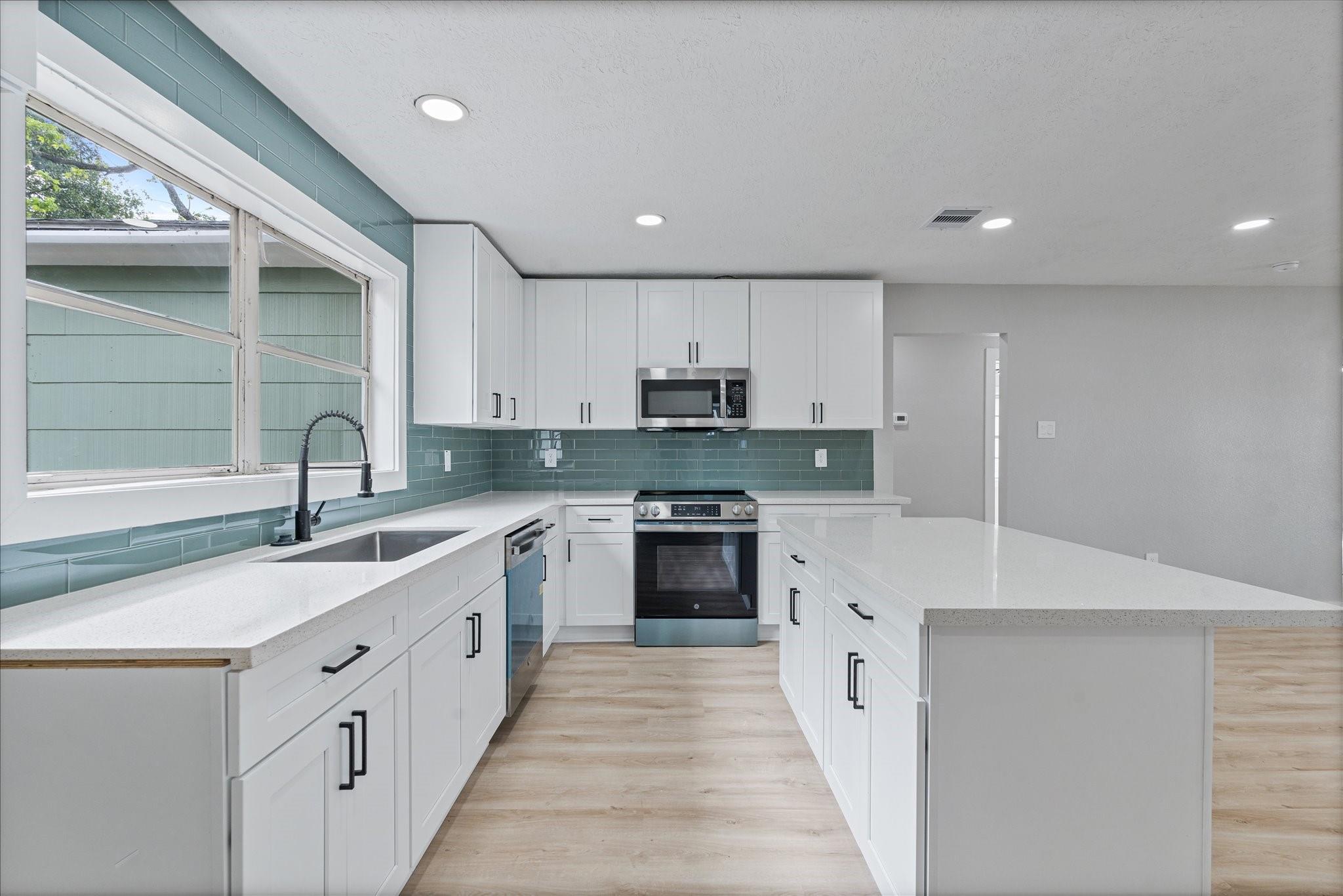 Discover your dream home in this exquisite 3-bedroom, 2-bath property. This residence boasts elegant luxury vinyl flooring and fresh paint throughout. The open-concept kitchen is a chef's delight, featuring quartz countertops, new appliances, and a bright window view. The spacious living room, complete with recessed lighting, is perfect for entertaining. Retreat to the primary bedroom's serene oasis, complete with a luxurious ensuite bath featuring a spacious vanity with sleek black finishes, and a tiled full shower and tub. Enjoy peace of mind with a solid foundation under warranty, along with a new AC system, and modern plumbing and electrical updates. Outside, a charming patio offers additional space for relaxation, all set on a generous lot in a beautiful neighborhood. Don't miss the chance to make this home yours—schedule a visit today!
