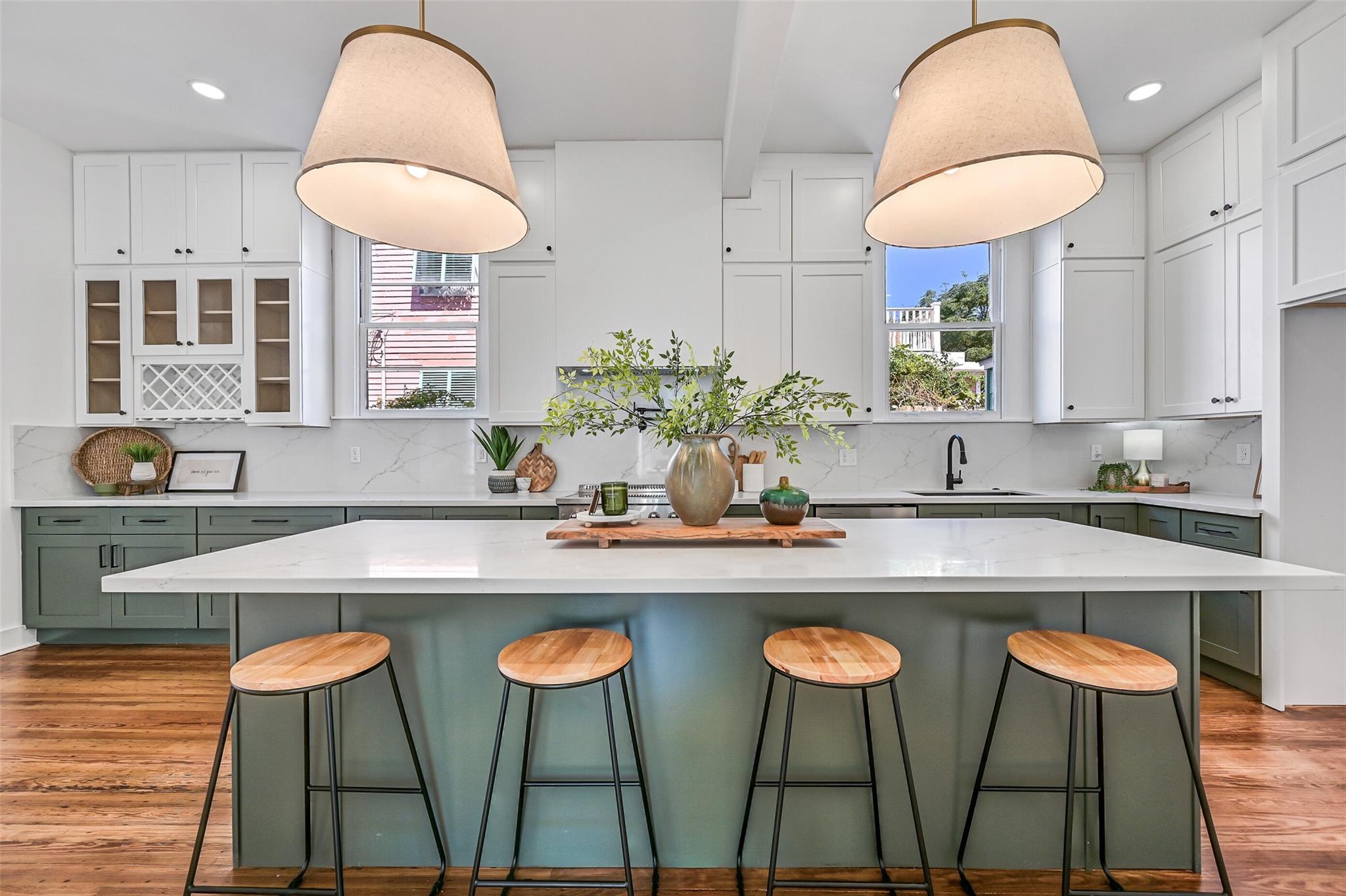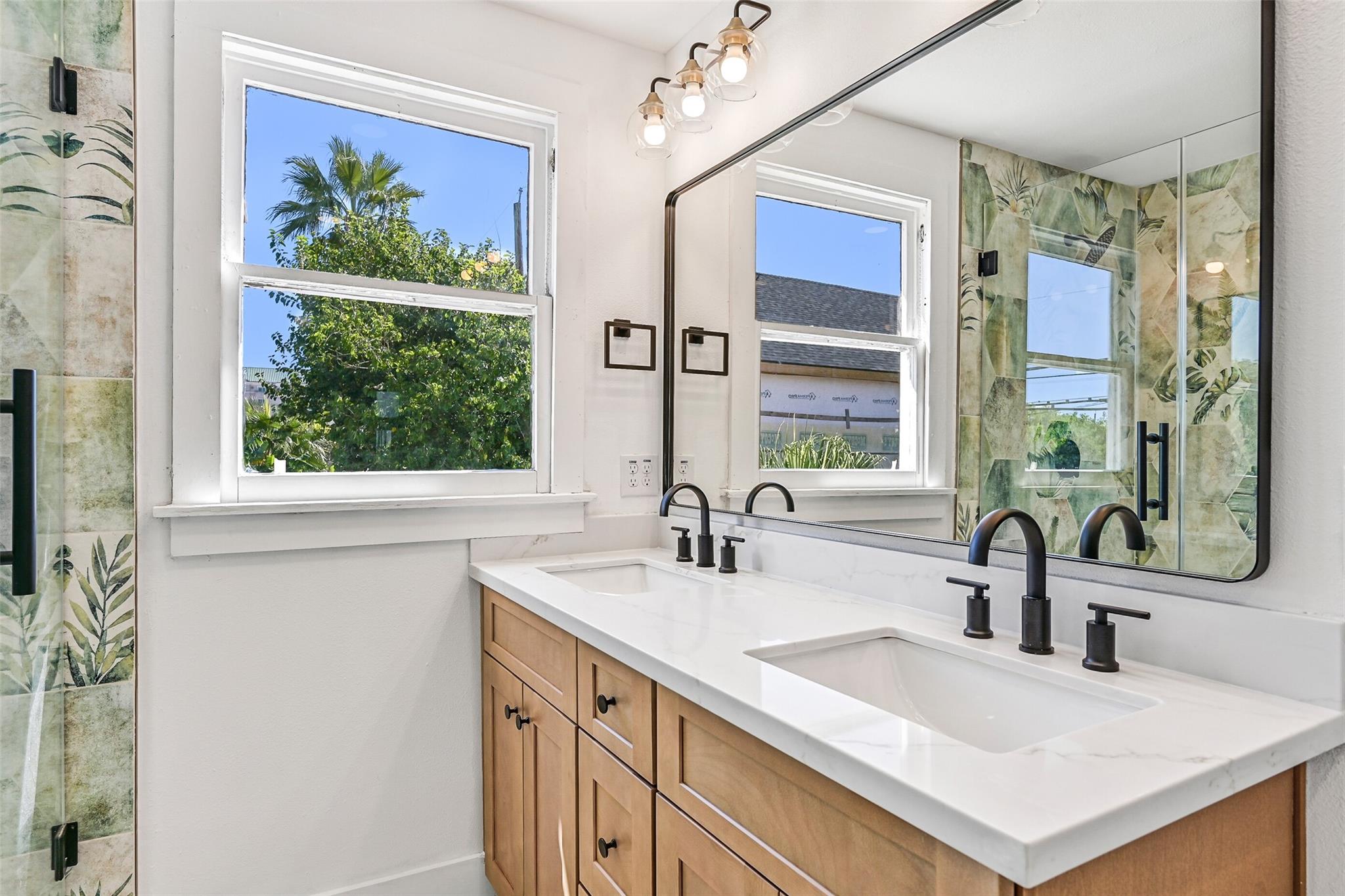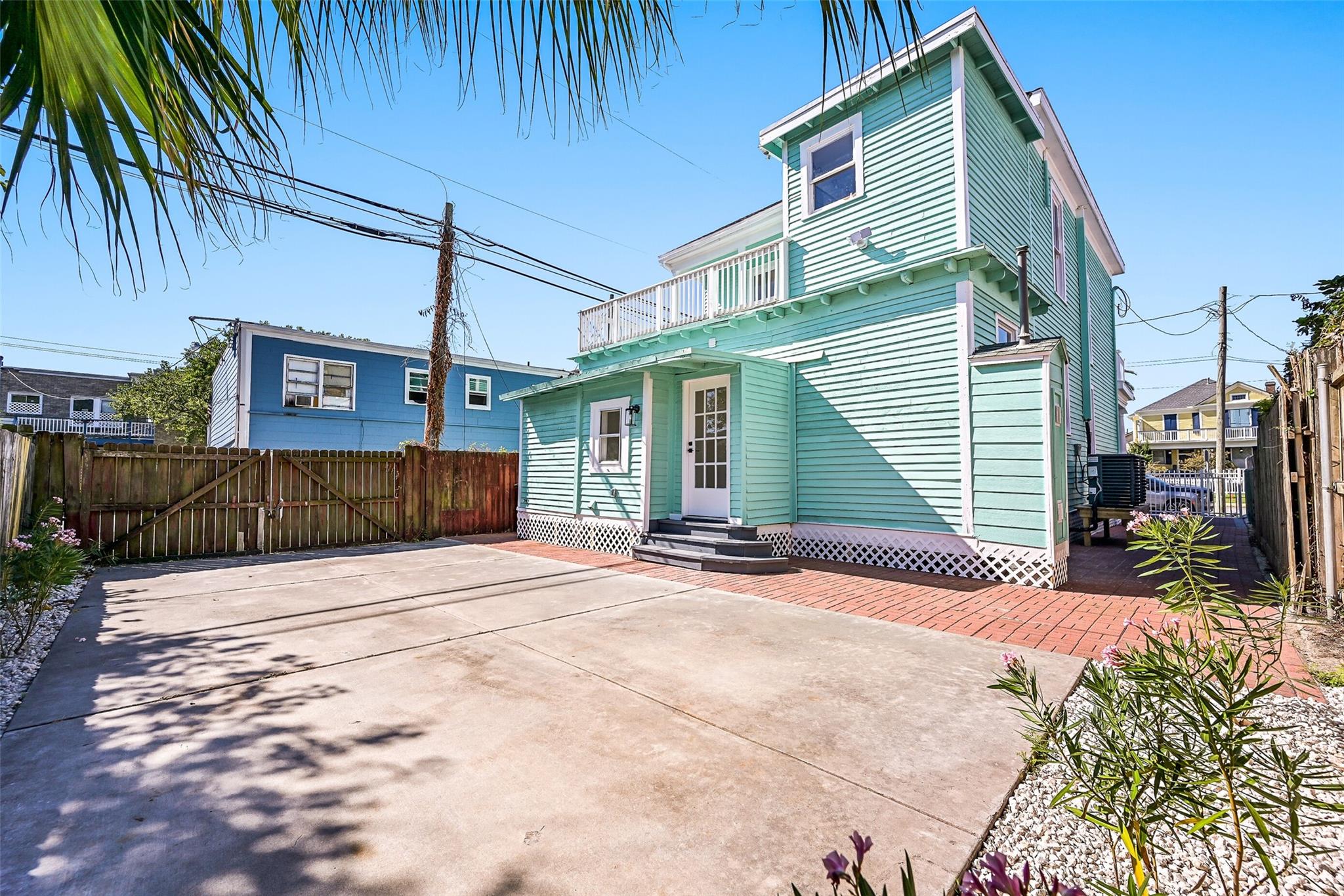 A BLOCK FROM THE BEACH AND THE ICONIC PLEASURE PIER! This beautifully reimagined Victorian stunner on a corner lot along 25th Street offers the BEST seats in town for Mardi Gras and Lone Star Rally parades! Step through the new front door into a home that radiates historic charm and fresh sophistication. The walls have been opened for a seamless open-concept flow, complemented by gleaming resurfaced hardwood floors, updated lighting, and reworked original windows that flood the home with natural light. The expanded kitchen features soft-close cabinets, quartz countertops, upgraded appliances, and a large island designed for gathering. Every bath has been fully updated with new tile, vanities, and hardware. Enjoy two decks, a hardscaped brick-paver backyard, and off-street parking for easy entertaining. With new HVAC, plumbing, and electrical, plus no HOA, this is ISLAND LIVING AT ITS BEST — stylish, low-maintenance, and unforgettable!