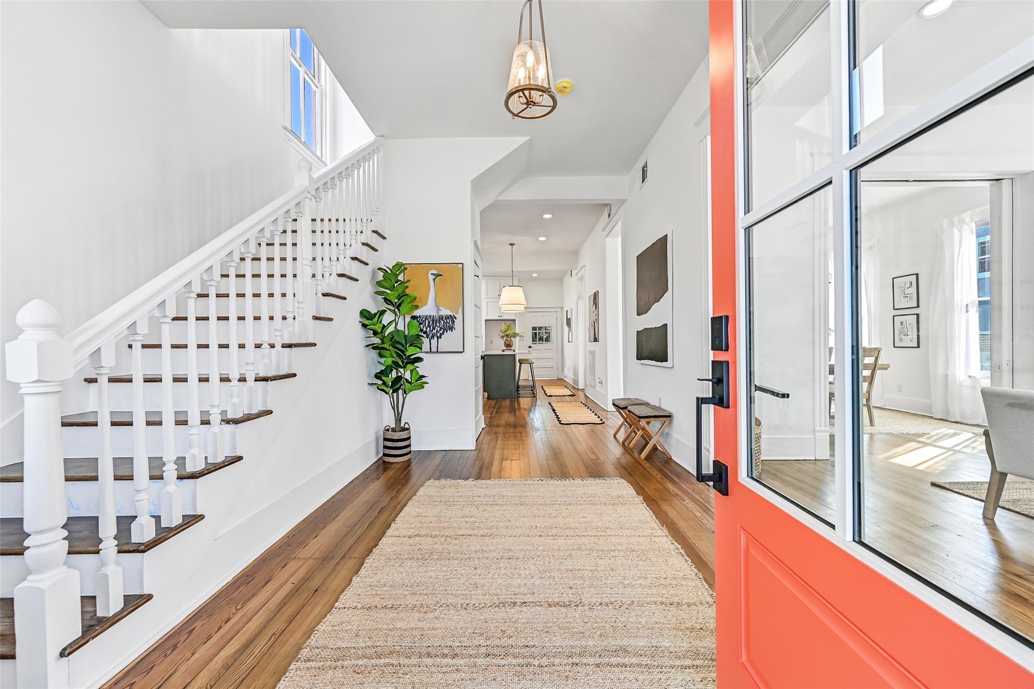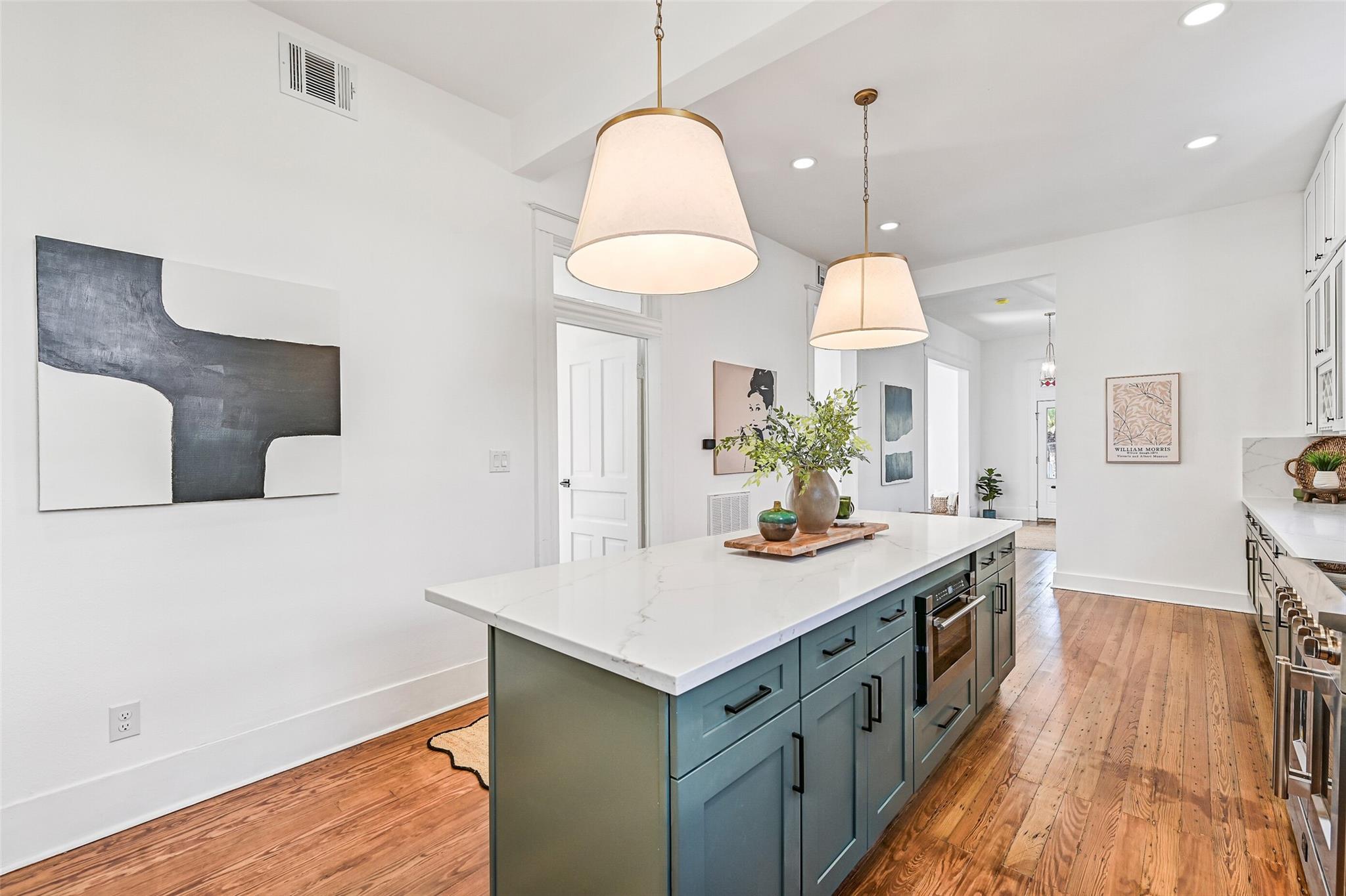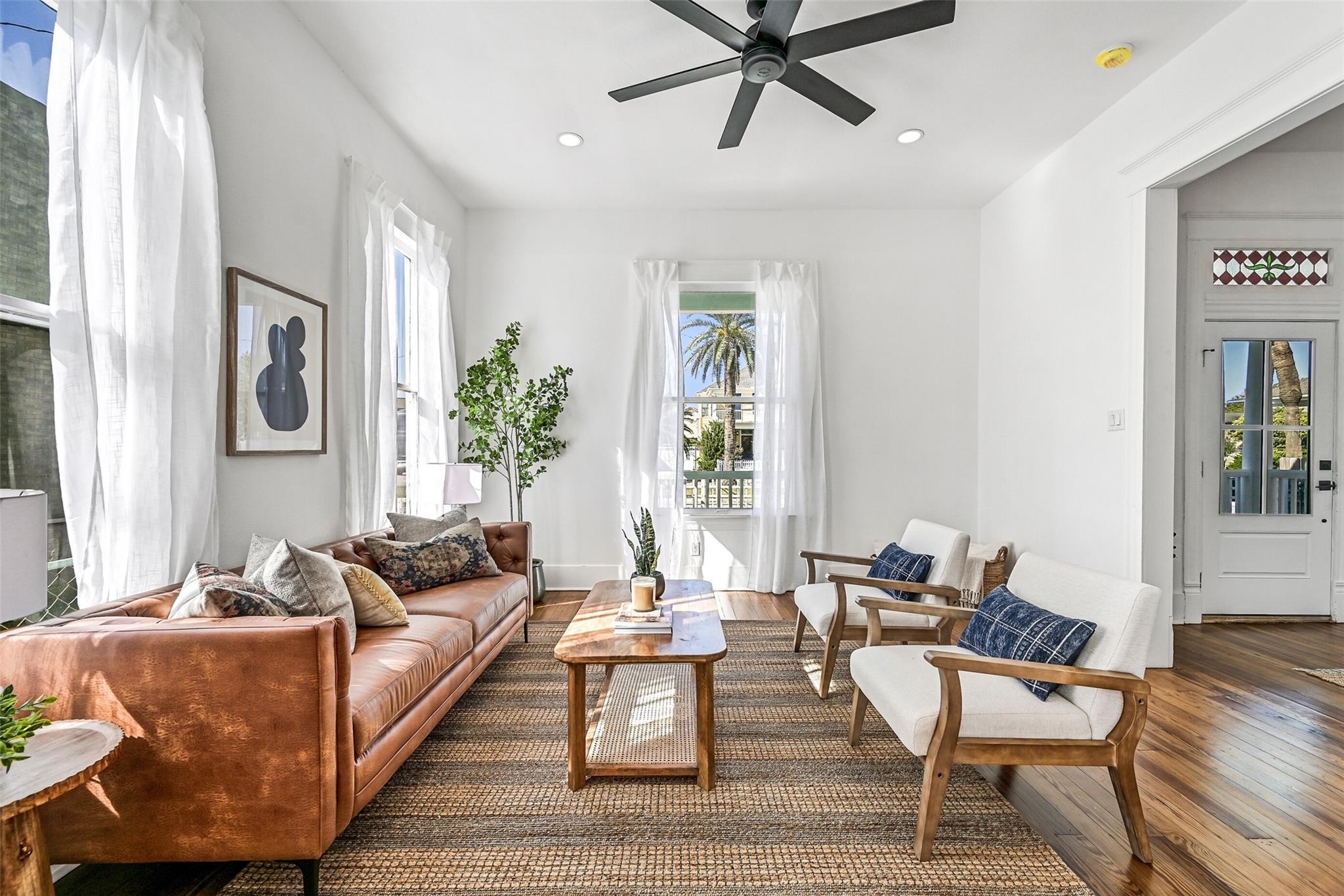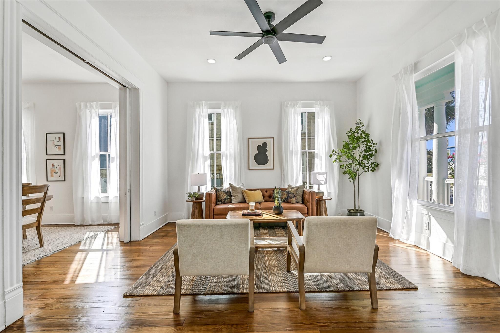 A BLOCK FROM THE BEACH AND THE ICONIC PLEASURE PIER! This beautifully reimagined Victorian stunner on a corner lot along 25th Street offers the BEST seats in town for Mardi Gras and Lone Star Rally parades! Step through the new front door into a home that radiates historic charm and fresh sophistication. The walls have been opened for a seamless open-concept flow, complemented by gleaming resurfaced hardwood floors, updated lighting, and reworked original windows that flood the home with natural light. The expanded kitchen features soft-close cabinets, quartz countertops, upgraded appliances, and a large island designed for gathering. Every bath has been fully updated with new tile, vanities, and hardware. Enjoy two decks, a hardscaped brick-paver backyard, and off-street parking for easy entertaining. With new HVAC, plumbing, and electrical, plus no HOA, this is ISLAND LIVING AT ITS BEST — stylish, low-maintenance, and unforgettable!