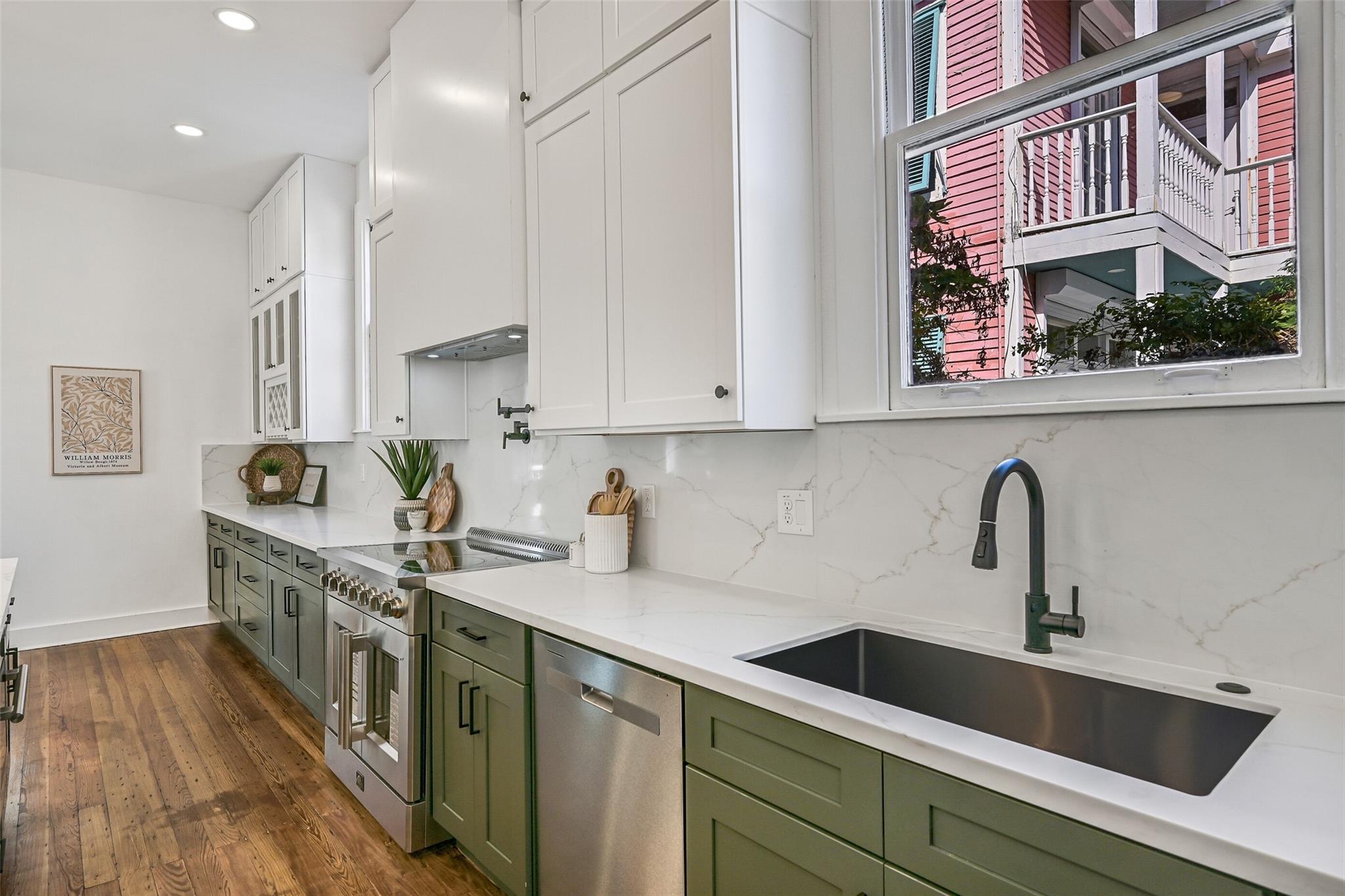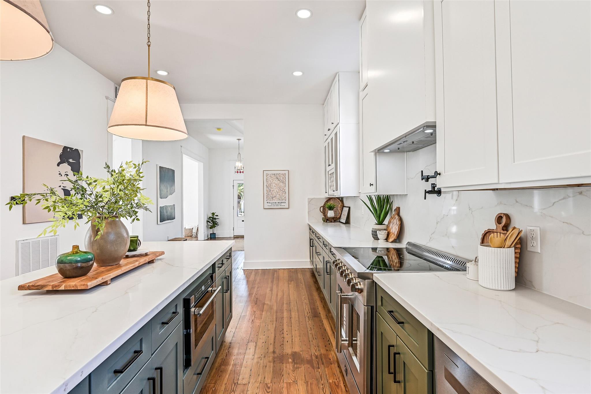 InteriorFloors:Brick,Tile,WoodCountertop:QuartzBathroom Description:Half Bath,Primary Bath: Double Sinks,Primary Bath: Separate Shower,Secondary Bath(s): Tub/Shower ComboBedroom Desc:1 Bedroom Down - Not Primary BR,2 Bedrooms Up,Primary Bed - 2nd Floor,Walk-In ClosetKitchen Desc:Breakfast Bar,Island w/o Cooktop,Pantry,Pot Filler,Pots/Pans Drawers,Soft Closing Cabinets,Soft Closing DrawersRoom Description:Formal Dining,Formal Living,Living Area - 1st FloorHeating:Central Electric,Window UnitCooling:Central ElectricConnections:Gas Dryer Connections,Washer ConnectionsDishwasher:YesDisposal:YesMicrowave:YesRange:Gas RangeOven:Freestanding Oven,Gas OvenEnergy Feature:Attic Vents,Ceiling Fans,High-Efficiency HVACInterior:Balcony,Crown Molding,Fire/Smoke Alarm,High Ceiling