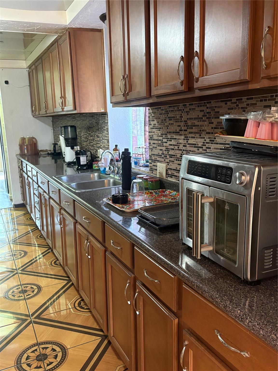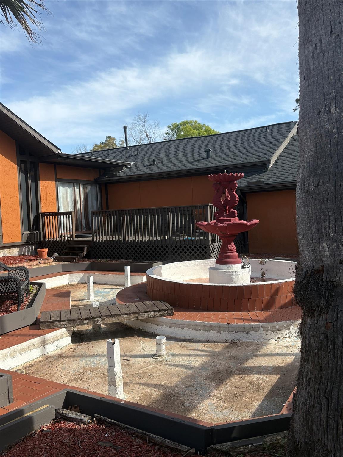 Previously used as senior living housing, the layout is well-suited for multi-generational living, assisted living, or investment opportunities. Unique one-story property with distinctive Southwestern-inspired architecture on a prominent corner lot. Features include 6 bedrooms, 3 full bathrooms, and 2 half baths, offering ample space for living and entertaining. The home includes 2 separate studio apartments, ideal for guests or rental income potential. Inside, enjoy an open-concept layout with vaulted ceilings, a large central skylight, and abundant natural light from expansive windows. Updated kitchen with modern finishes, spacious laundry area, and a versatile game room. A sunken fireplace seating area adds warmth and character. Gazebo and mature landscaping complete this unique property.