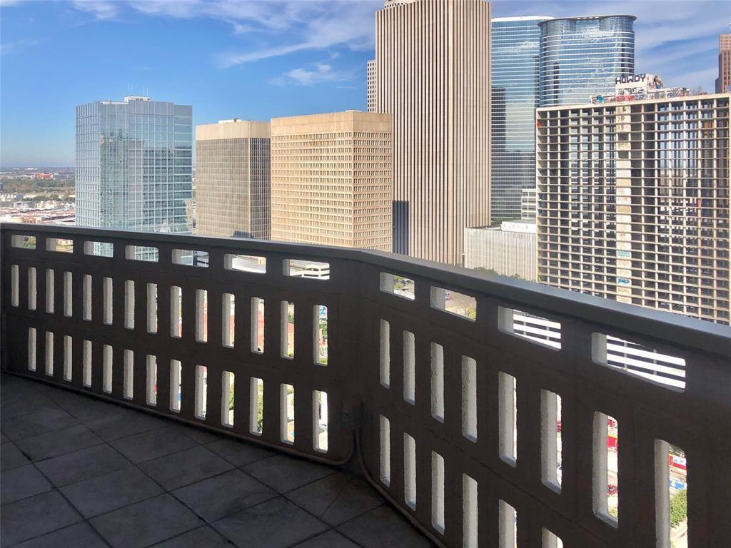 Studio unit with full balcony (rare for studios in this building) and sensational downtown view from the 20th floor. Laminate floors, built-in wet-bar, open kitchen, and custom cabinets. HOA FEE INCLUDES: electricity, internet, cable, water, trash. COMMUNITY: 24/7/365 courtesy staff, limited access, resident lounge, free coffee bar, pool, gym, 1 assigned parking space, grills, party room, guest units, package rm, Amazon Locker. Located on the Rail. Walking distance to: bayou running & cycling trails, midtown/downtown parks & dog parks, eateries, theaters, shopping, hotels, grocery stores, and the 7-mile underground tunnel system. Instant access to I-45, I-10, and Hwy 59/288. Close to: Museums, TX Medical Center, UofH (Central and DT), TSU, Rice, St. Thomas, and S. TX. Law, Minute Maid Park, George R Brown, and Shell Soccer Stadium.