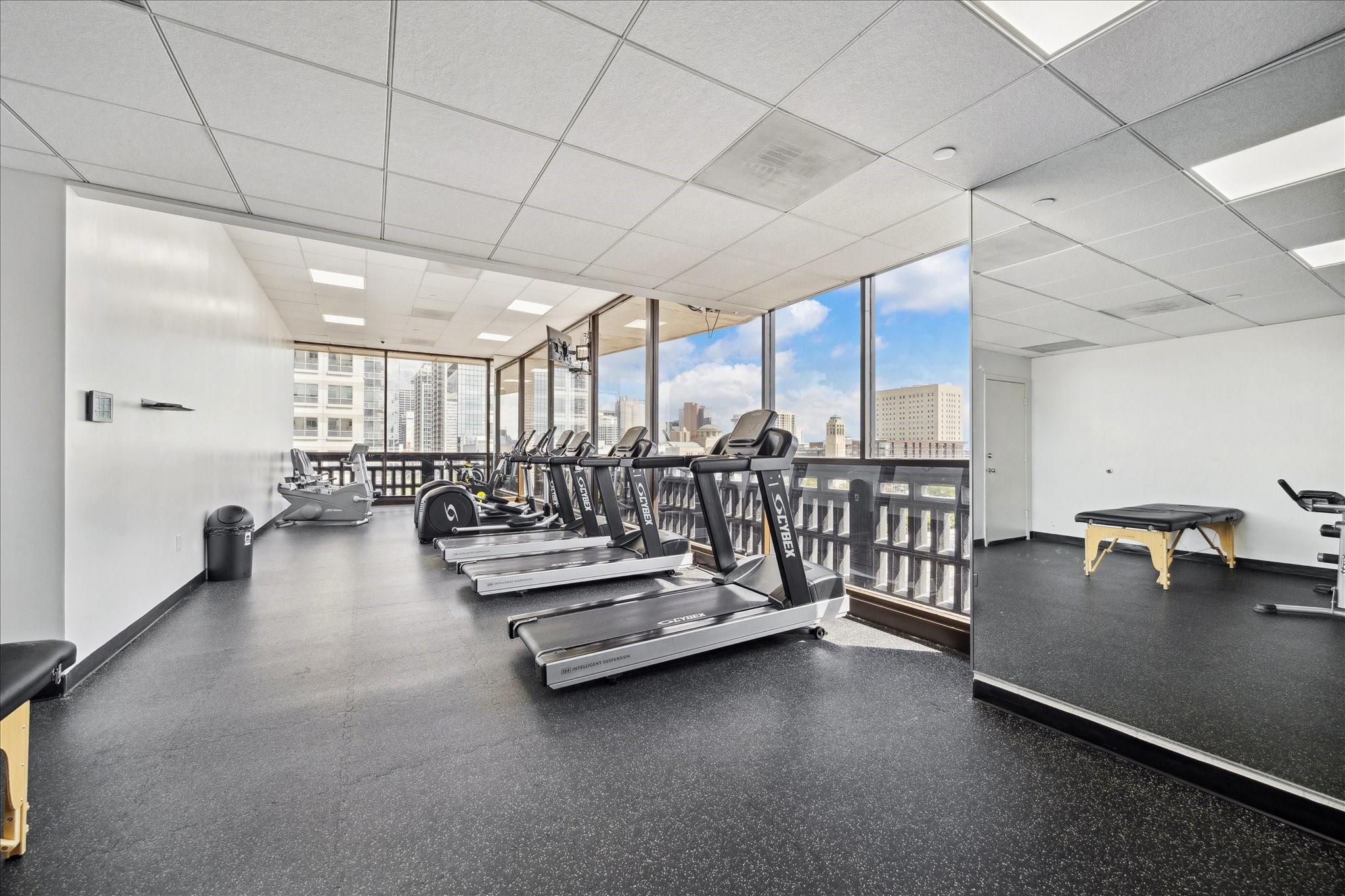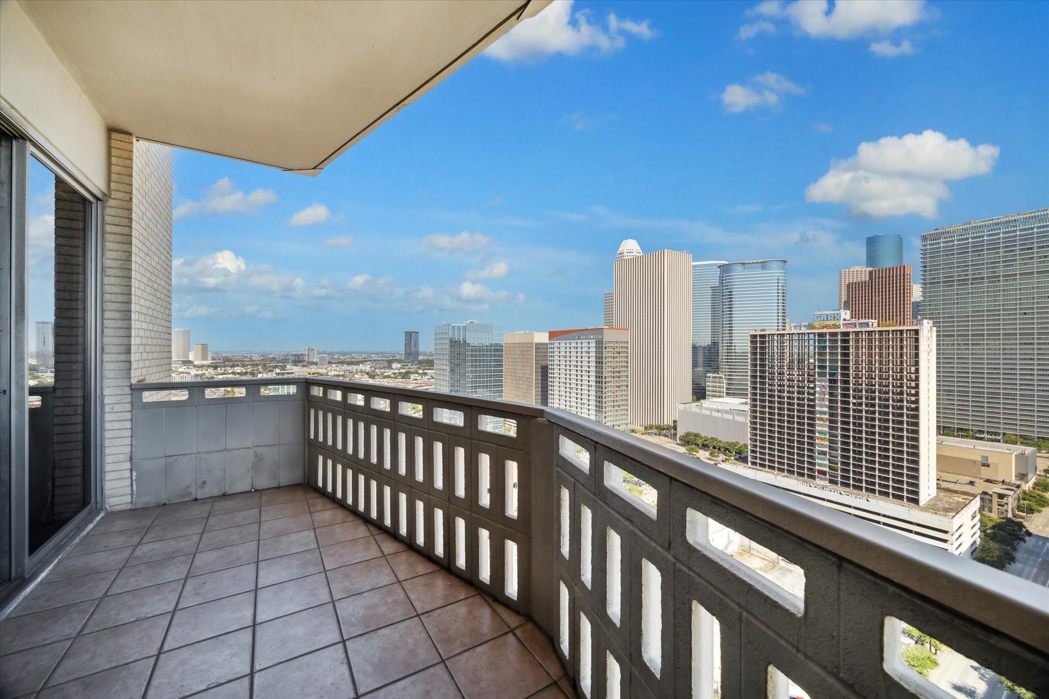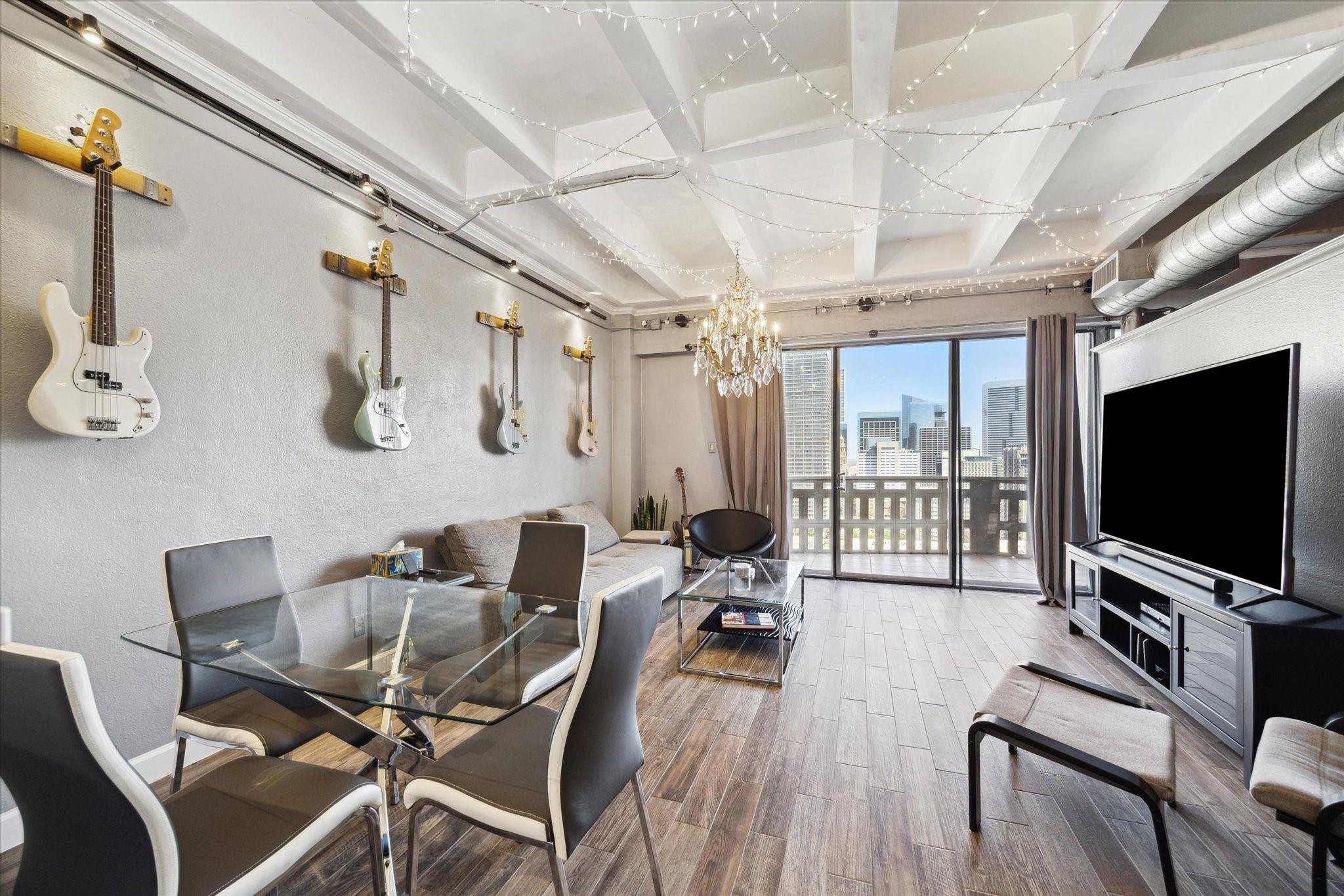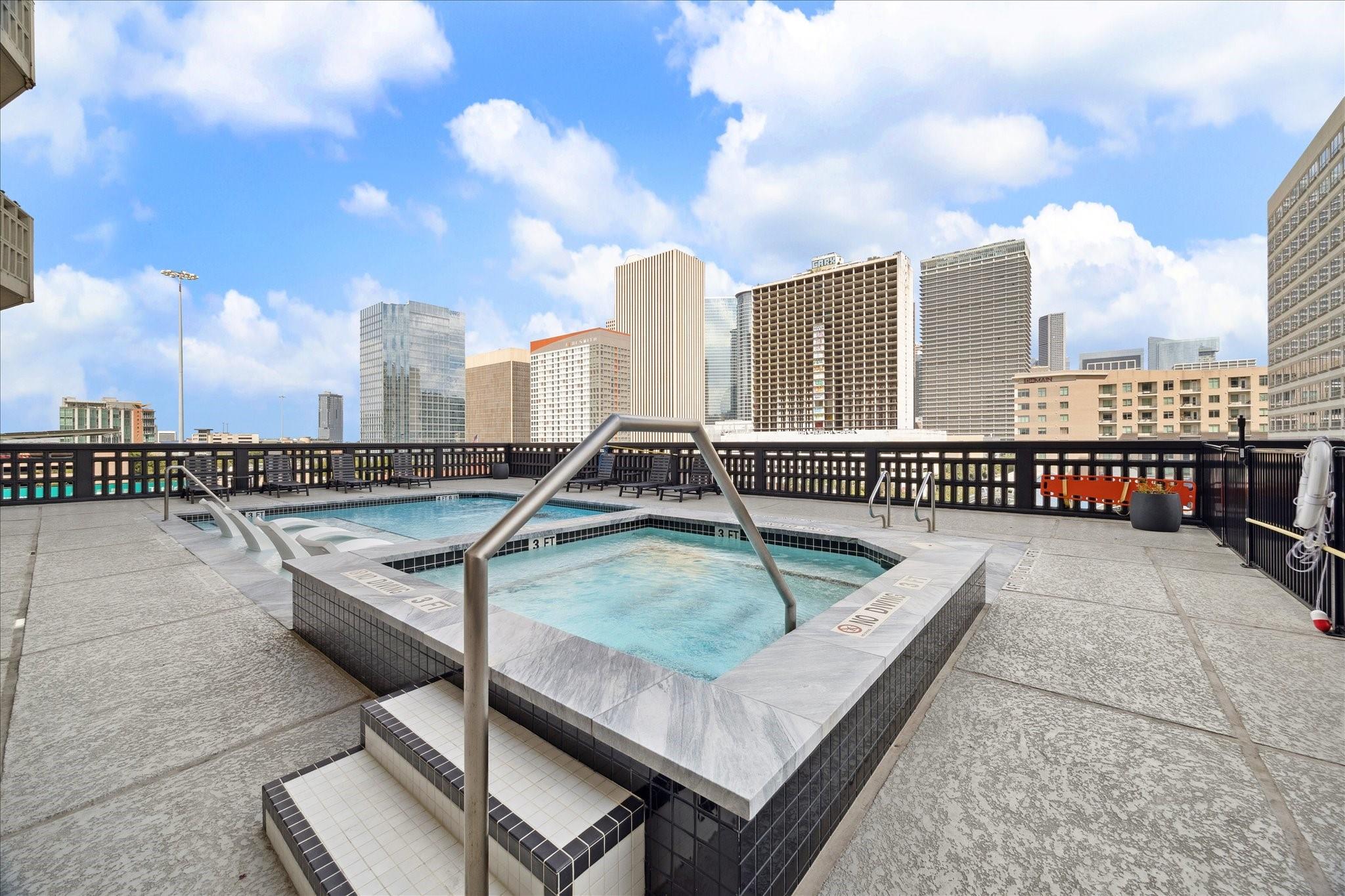 Wake up to breathtaking views of downtown Houston in this renovated 24th-floor condo at 2016 Main Street High-Rise. The modern kitchen shines with new appliances, quartz countertops, custom cabinetry, and an upgraded sink. Durable wood-look tile flooring flows throughout the open living area and bedroom, adding warmth and style. Enjoy all the conveniences of high-rise living with access to a fitness center, pool, concierge, laundry facility, and Amazon parcel locker. This unit includes a personal parking space, with additional guest parking just across the street. Recent updates include new HVAC ductwork, and the in-unit combo washer/dryer (included) makes daily living a breeze. Furniture negotiable.