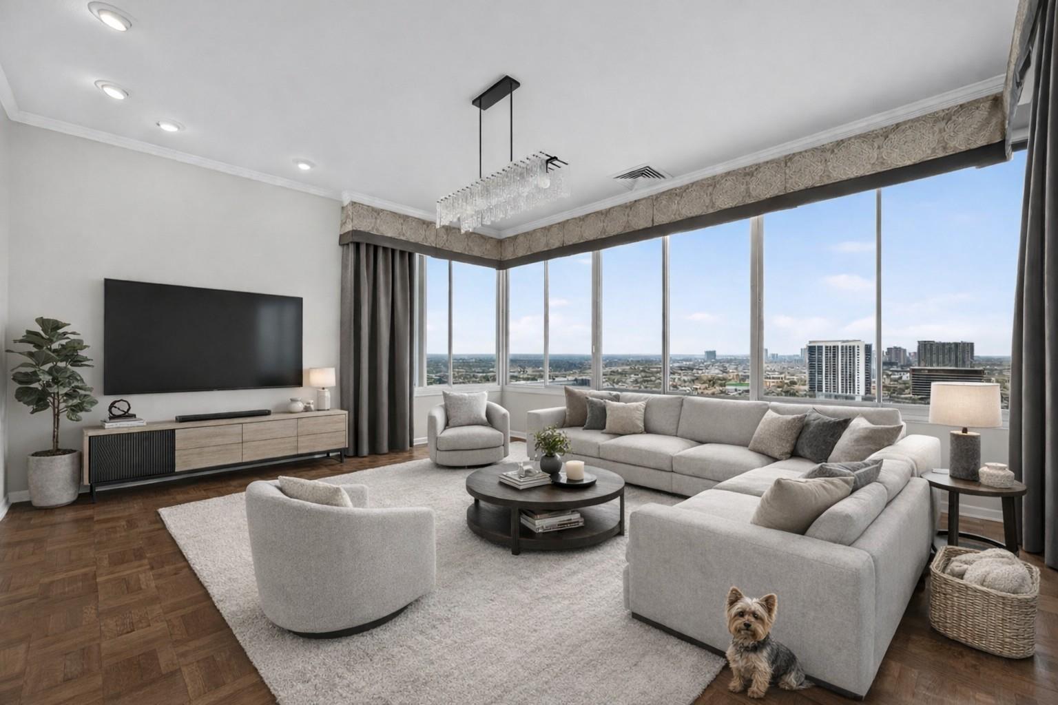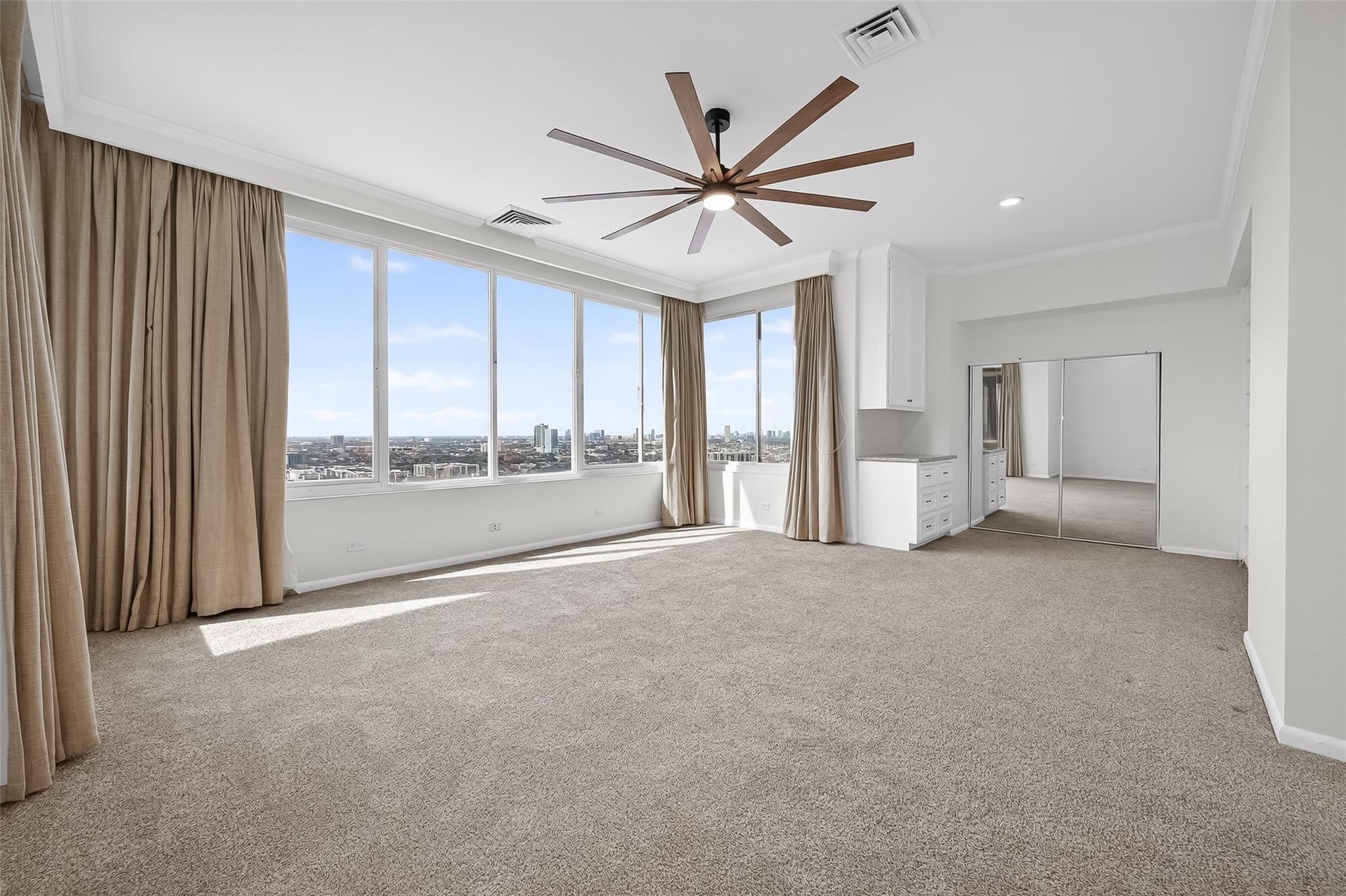Well appointed Penthouse on the 26th floor for the person(s) who love to entertain and are accustomed to all the amenities and convenience of a property like this . Recently renovated and updated, the Unit boast 3 bedrooms, 2.5 bathrooms and a flex room (office/study) with a closet for additional storage. The generosity of the sq footage affords utilization of space in multiple ways. The living room is so large it can be used as a living/dining room combo, freeing up dining room to become a second living space/family room. Views of Houston from Penthouse are breathtaking and relaxing on a sunny or not so sunny day, with colorful Sunsets. All inclusive in monthly HOA fee are Amenities pool,gym,security, controlled access, resident lounge w/ coffee bar, grills, package room, Amazon locker, shredding and party room has (cleanup fee). Near Hwys 288, 59, 45, 610, Rail, Parks, Trails, Med Center, Museums, Stadiums, UofH, TSU, S TX Law, Rice, Minute Maid, Grocery stores, Theatres