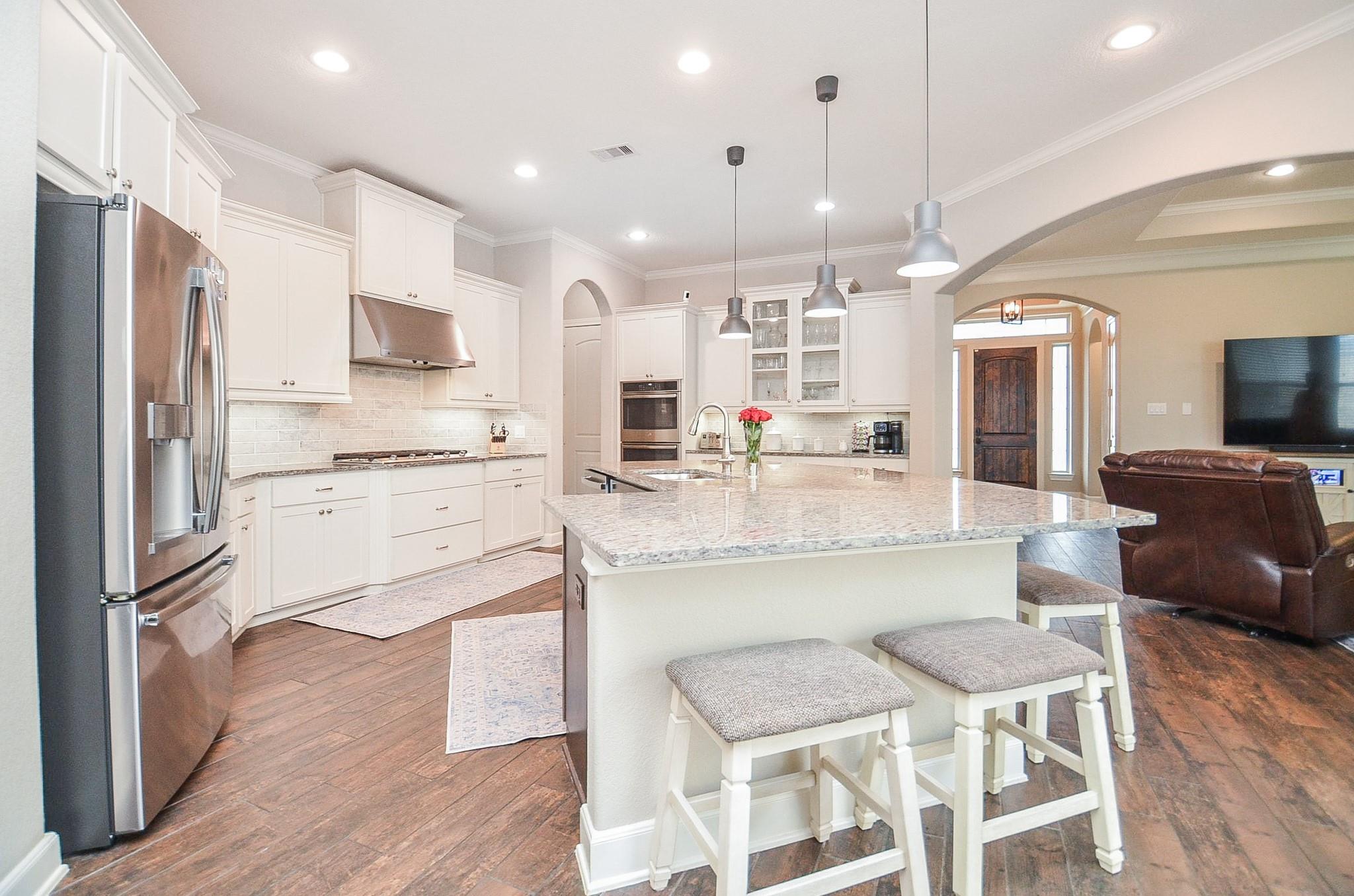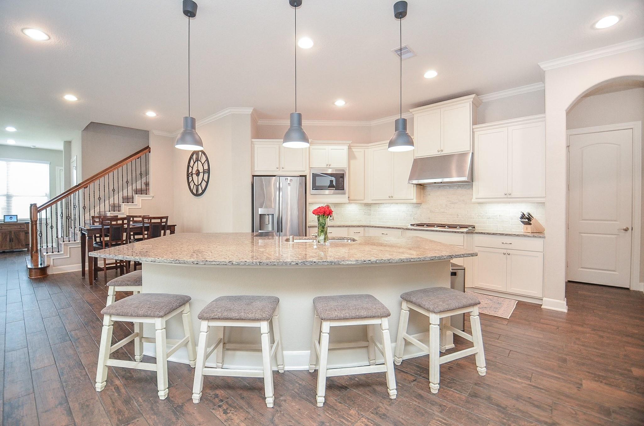 InteriorFireplace:1/Gas Connections,Gaslog FireplaceFloors:Carpet,Engineered Wood,Tile,WoodCountertop:GraniteBathroom Description:Full Secondary Bathroom Down,Half Bath,Primary Bath: Double Sinks,Primary Bath: Separate Shower,Primary Bath: Soaking Tub,Secondary Bath(s): Separate Shower,Vanity AreaBedroom Desc:2 Bedrooms Down,2 Bedrooms Up,Primary Bed - 1st Floor,Sitting Area,Split Plan,Walk-In ClosetKitchen Desc:Island w/o Cooktop,Kitchen open to Family Room,Pantry,Walk-in PantryRoom Description:Breakfast Room,Den,Entry,Family Room,Formal Dining,Gameroom Up,Living Area - 1st Floor,Utility Room in HouseHeating:Central Gas,ZonedCooling:Central Electric,ZonedConnections:Electric Dryer Connections,Gas Dryer Connections,Washer ConnectionsDishwasher:YesDisposal:YesCompactor:NoMicrowave:YesRange:Gas CooktopOven:Double Oven,Electric OvenIce Maker:NoEnergy Feature:Ceiling Fans,Digital Program Thermostat,Energy Star Appliances,HVAC>13 SEER,Other Energy Features,Solar Panel - Owned,Solar PV Electric PanelsInterior:Fire/Smoke Alarm,Formal Entry/Foyer,High Ceiling,Window Coverings