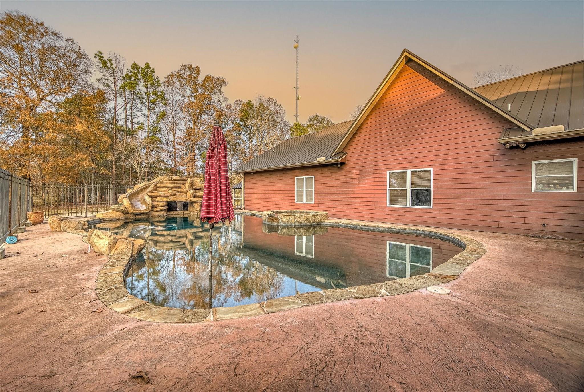 ExteriorFoundation:SlabPrivate Pool:YesPrivate Pool Desc:Gunite,Heated,In Ground,Pool With Hot Tub AttachedLot Description:Cleared,WoodedGarage Carport:Additional ParkingAccess:Driveway GateWater Sewer:Septic Tank,WellRoad Surface:AsphaltArea Pool:YesGarage Apartment:YesTree Description:Partial Coverage