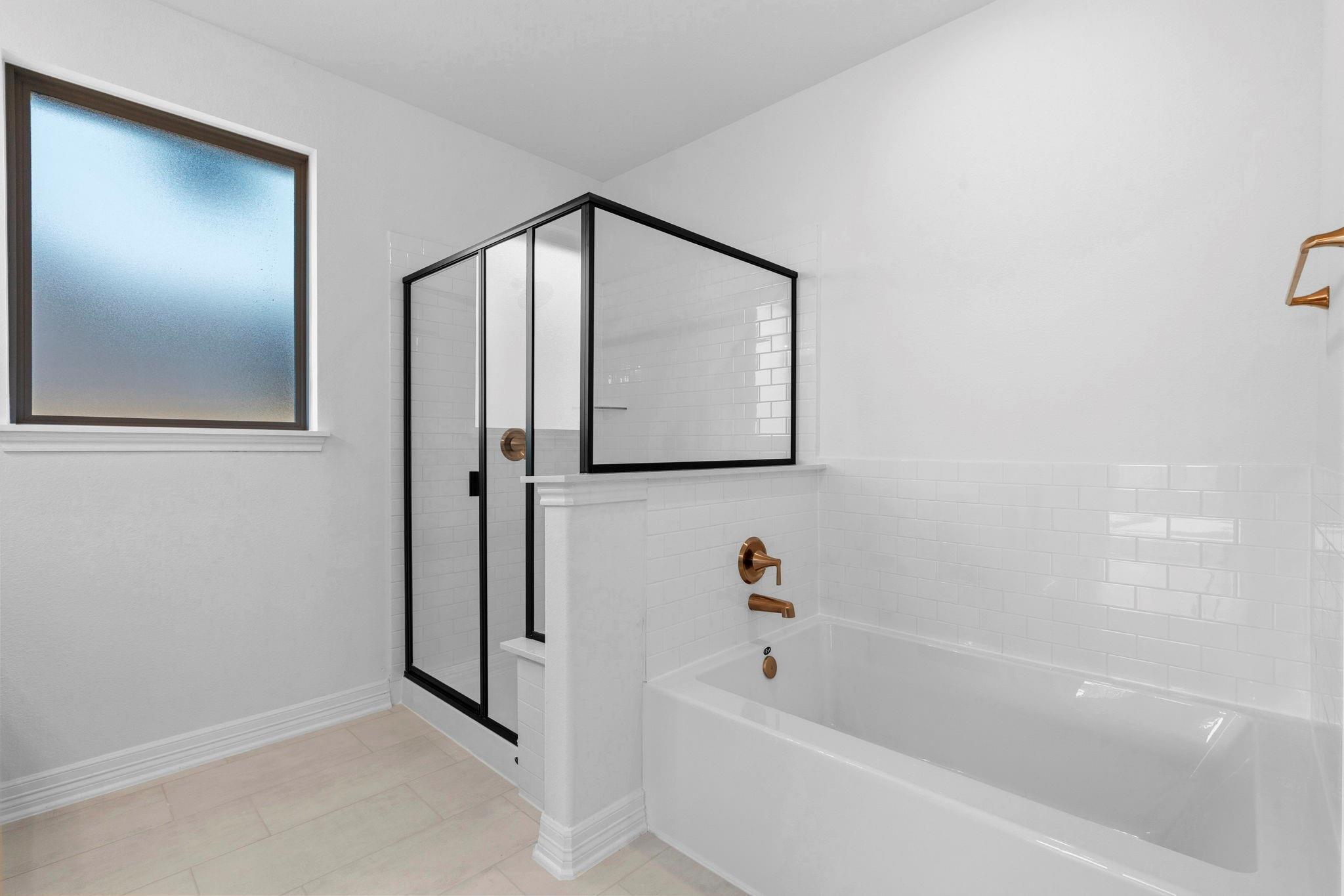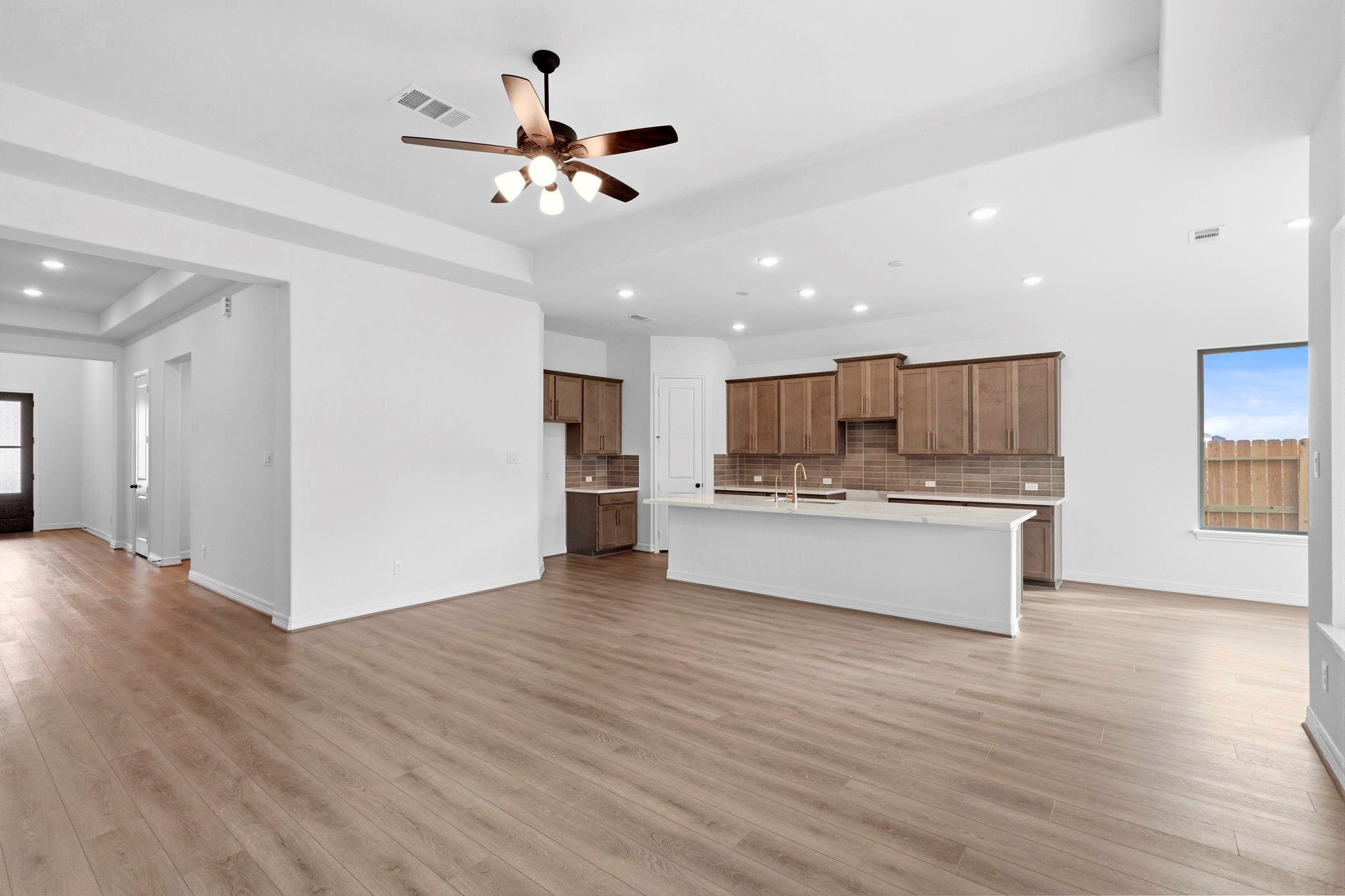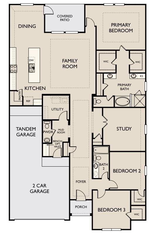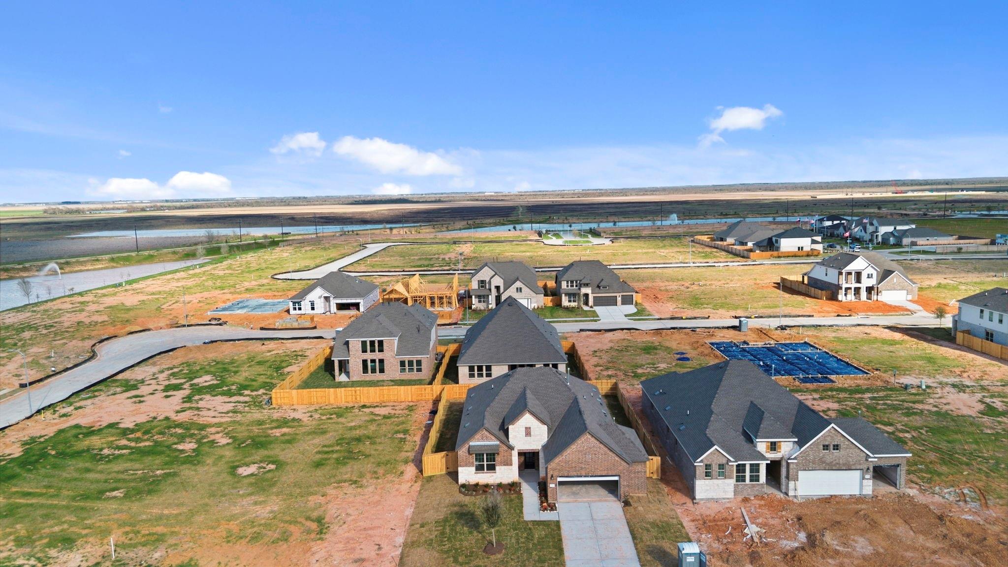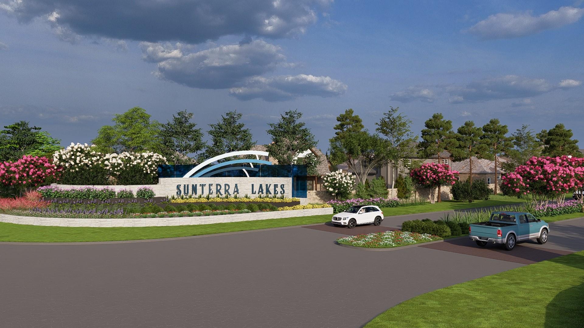 Located at the end of a quiet cul-de-sac, this one-story home features a spacious three-car garage. The Blake home offers a beautifully designed single-story layout with thoughtful architectural details throughout. Upon entering, the foyer welcomes you with elegant tray ceilings, adding a touch of sophistication. The open-concept floor plan connects the kitchen, dining and family room, creating an ideal space for entertaining. The primary suite is a luxurious retreat, featuring a tray ceiling, dual vanities in the bath, and two separate walk-in closets for added convenience. A private study provides flexible space for work. This home features the AW Collection Laguna, showcasing warm stained wood cabinetry and artful coastal ranch details for a relaxed, sun-soaked atmosphere. Located in Sunterra Lakes, Brookshire's newest master-planned community with access to the Crystal lagoon& more.