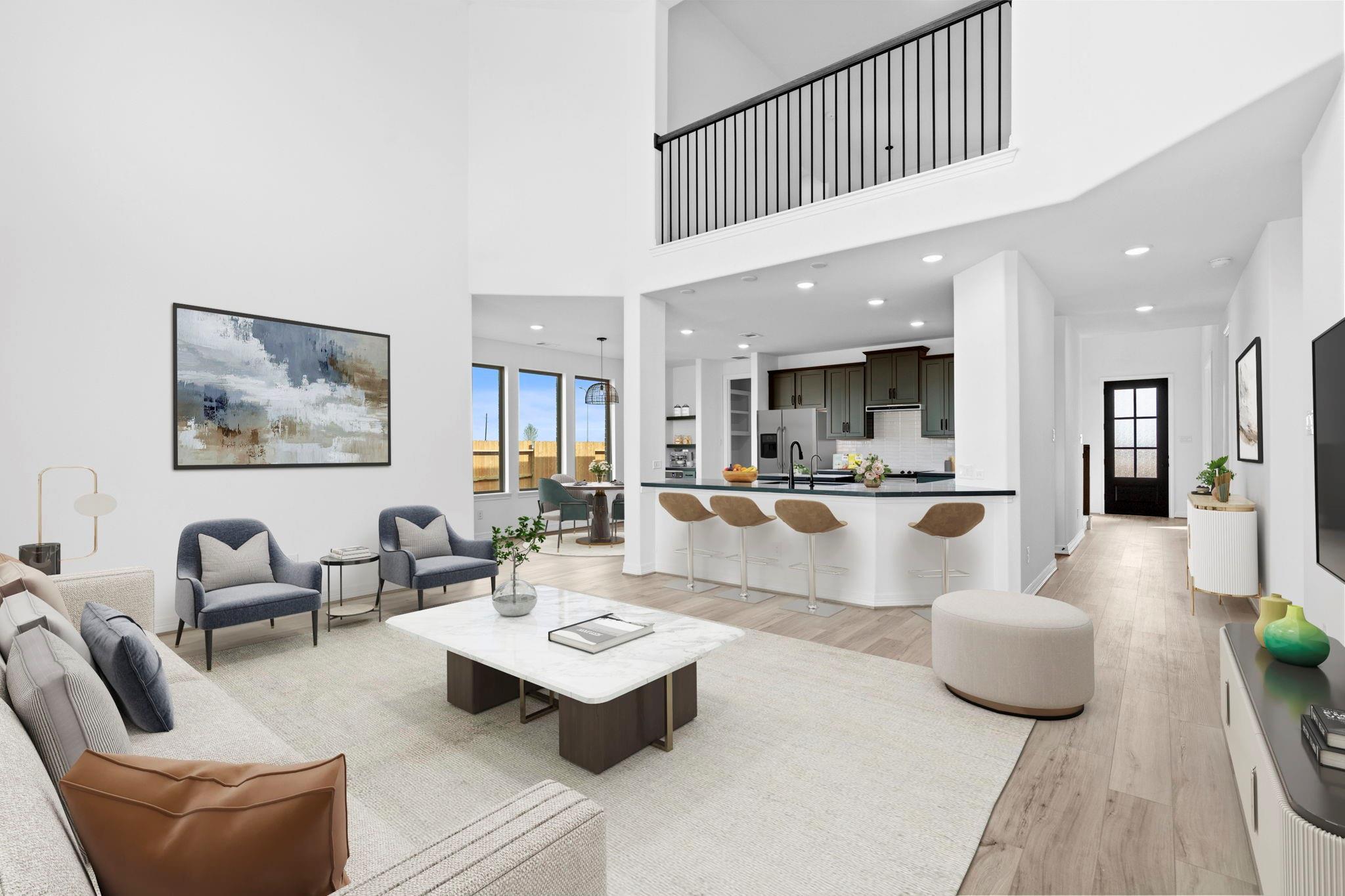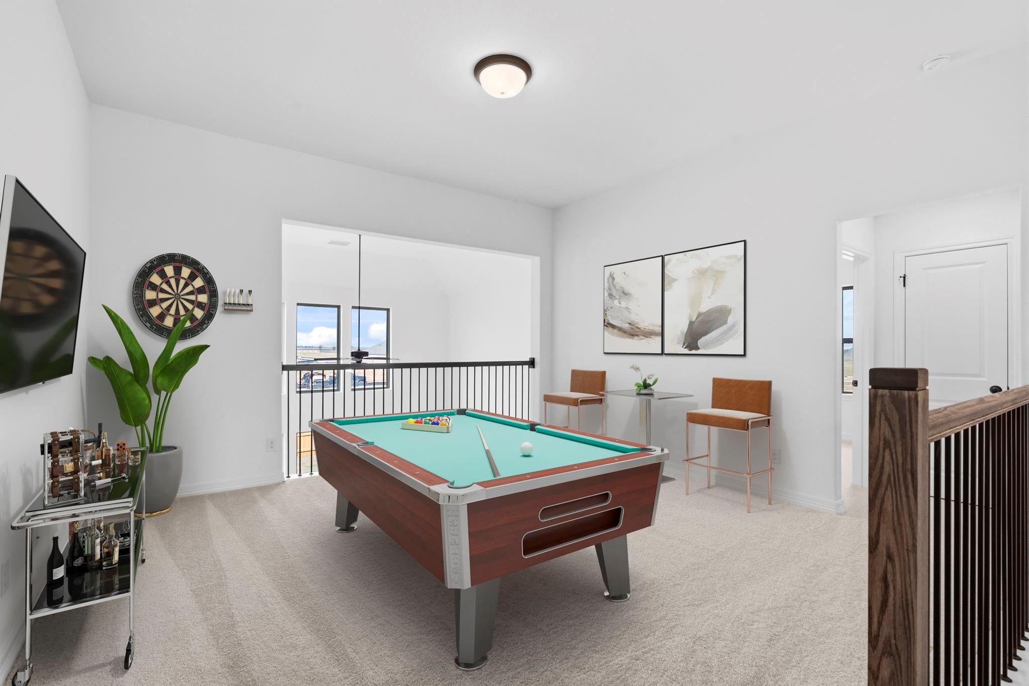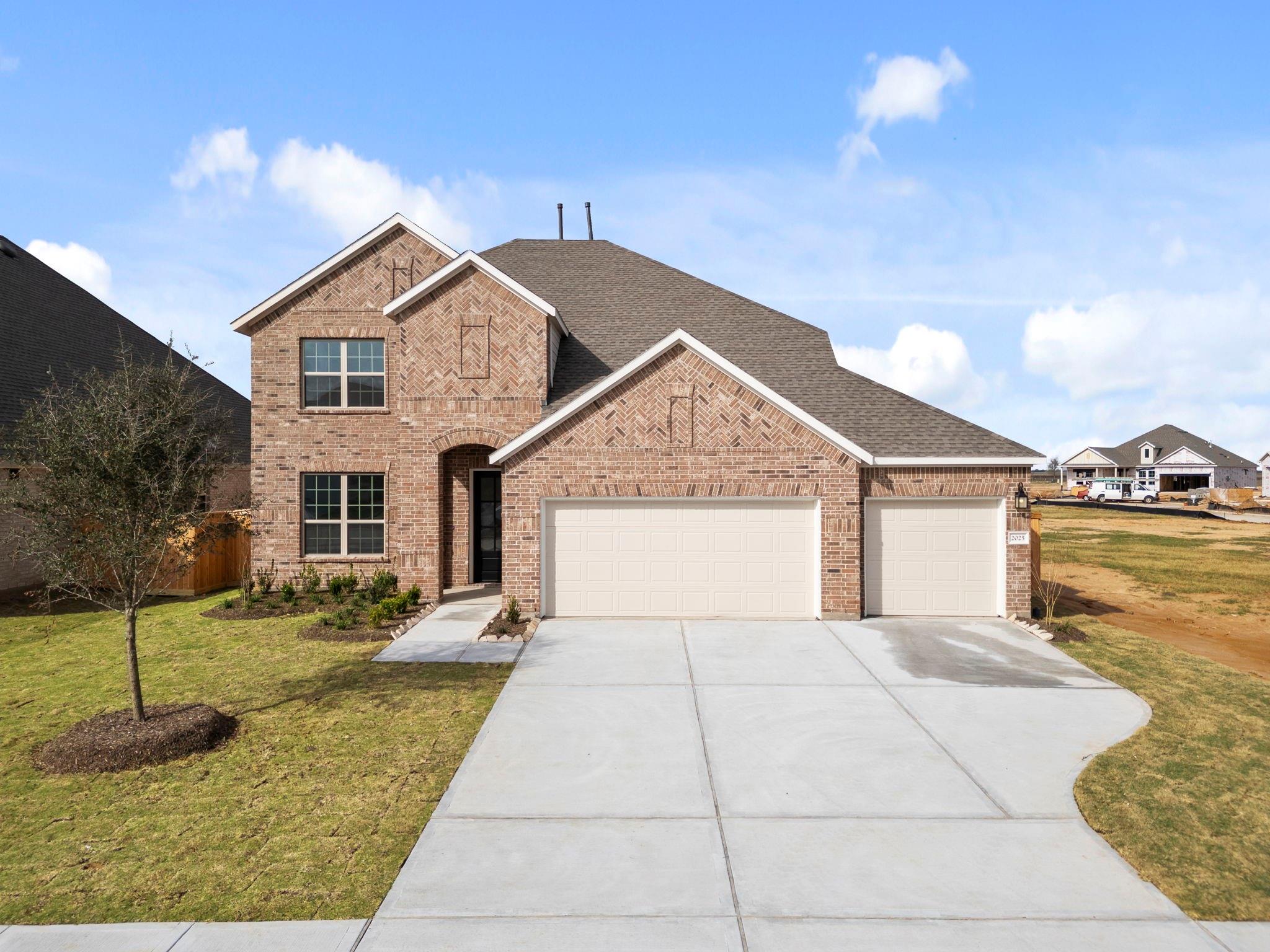 Cul-de-sac lot on a peaceful street with a 3-car garage! The Tyler home is a standout choice for those seeking a blend of elegance and practicality. Step inside to a grand entry with a spacious home office. The open- concept design seamlessly connects the family room to the kitchen, enhanced by a breakfast nook that creates a warm gathering space. The covered patio extends the living area, providing a perfect setting for summer barbecues and outdoor enjoyment. A spacious game room on the second floor serves as an ideal retreat for family activities, while the thoughtfully designed secondary bedrooms offer comfort and privacy. The Tyler home combines thoughtful design with modern living. This home features the AW Collection Rosemary, with rich green cabinetry, dark countertops, and earthy finishes that blend bold design with nature-inspired comfort. Located in Sunterra Lakes, Brookshire's newest master-planned community with access to the Crystal Lagoon, sandy beaches, kayaking, & more.