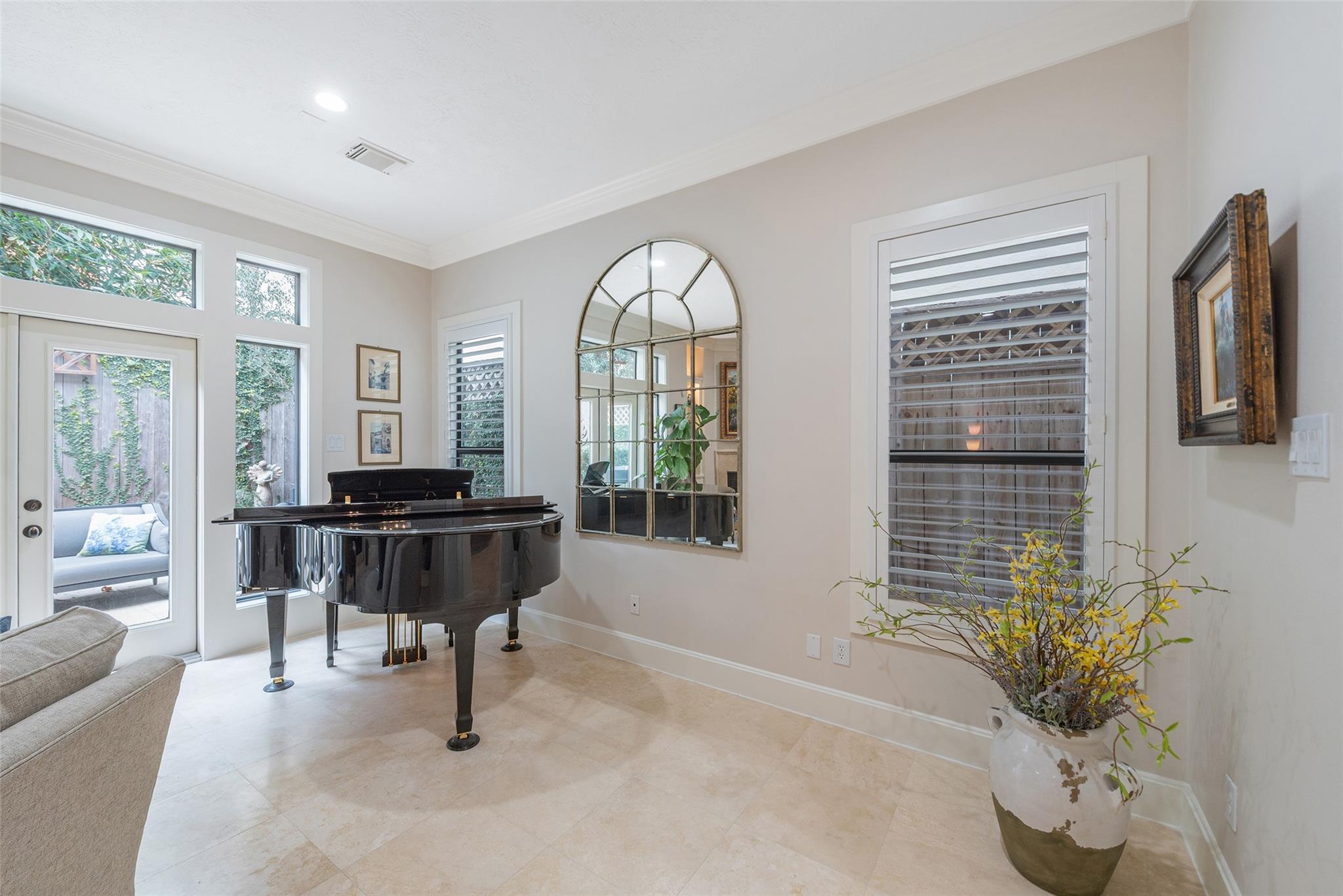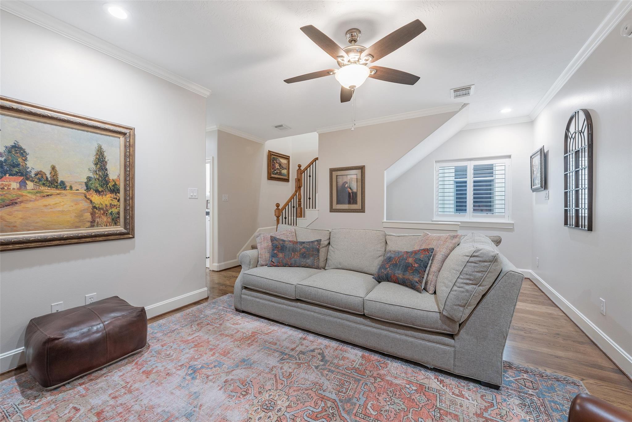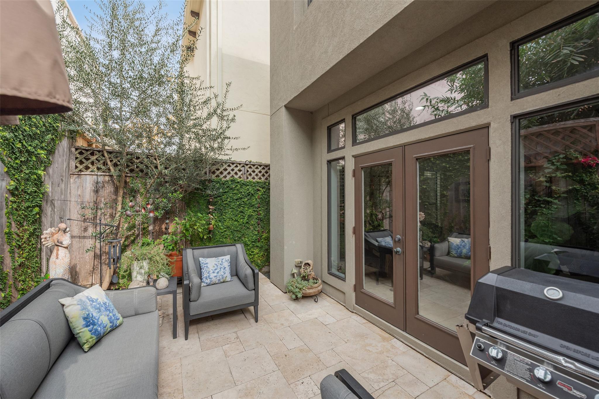 Quiet Tree lined street, easy walk to shops , River Oaks Theater ,restaurants on West Gray. Great shopping nearby.. First floor living , inviting Kitchen with banquette. Spacious Open Plan , Living -Dining + fireplace, patio doors to private outdoor entertainment area, gas line for fireplace or barbeque. Second floor living area separates primary bedroom from others . Flexible plan , third floor Gameroom has large storage closet and full bath , used now as a bedroom, great for teen, adult , house keeper/ care giver. Garage has Built-in Garage Tech storage system + EV charging outlet (never used by this owner ) and upgrage to breaker box.
