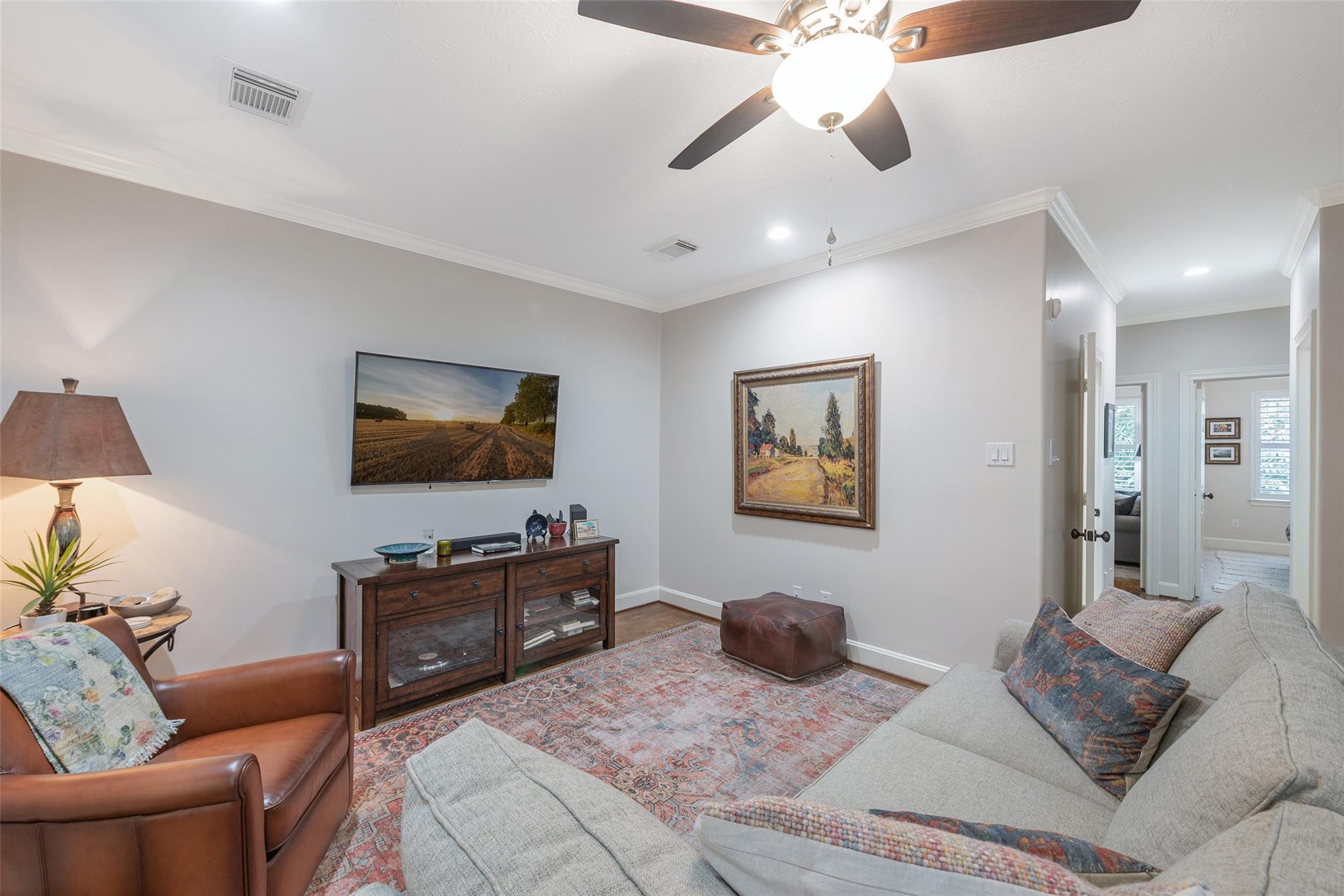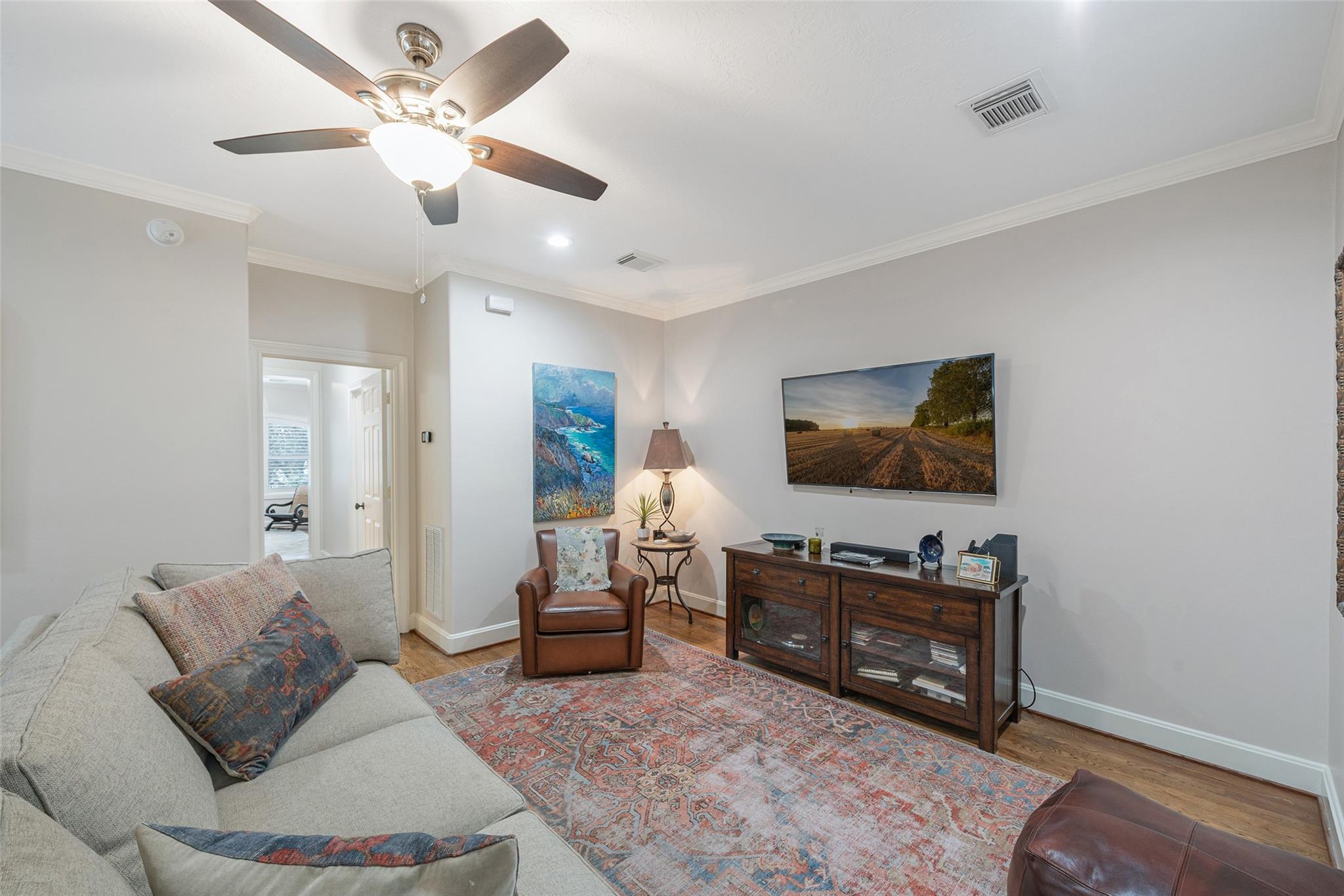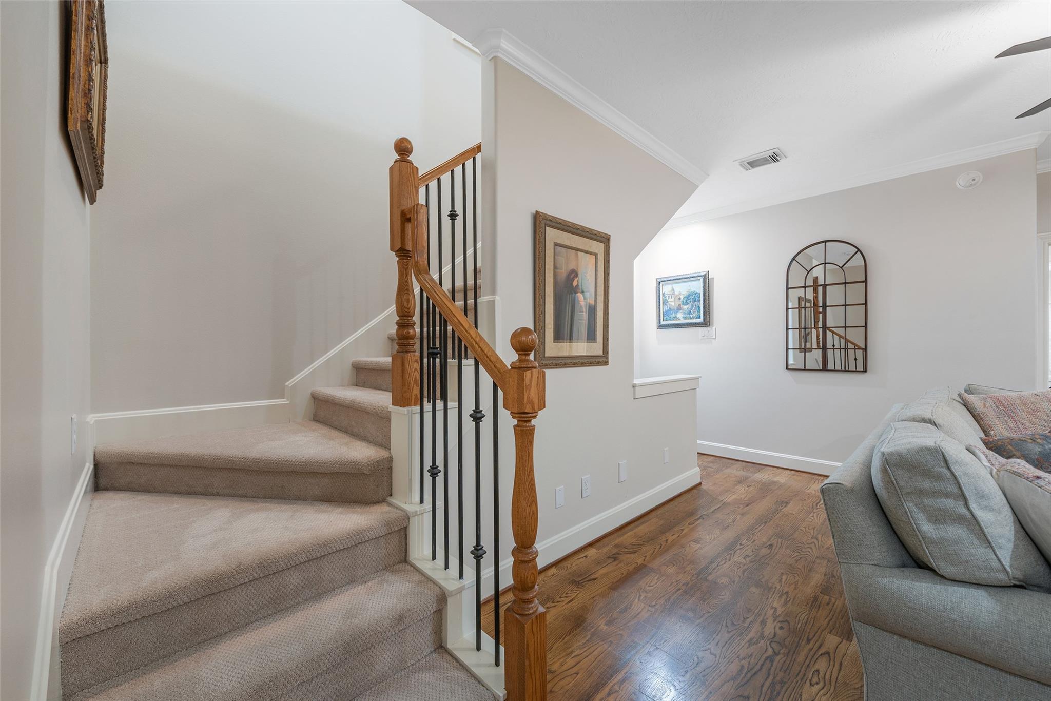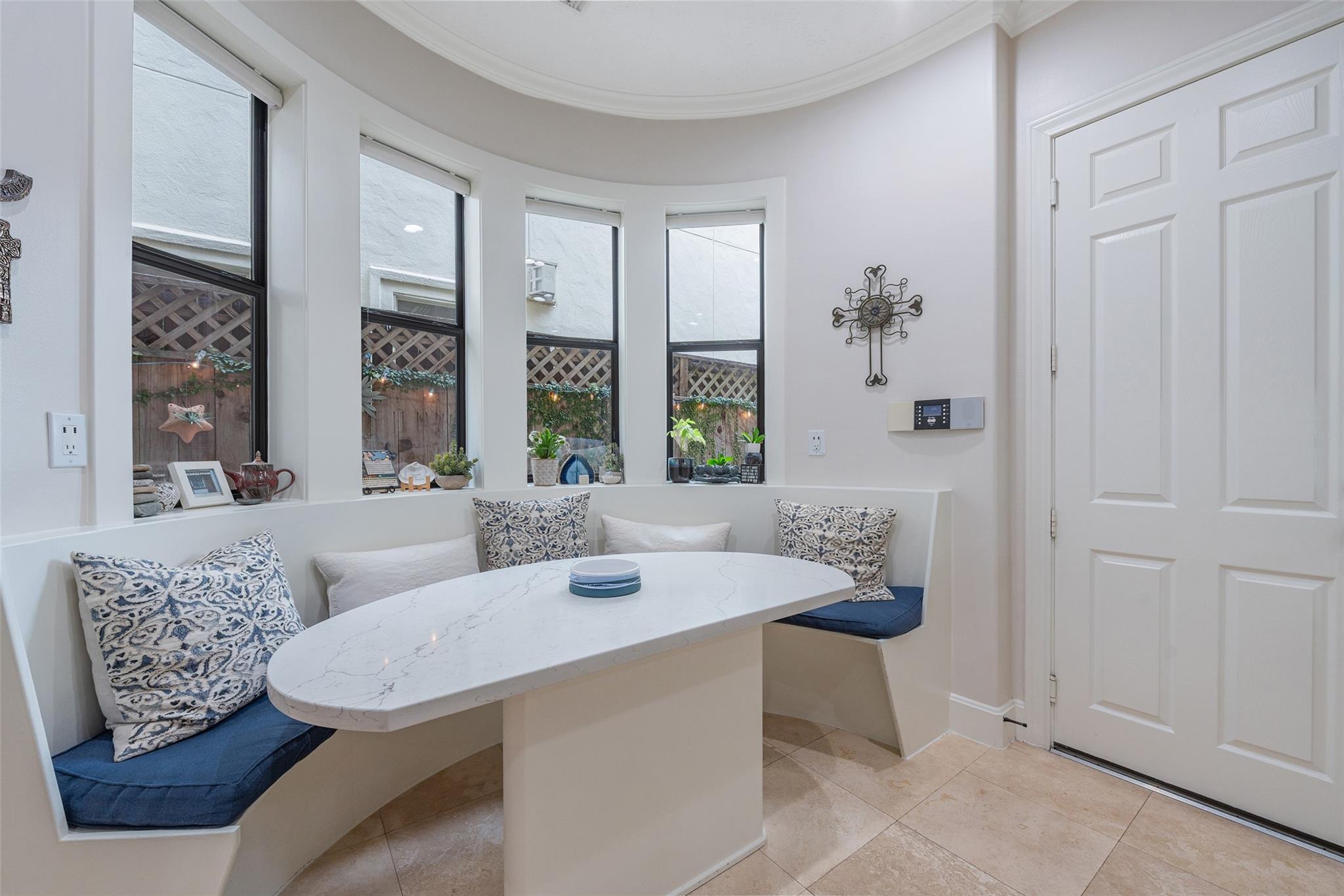 Quiet Tree lined street, easy walk to shops , River Oaks Theater ,restaurants on West Gray. Great shopping nearby.. First floor living , inviting Kitchen with banquette. Spacious Open Plan , Living -Dining + fireplace, patio doors to private outdoor entertainment area, gas line for fireplace or barbeque. Second floor living area separates primary bedroom from others . Flexible plan , third floor Gameroom has large storage closet and full bath , used now as a bedroom, great for teen, adult , house keeper/ care giver. Garage has Built-in Garage Tech storage system + EV charging outlet (never used by this owner ) and upgrage to breaker box.