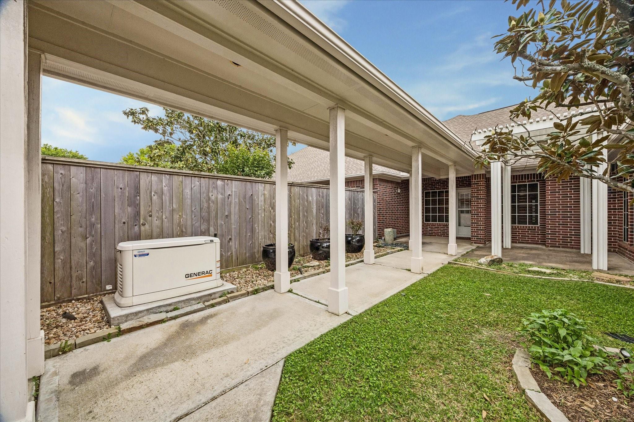 Beautifully located in the heart of Friendswood, this inviting 3-bedroom, 2-bath townhome offers both comfort and charm. High ceilings create an open, airy feel, while the kitchen flows seamlessly into the living area—ideal for entertaining and everyday living. A formal dining room provides the perfect space for gatherings, and the spacious primary suite features two closets for added convenience. Elegant crown molding throughout the home adds a touch of character and sophistication. Enjoy a private, cozy backyard, along with the practicality of a detached garage and a generator for added peace of mind. The front door opens to a serene green space, offering a welcoming and tranquil setting. It's a perfect place to call home.