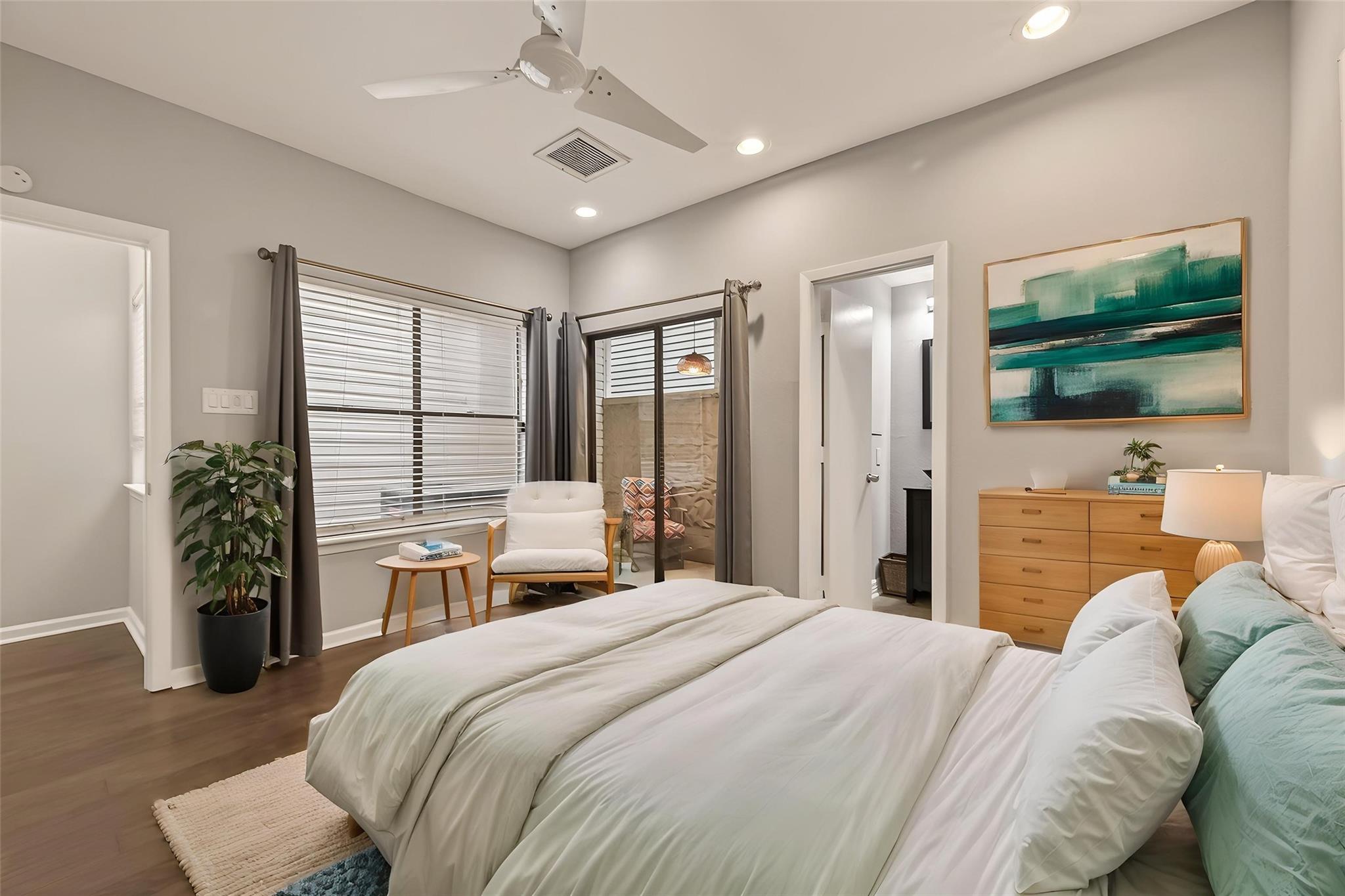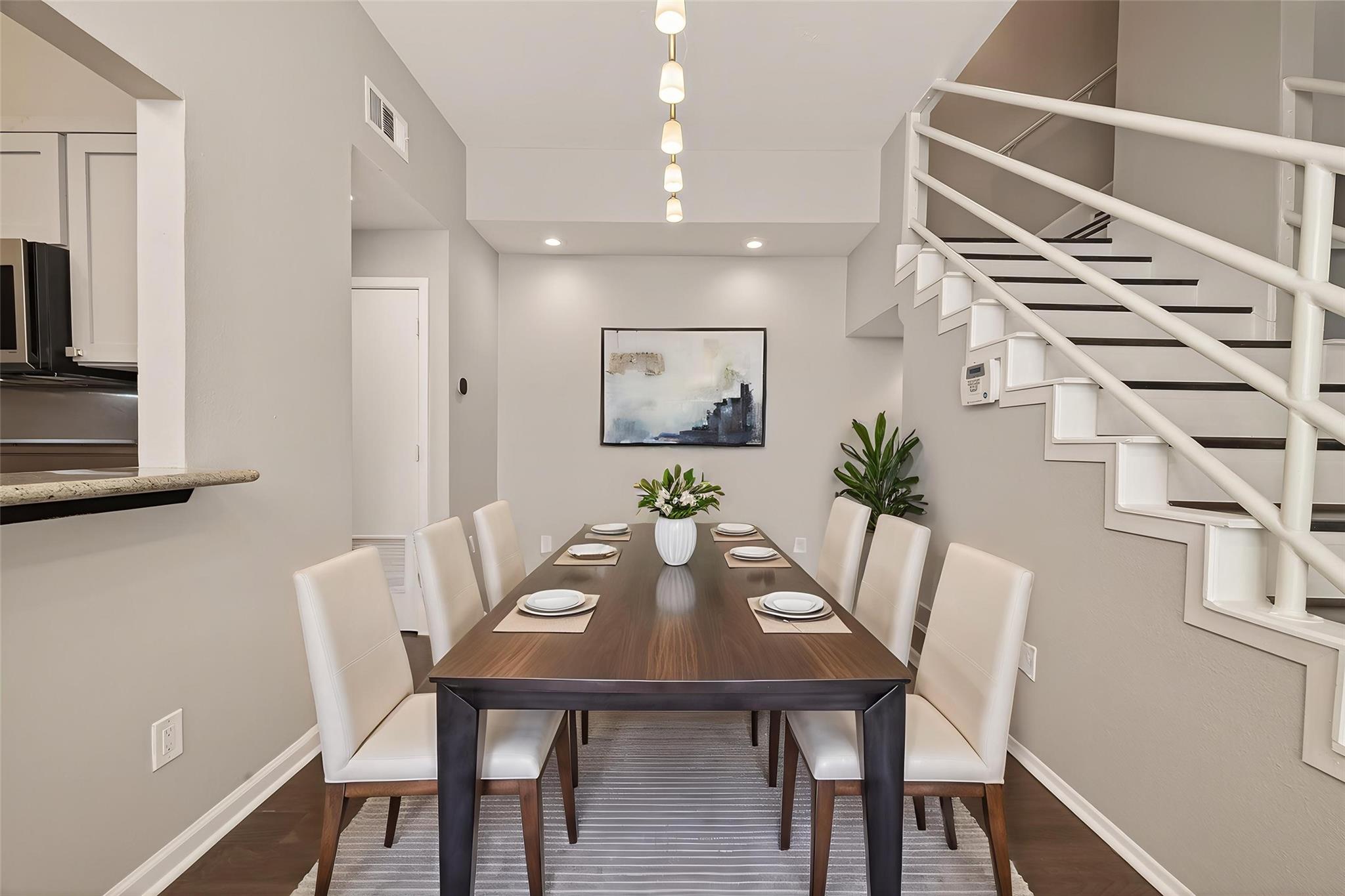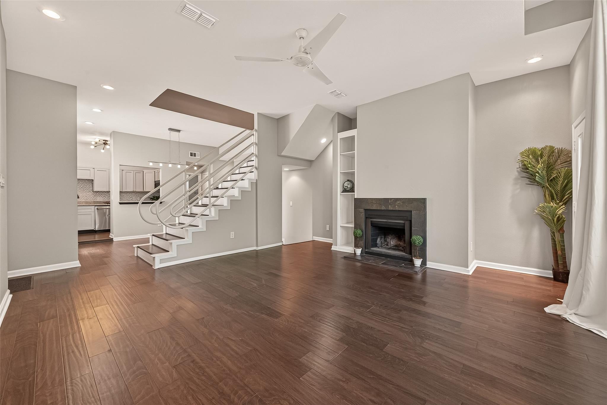 Beautifully updated 3-story Montrose townhome with no HOA! Major upgrades include stucco rebuild with warranty, balcony reconstruction(2026). Whole home interior freshly painted walls and trim in neutral color. Updated kitchen (2024) features modern stainless steel appliances, herringbone backsplash, pantry, and pull-out shelving. Granite countertops and deep double stainless steel sink. Living room with floor to ceiling windows (2022) and wood burning fireplace. Third-floor primary suite offers fireplace, tree views, flex space, and updated bath with double sinks and added linen storage (2026). First-floor bedroom with full bath and private patio—ideal for guests or roommate . Wood laminate flooring (2022) throughout whole home, tile in bathrooms - No carpet. Prime location near University of St. Thomas, Midtown, Medical Center, and restaurants. VIEW AT YOUR OWN RISK - YOU WILL FALL IN LOVE! Open House this Saturday the 18th 2-4pm