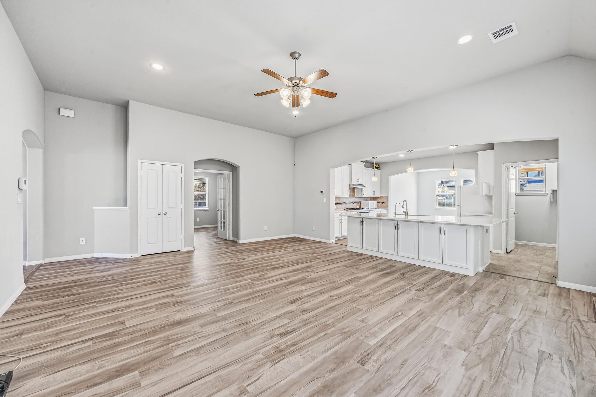 InteriorFloors:Laminate,TileCountertop:quartzBathroom Description:Primary Bath: Double Sinks,Primary Bath: Separate Shower,Primary Bath: Soaking TubBedroom Desc:All Bedrooms Down,Primary Bed - 1st Floor,Walk-In ClosetKitchen Desc:Breakfast Bar,Island w/o Cooktop,Kitchen open to Family RoomRoom Description:Family Room,Formal Dining,Home Office/Study,Kitchen/Dining Combo,Living Area - 1st Floor,Utility Room in HouseHeating:Central GasCooling:Central ElectricConnections:Electric Dryer Connections,Gas Dryer Connections,Washer ConnectionsDishwasher:YesDisposal:YesMicrowave:NoRange:Gas CooktopOven:Electric OvenEnergy Feature:Ceiling FansInterior:Fire/Smoke Alarm,High Ceiling
