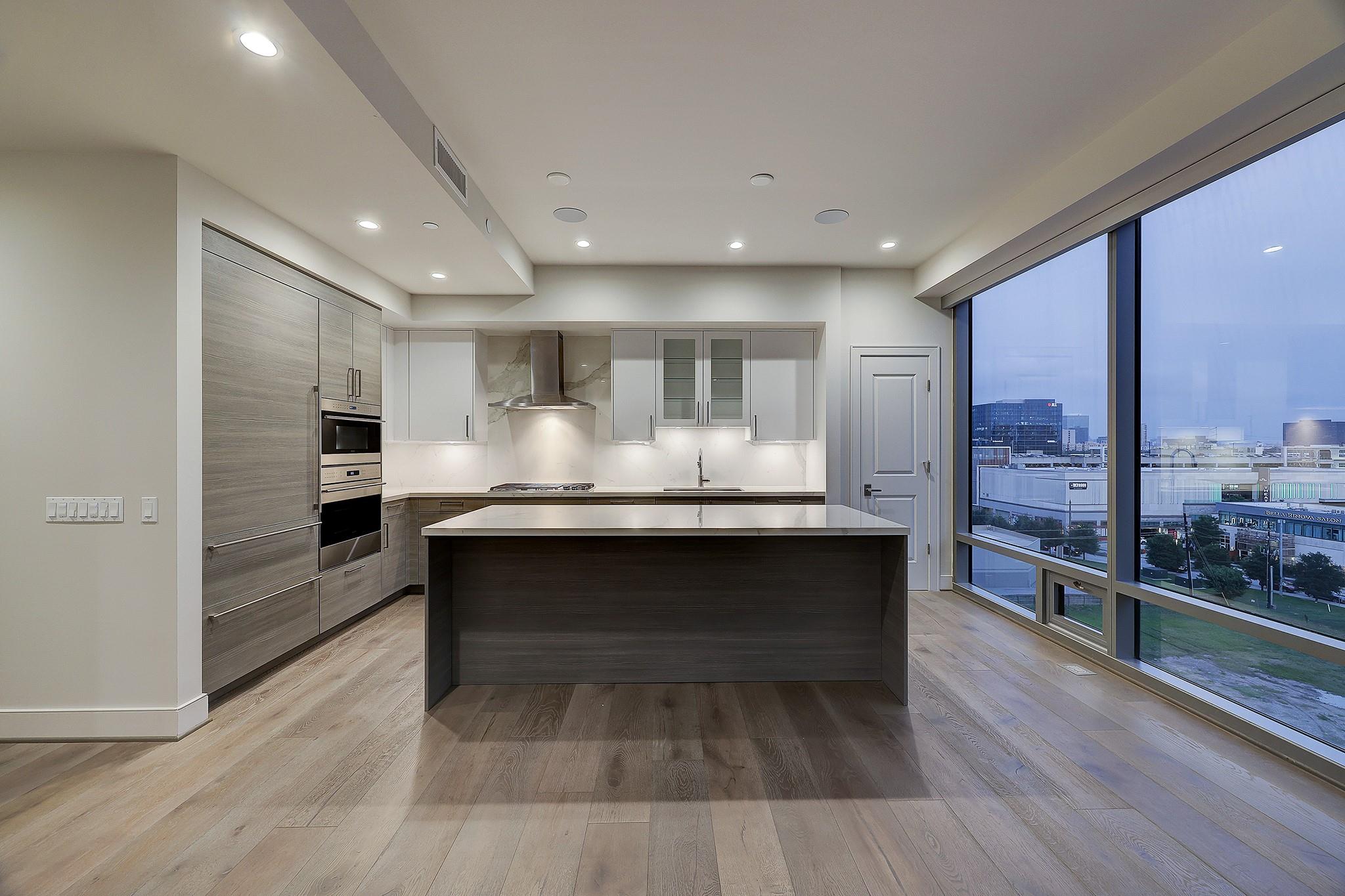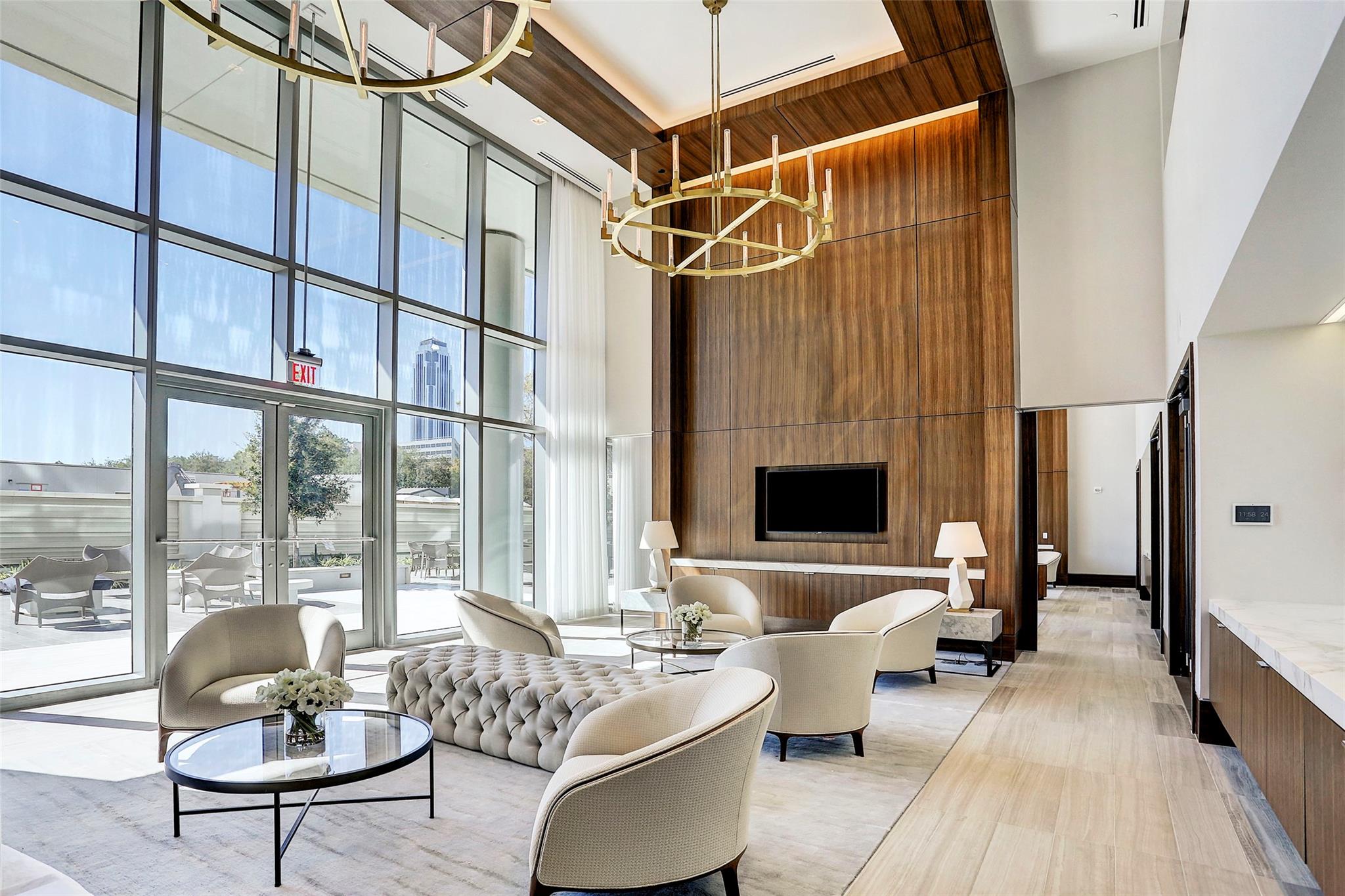 Beautiful light-filled 2 bedrm/2 bath, located in the southwest corner of The Wilshire, a 17-stry luxury high rise located near the Galleria Area & River Oaks District. The open/spacious floorplan embodies a practical/ stylish living & at-home entertaining space. With custom closets, gleaming hardwoods, motorized shades & chef's kitchen w/Wolf & Sub-Zero appliances, Calacatta porcelain countertops & wine refrig, this is a true showplace! The primary suite offers 2 well-appointed custom walk-in closets, a lovely spa inspired bath w/Kohler soaking tub, stone counters & freestanding shower. The 2nd bedroom has its own balcony & is directly across from a full bath with gorgeous, tiled shower. This second bedroom makes a great guest suite or home office! 2 EV capable assigned parking spaces & a climate-controlled storage unit are included. The Wilshire's services & amenities include valet parking, concierge, guest suites, 2 large resident lounges, fitness center, 75' pool w/cabanas & more!