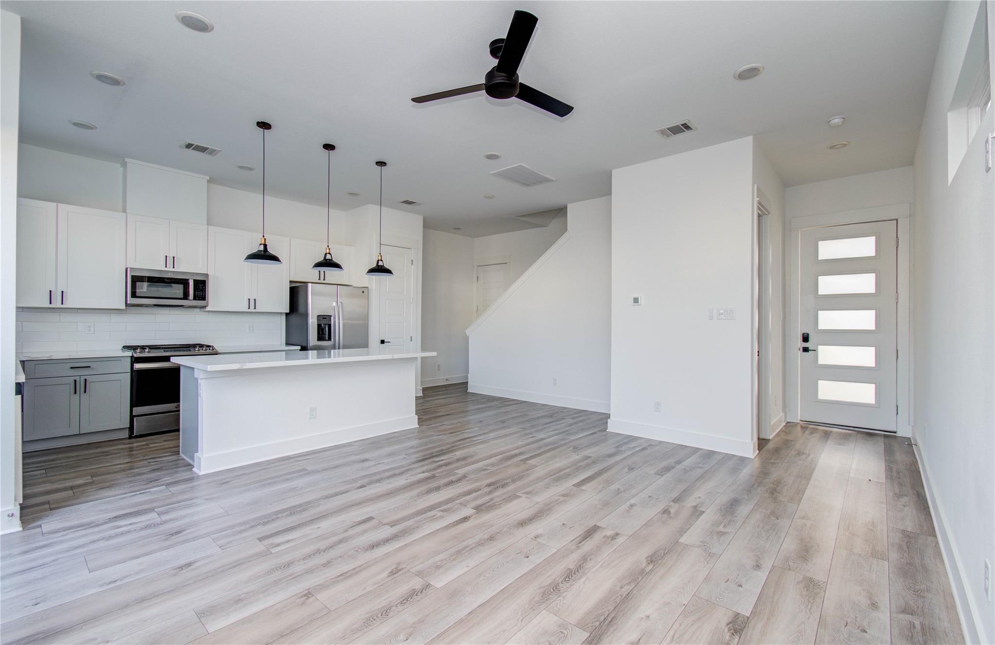 /month***RENT INCLUDES WATER AND TRASH PICK-UP*** Built in 2022, this gorgeous 2-story home located in the back of a gated community for maximum privacy; it features open-concept living spaces, and a half bath on the first floor, with a state-of-the-art kitchen, stainless steel appliances, wine cooler, quartz counter tops, high-end cabinets with soft close drawers. Unlike many developments in the area, this home offers an generously sized driveway. All bedrooms and laundry room upstairs; oversized master suite with free standing tub, walk-in shower, huge walk-in closet, double sink vanity and more. This home also gives you easy access to i-10, 610 and 290, with nearby popular destinations such as The Galleria, Downtown, The Heights, Memorial Park, Memorial City Mall, City Centre, Costco, IKEA and many more. Be the first one to live in this brand new home, and enjoy the exciting city life of Houston. Call and schedule for a showing today! (Available immediately)