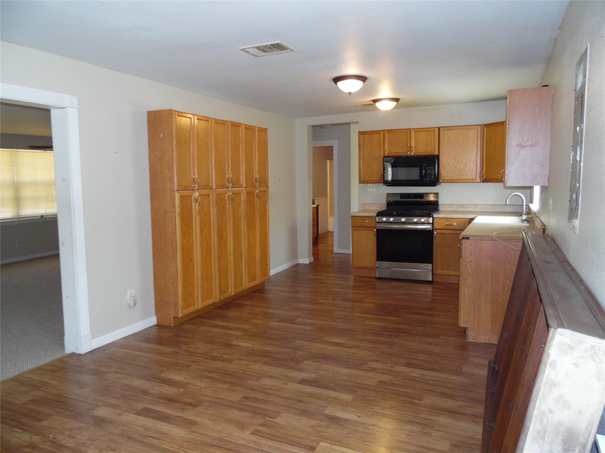 GREAT INVESTMENT PROPERTY! Located on 1/3 of an acre this home includes new carpet in Living area and all bedrooms, large living room and separate dining area great for entertaining. Large utility room located inside the home. A separate Mother-in-law suite with a full bath and kitchenette. Wheelchair ramp for easy accessibility to main home and Mother-in-law suite. Home has a metal roof and a large covered front porch with fenced front yard. Located in rear of property is a 24 x 30-foot metal building and a 12 x 24-foot wooden shed. The main home was originally 3 bedrooms. Owners removed the wall to open the space. Could be re-enclosed to make 3 bedrooms. Home is located just minutes from HWY 59 & HWY 99 for shopping, restaurants and Multiple family entertainment venues. House is sold "AS IS". Seller will not make any repairs.