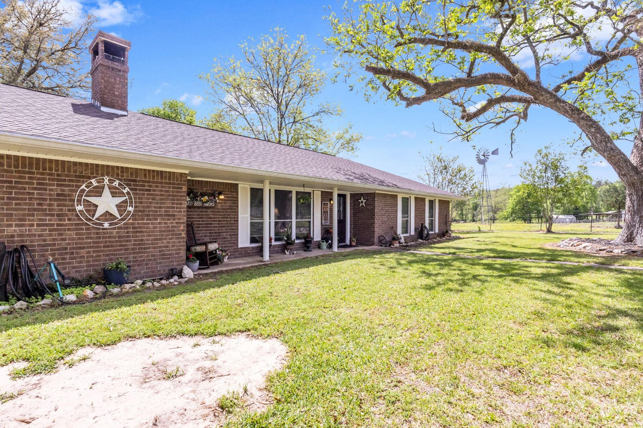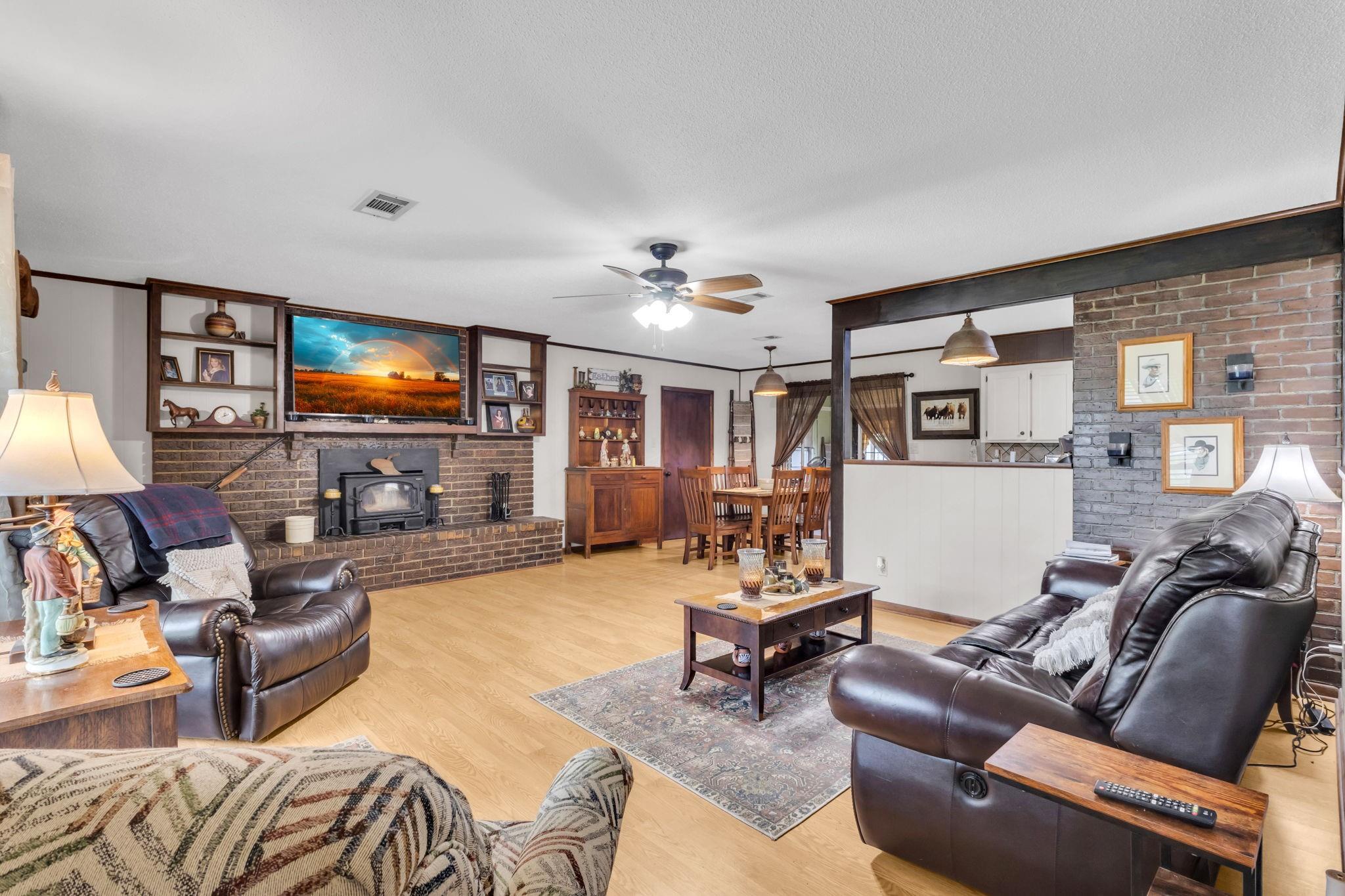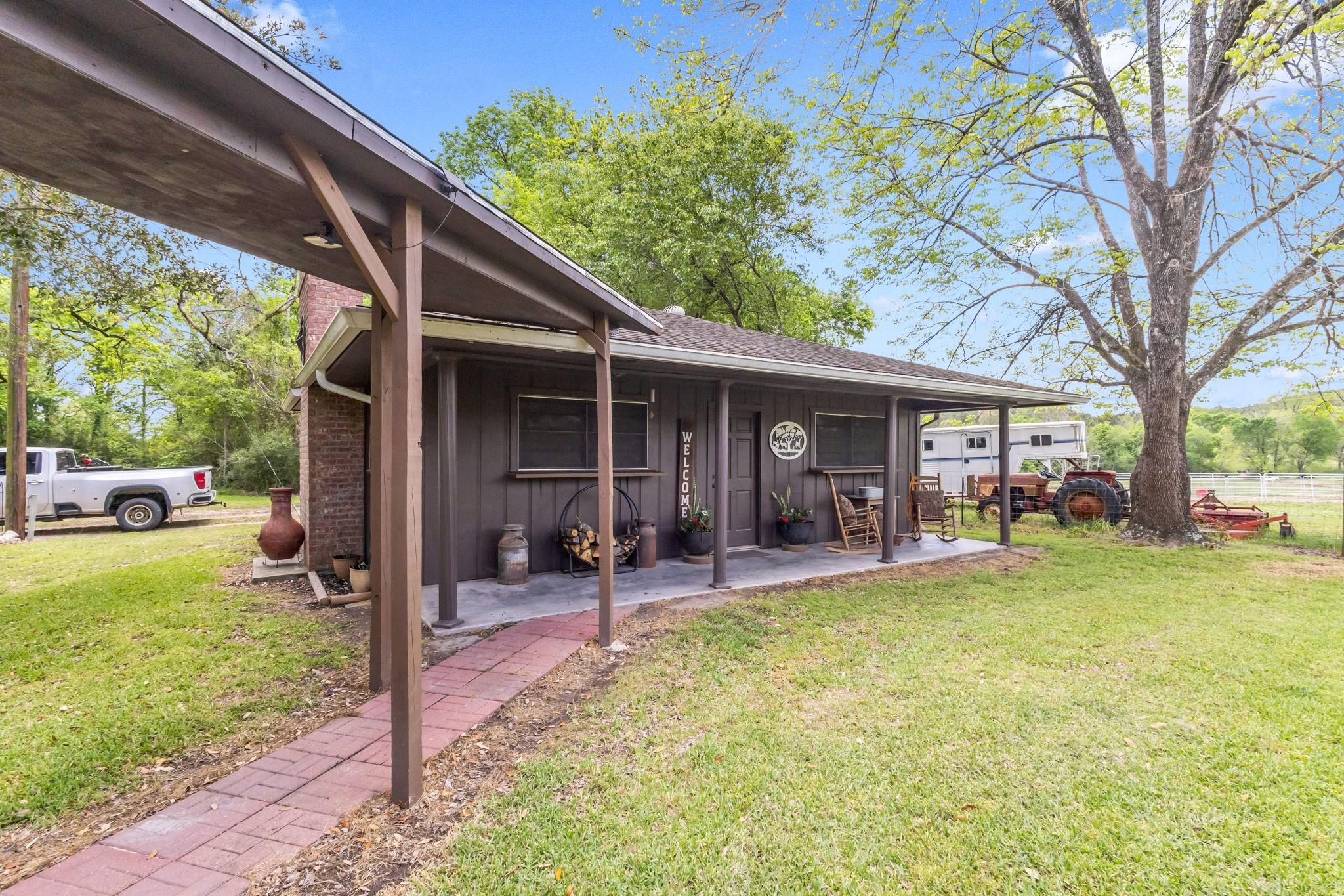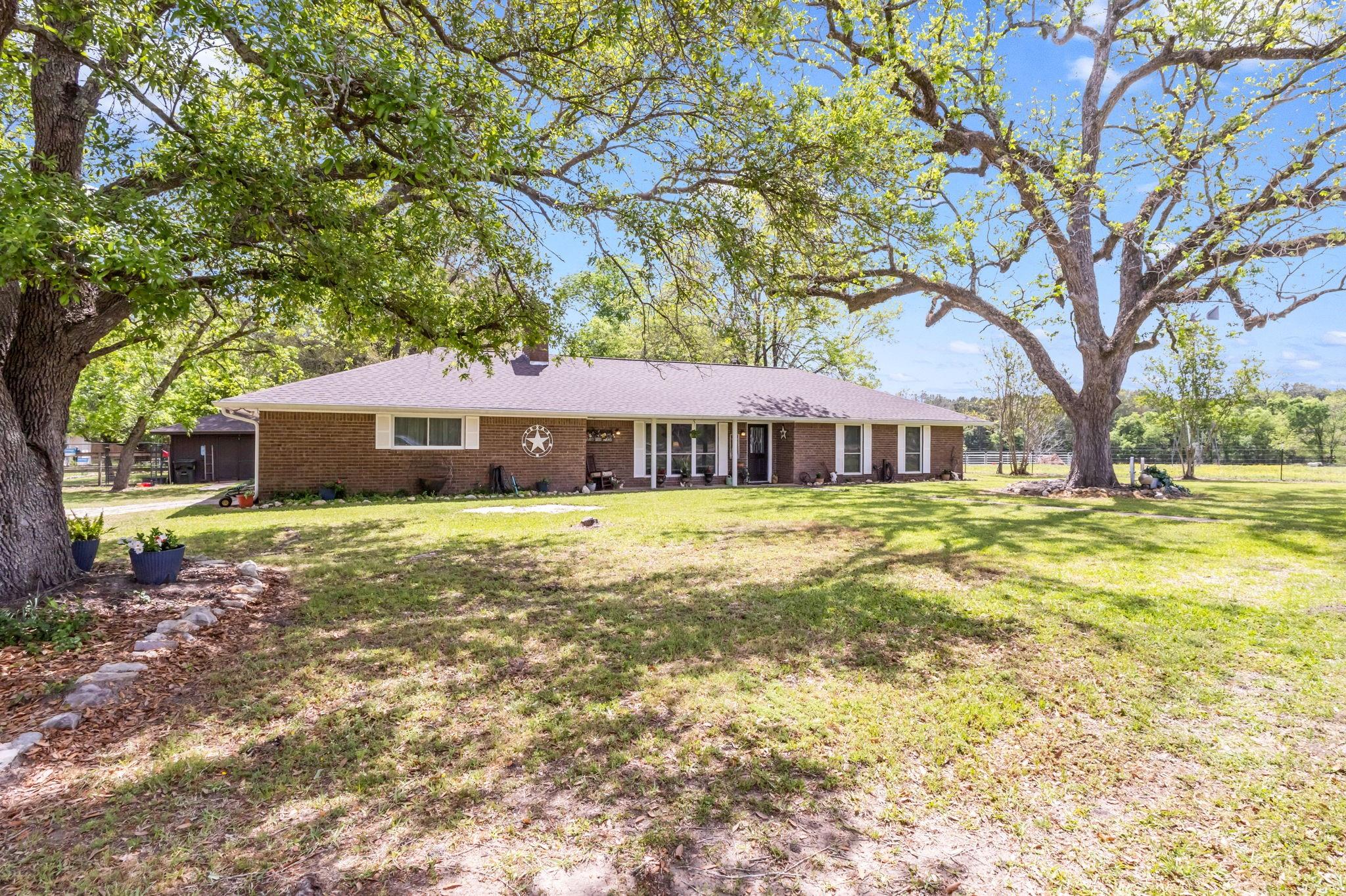 Discover the perfect blend of country living and functionality with this beautiful 3BR/2.5BA brick home on 5+/- unrestricted acres complete with a charming 1BR/1BA guest home! The main residence offers an inviting open-concept floor plan featuring abundant storage, a spacious kitchen open to the dining and living areas, cozy fireplace, heated and cooled sun porch, and 2-car garage with additional storage. The guest home is ideal for multi-generational living, guests, or income-producing potential, offering its own kitchen, living space with fireplace, and private rear entrance. Outdoors, the property is fully equipped for your rural lifestyle with improved pasture, two spring-fed ponds, horse stables with automatic water troughs, tack room, equipment storage, and ample room for horses or livestock. Whether you're seeking a homestead, mini ranch, or income-producing retreat, this versatile property offers endless possibilities with the freedom of unrestricted acreage!