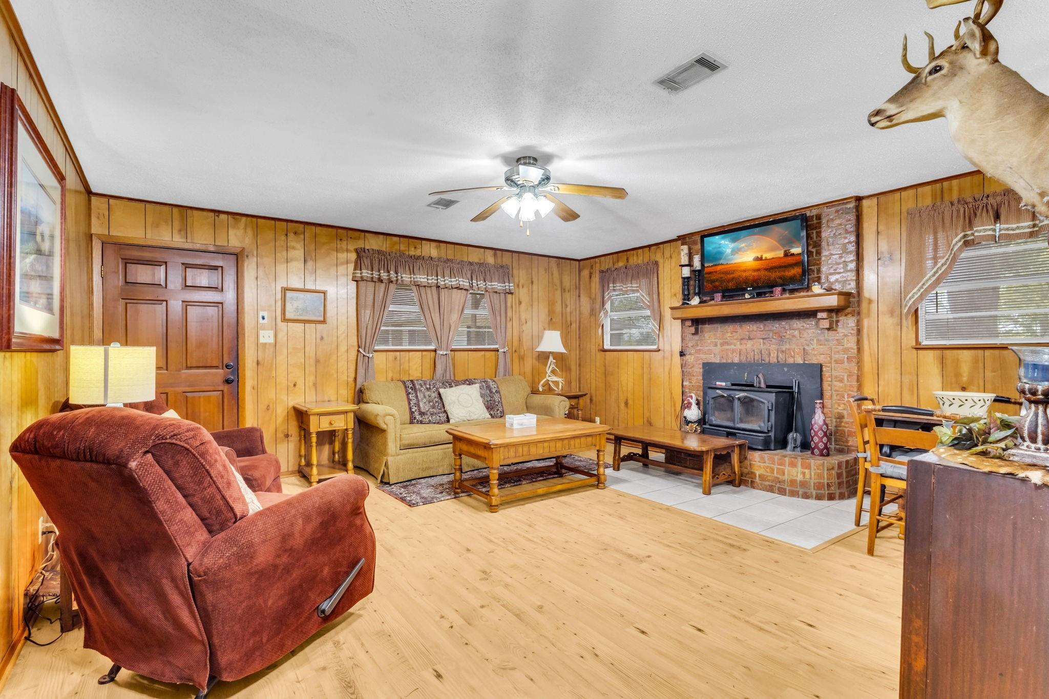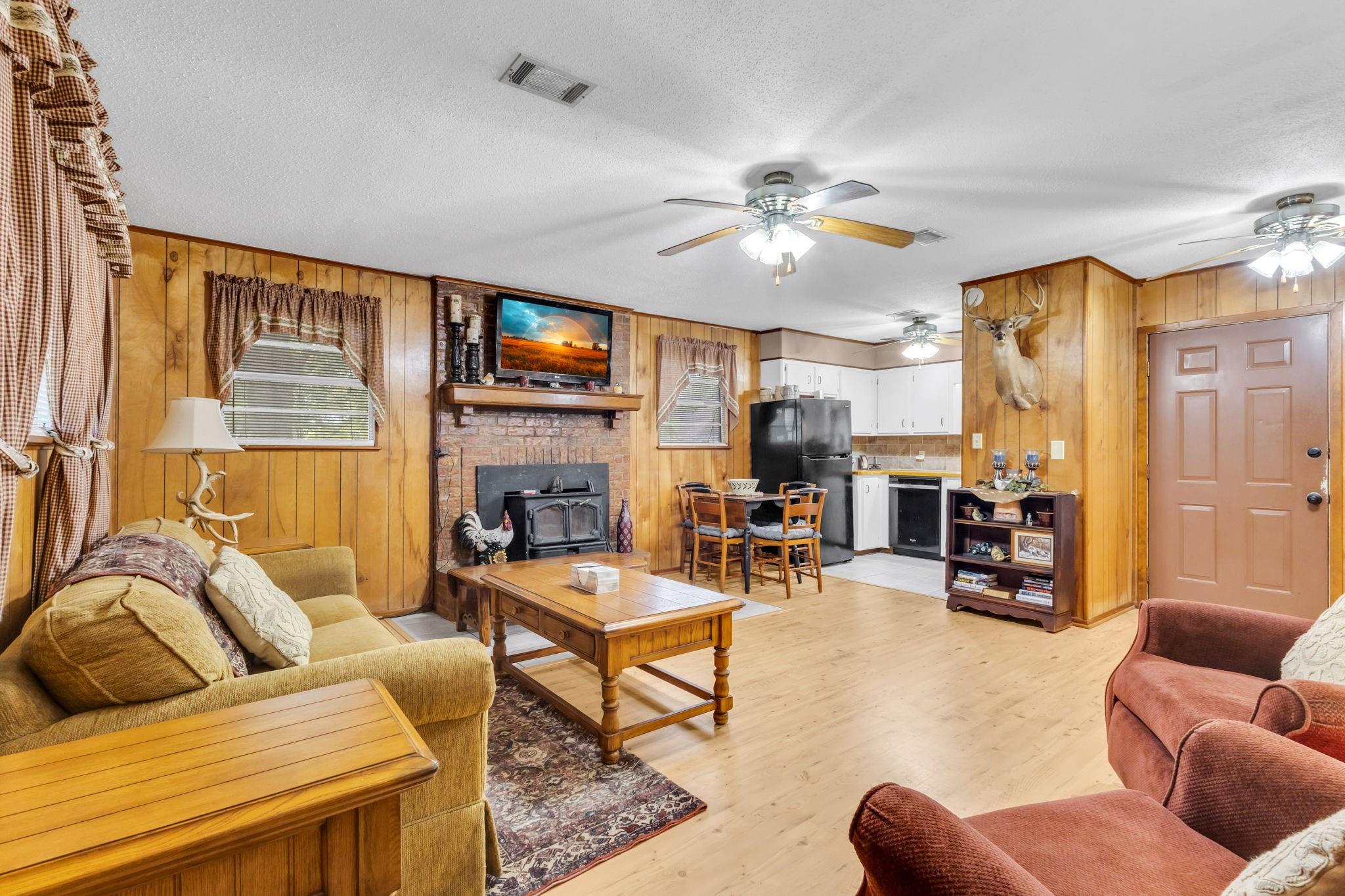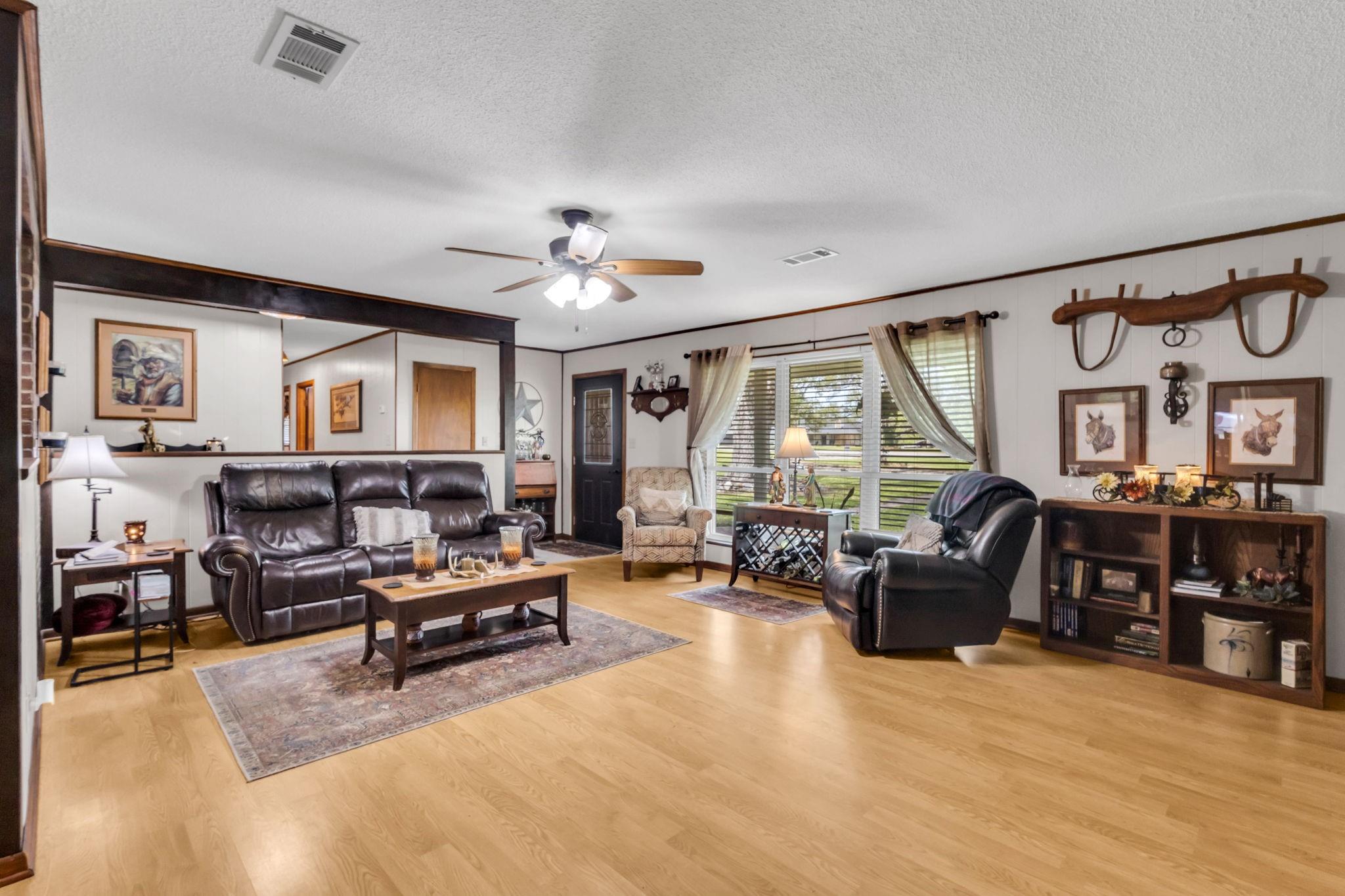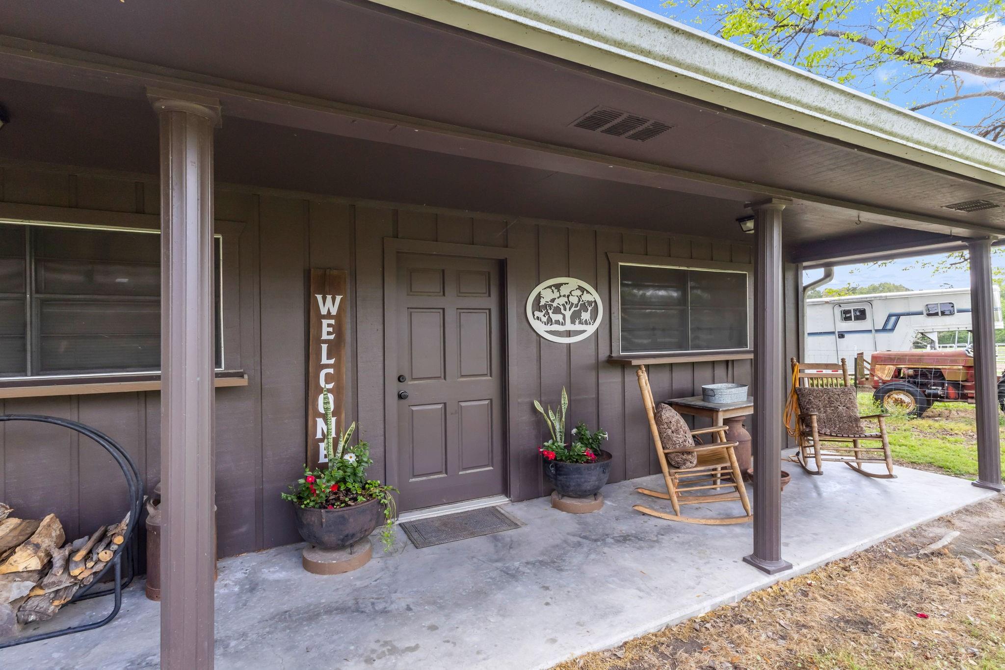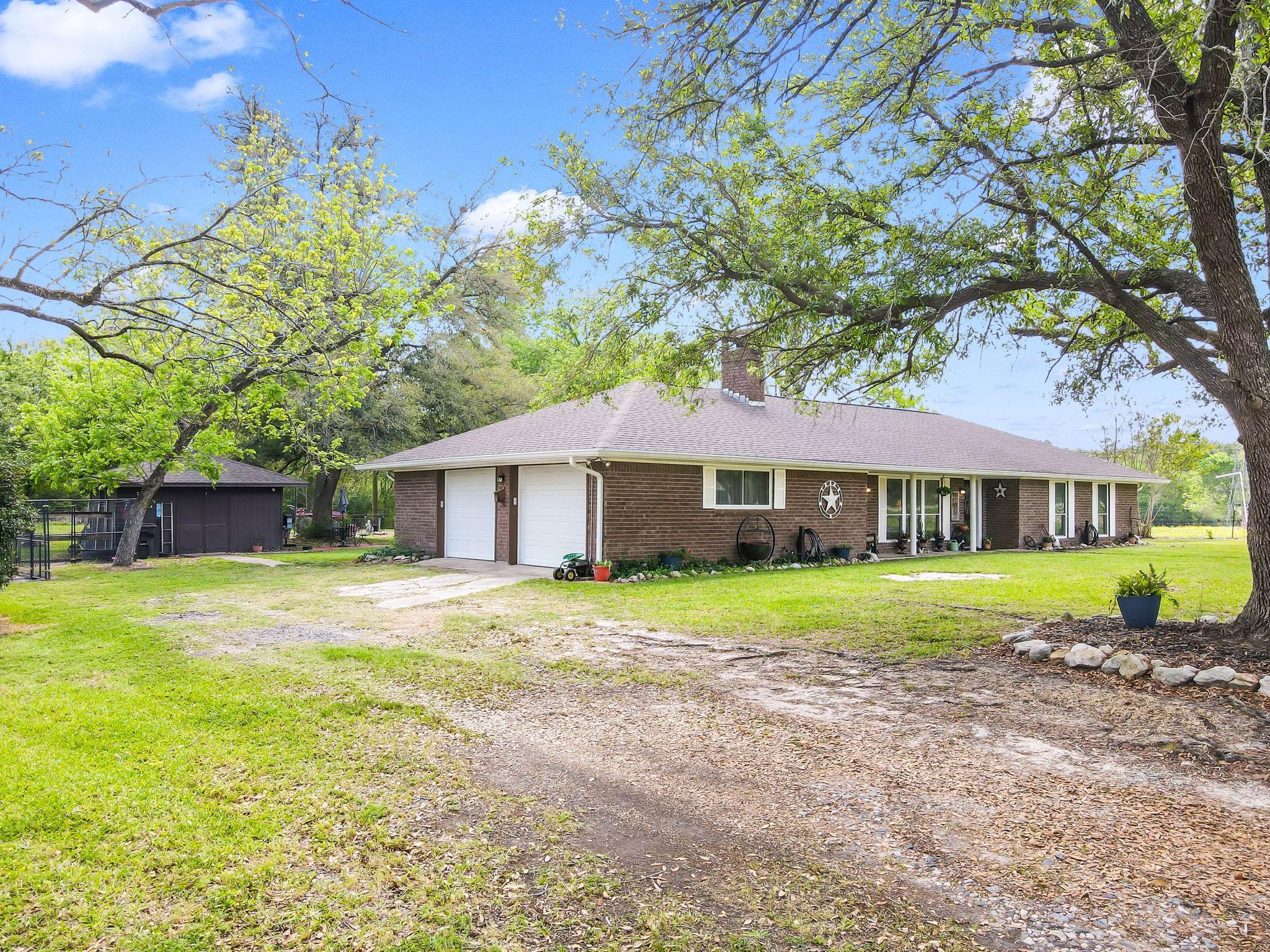 Discover the perfect blend of country living and functionality with this beautiful 3BR/2.5BA brick home on 5+/- unrestricted acres complete with a charming 1BR/1BA guest home! The main residence offers an inviting open-concept floor plan featuring abundant storage, a spacious kitchen open to the dining and living areas, cozy fireplace, heated and cooled sun porch, and 2-car garage with additional storage. The guest home is ideal for multi-generational living, guests, or income-producing potential, offering its own kitchen, living space with fireplace, and private rear entrance. Outdoors, the property is fully equipped for your rural lifestyle with improved pasture, two spring-fed ponds, horse stables with automatic water troughs, tack room, equipment storage, and ample room for horses or livestock. Whether you're seeking a homestead, mini ranch, or income-producing retreat, this versatile property offers endless possibilities with the freedom of unrestricted acreage!