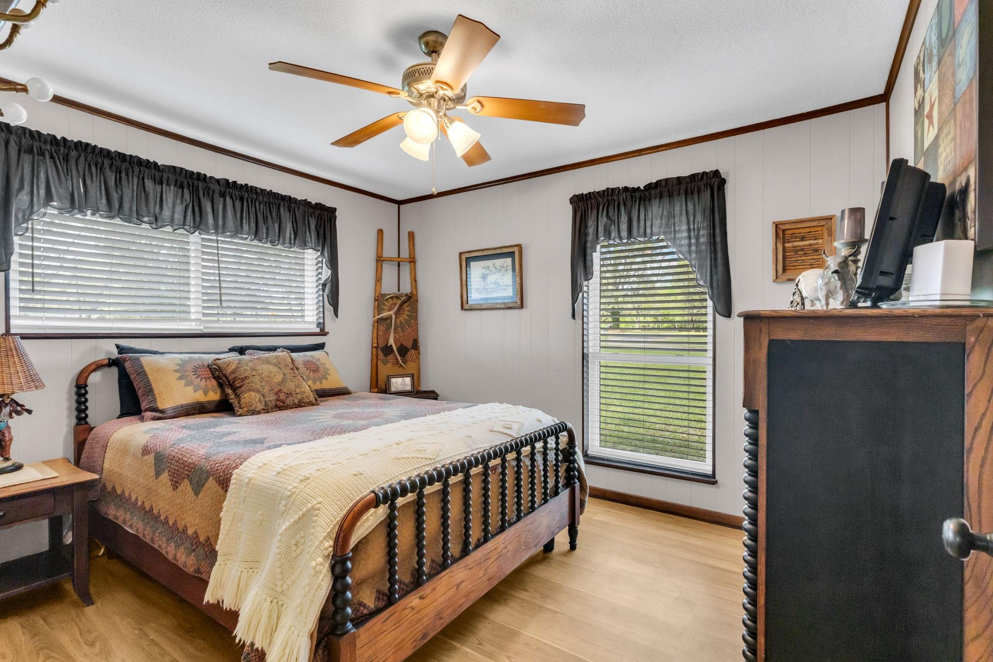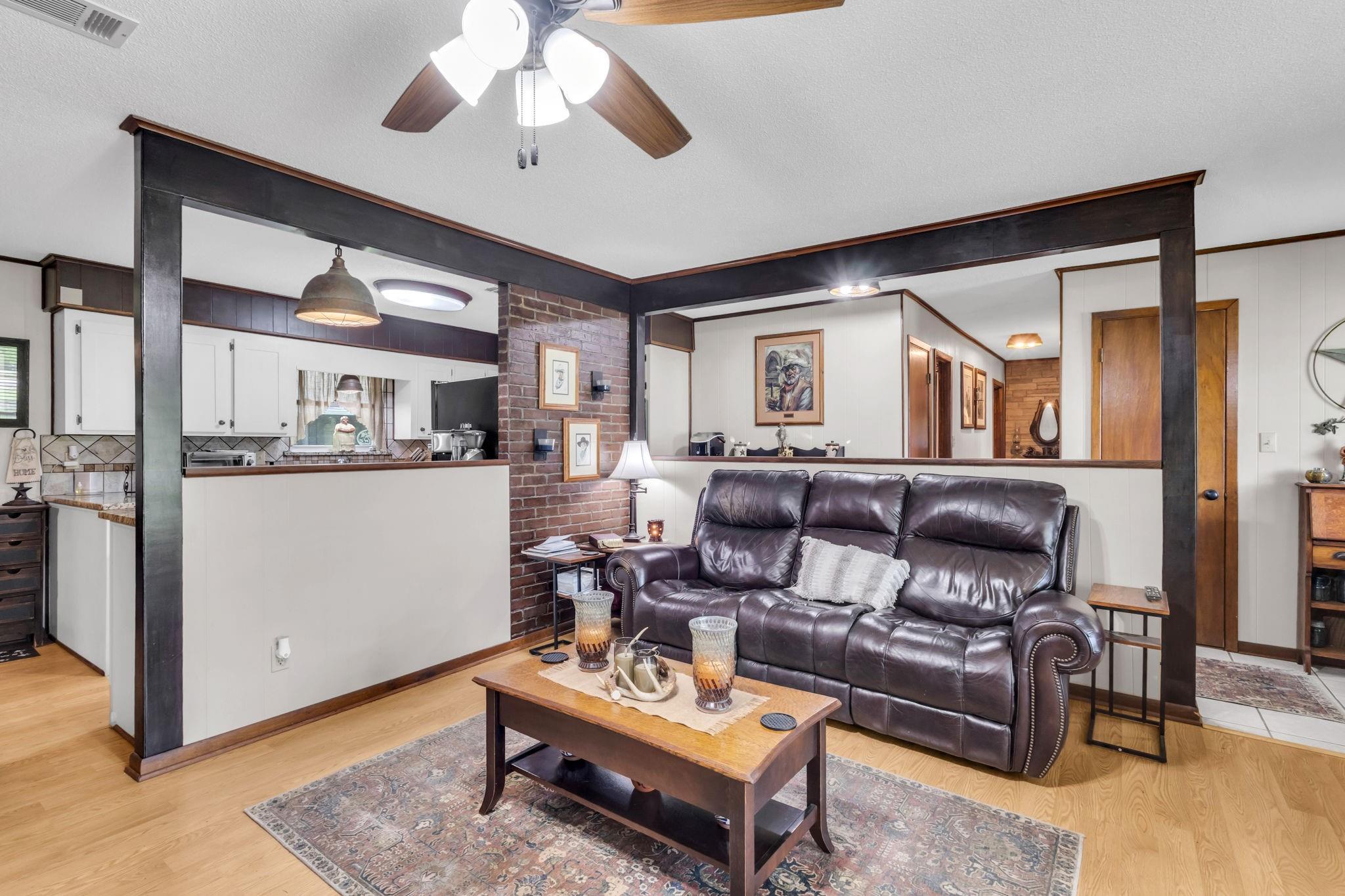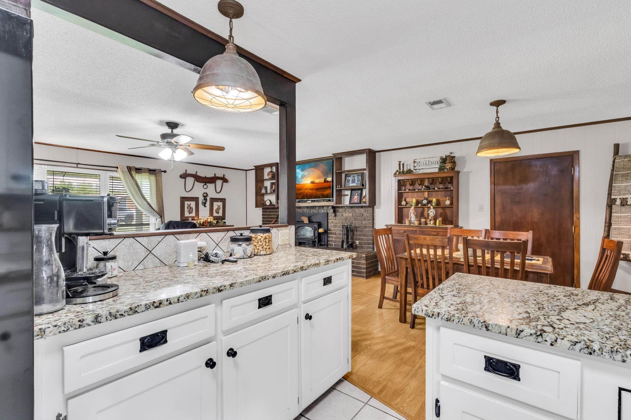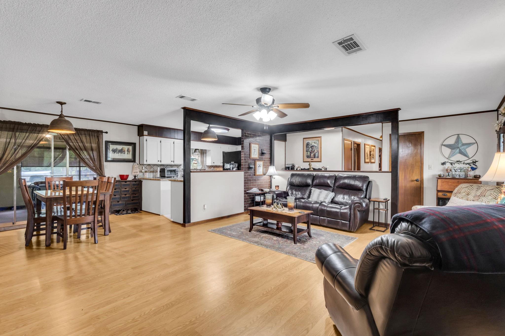 Discover the perfect blend of country living and functionality with this beautiful 3BR/2.5BA brick home on 5+/- unrestricted acres complete with a charming 1BR/1BA guest home! The main residence offers an inviting open-concept floor plan featuring abundant storage, a spacious kitchen open to the dining and living areas, cozy fireplace, heated and cooled sun porch, and 2-car garage with additional storage. The guest home is ideal for multi-generational living, guests, or income-producing potential, offering its own kitchen, living space with fireplace, and private rear entrance. Outdoors, the property is fully equipped for your rural lifestyle with improved pasture, two spring-fed ponds, horse stables with automatic water troughs, tack room, equipment storage, and ample room for horses or livestock. Whether you're seeking a homestead, mini ranch, or income-producing retreat, this versatile property offers endless possibilities with the freedom of unrestricted acreage!
