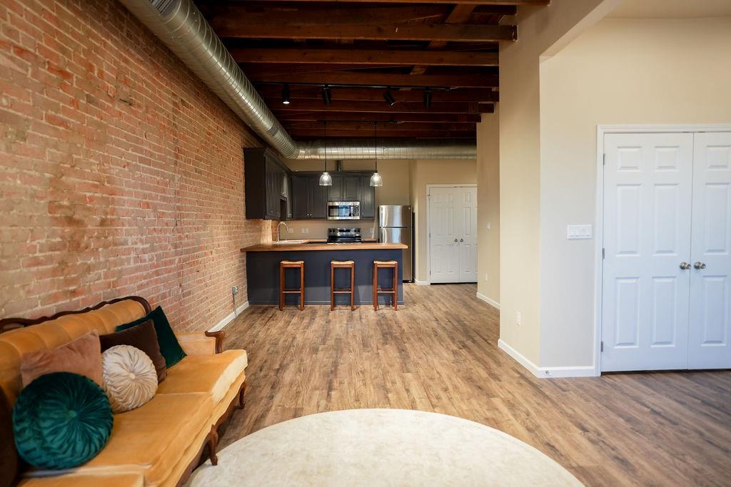 /monthStudio Loft Apartment / Private Office – Recently Renovated! Step into a beautifully renovated studio loft that blends historic character with modern sophistication. This posh, flexible space is ideal for stylish residential living or as a refined private professional space. Featuring exposed brick walls, warm wood ceilings, and an open-concept layout, the loft offers a bright and inviting atmosphere with large windows that bring in abundant natural light. The recent renovation highlights clean finishes while preserving the authentic loft aesthetic. Located in the downtown district, the property offers exceptional walkability to shops, restaurants, and local amenities, perfect for both convenient living and professional use. All appliances are included for convenience, making the space move-in ready. Residents or occupants also enjoy access to a shared outdoor deck, ideal for relaxing, informal meetings, or entertaining.