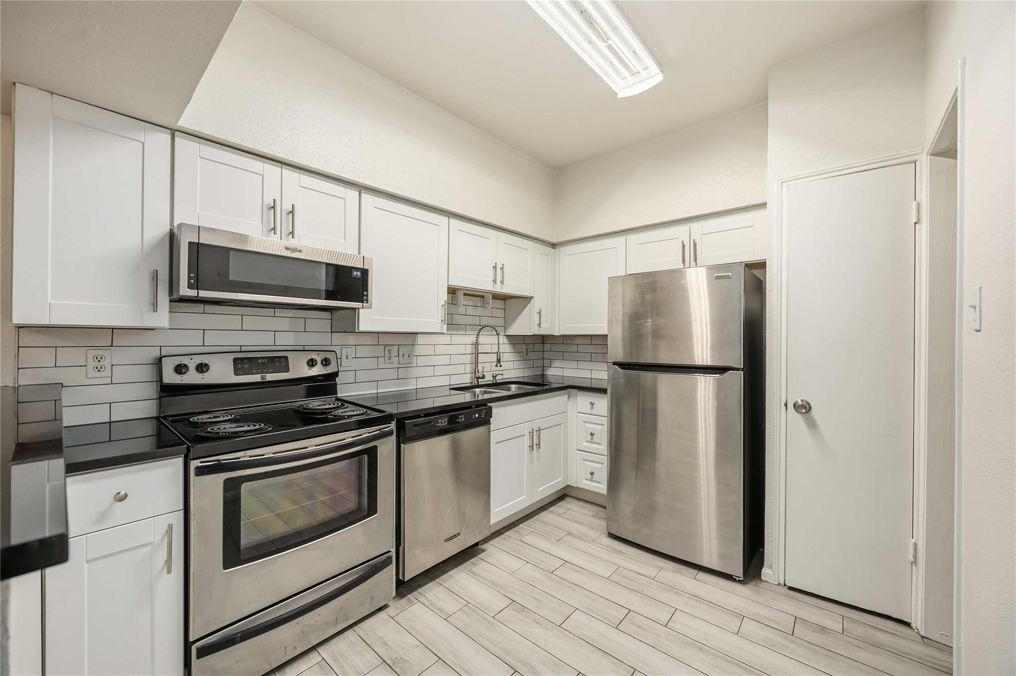 ALL UTILITIES PAID, GROUND FLOOR UNIT! Discover comfort and convenience in this charming 1-bedroom, 1-bathroom condo located in the highly sought-after Oaks of Woodlake Community. This well maintained unit features stylish black granite countertops, classic white subway tile in the kitchen, and a beautifully appointed bathroom with white granite and dual sinks. Recent upgrades include Fresh Paint, AC airduct recently cleaned, brand-new ceiling fan in the bedroom and new blinds, enhancing both comfort and style. The AC unit was replaced in 2021, providing added peace of mind. All appliances, including the refrigerator, washer, and dryer are included, making this home truly move-in ready. Conveniently located near Memorial, City Centre, Energy Corridor, and Galleria. Whether you’re a first-time buyer, downsizing, or seeking an investment opportunity, this condo offers exceptional value in a prime location. Unit being sold As-Is.
