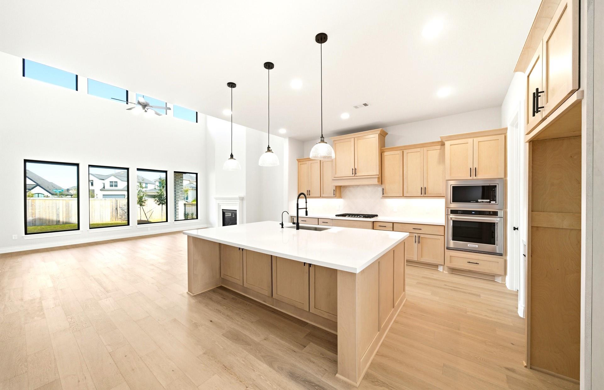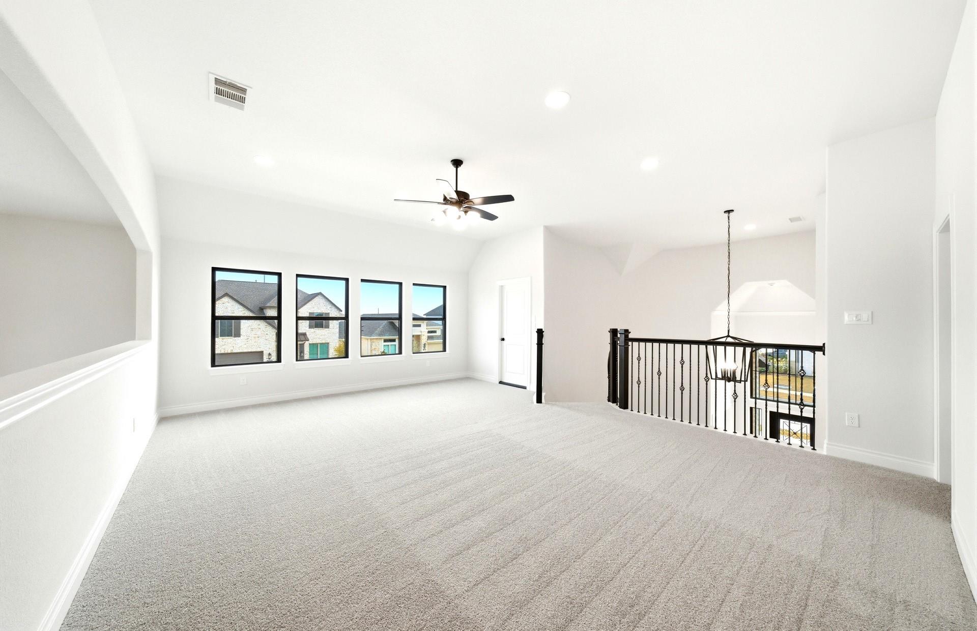 2-story floorplan features an extended entry with 21’ ceilings that leads you into the open concept kitchen, dining, and family rooms that is flooded with natural light from floor to ceiling windows in the family room. The centrally located kitchen features 42” cabinets and an oversized island with high-bar seating. A large staircase leads you to an expansive game room as well as 3 bedrooms and 2 full baths. The master bath includes a freestanding tub, separate shower, His and Hers vanities, and an oversized closet. Home sits on a corner lot and the 24'x10' covered patio overlooks a spacious backyard. Home comes with the industry leading 2 year workmanship warranty and 10 year structural.