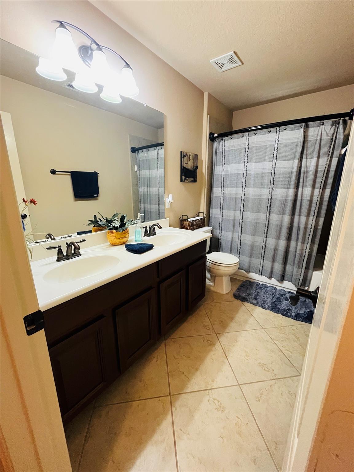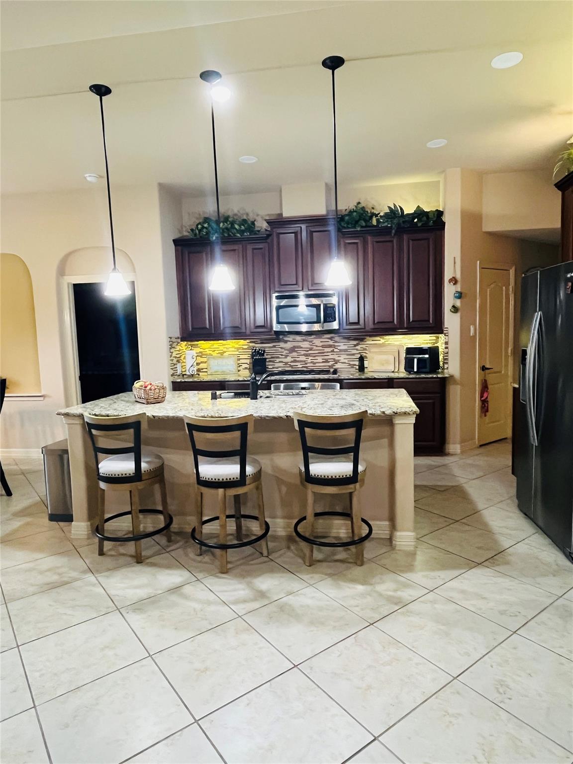 Welcome to this stunning home, which showcases exceptional upgrades and thoughtful design throughout. The open-concept kitchen features a large island, granite countertops, high ceilings, enhanced lighting, and expansive tile flooring, perfect for both everyday living and entertaining. Inside, you’ll find a spacious game room complete with a wet bar and half bath, perfect for gatherings. The home includes an oversized guest suite with a private bathroom, along with two additional large bedrooms that have walk-in closets. A full secondary bathroom offers double sinks for added convenience. The primary suite is a true retreat, boasting bay windows, a decorative ceiling, and a generous walk-in closet. The luxurious en-suite bathroom includes a walk-in shower with a tiled seat, fixtures, granite countertops, and a deep oval soaking tub. Step outside to a beautiful covered patio with brick flooring, a sprinkler system, and designed landscaping, ideal for relaxing or hosting guests.