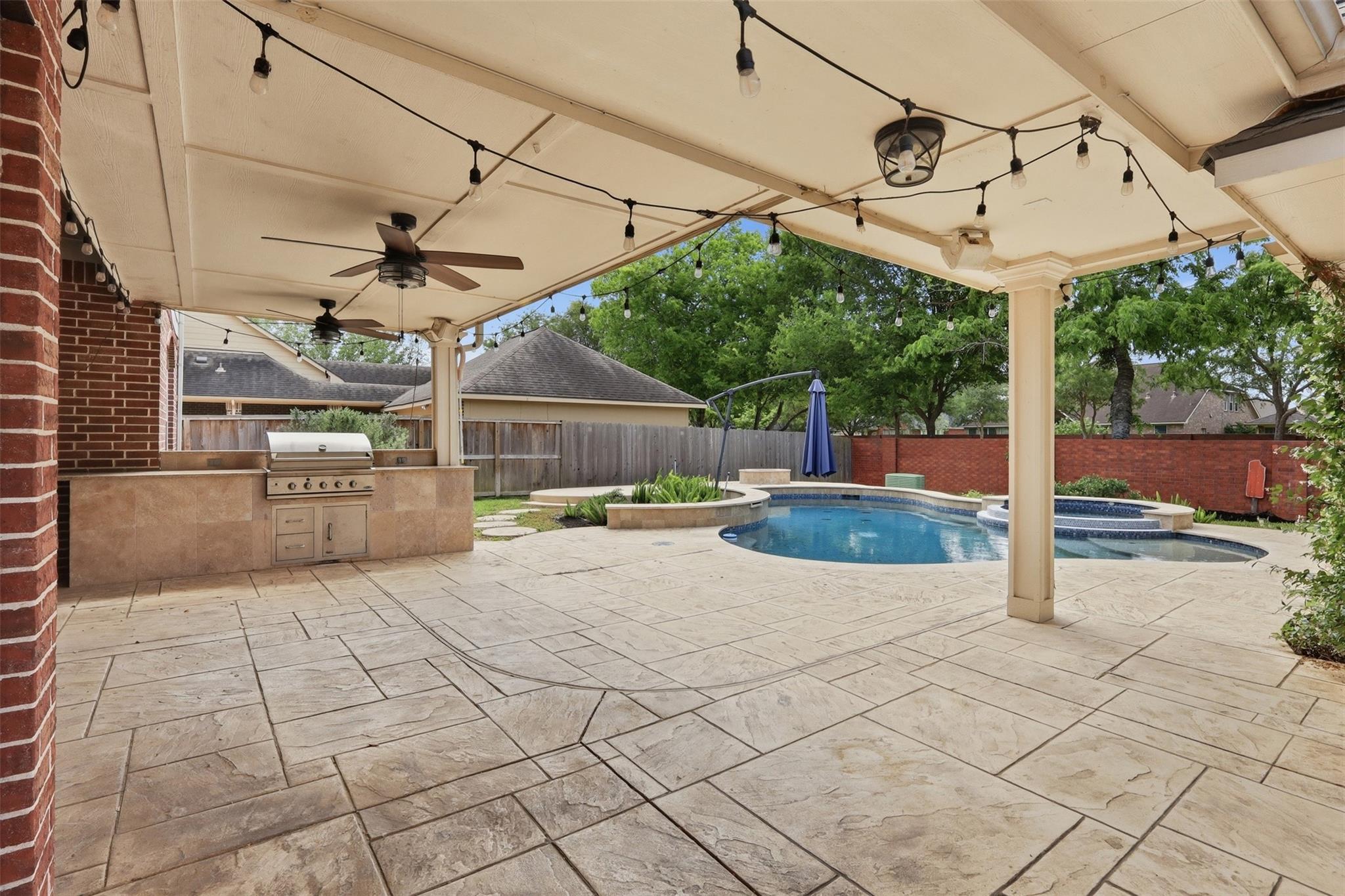 Looking for a beautifully maintained two-story home in Greatwood? This is the one! Inviting curb appeal welcomes you into an open, easy-flow floor plan with soaring ceilings, a striking cast stone fireplace and plantation shutters throughout. Upgraded hardwood floors in the private home office and dining room add warmth, while the updated primary bath offers a spa like retreat. The kitchen offers granite counter tops and stainless steel appliances. Upstairs you will find spacious bedrooms with walk-in closets and a large game room. Step outside to a private backyard with no rear neighbors, complete with a pool and spa, covered stamped concrete patio, summer kitchen and gas fire pit perfect for entertaining! Additional upgrades include mosquito misting system and WiFi-controlled irrigation. Short walk to the elementary school! Living in Greatwood offers a strong sense of community. Enjoy access to top-rated schools, multiple pools, parks, walking trails, and the Greatwood Golf Club!