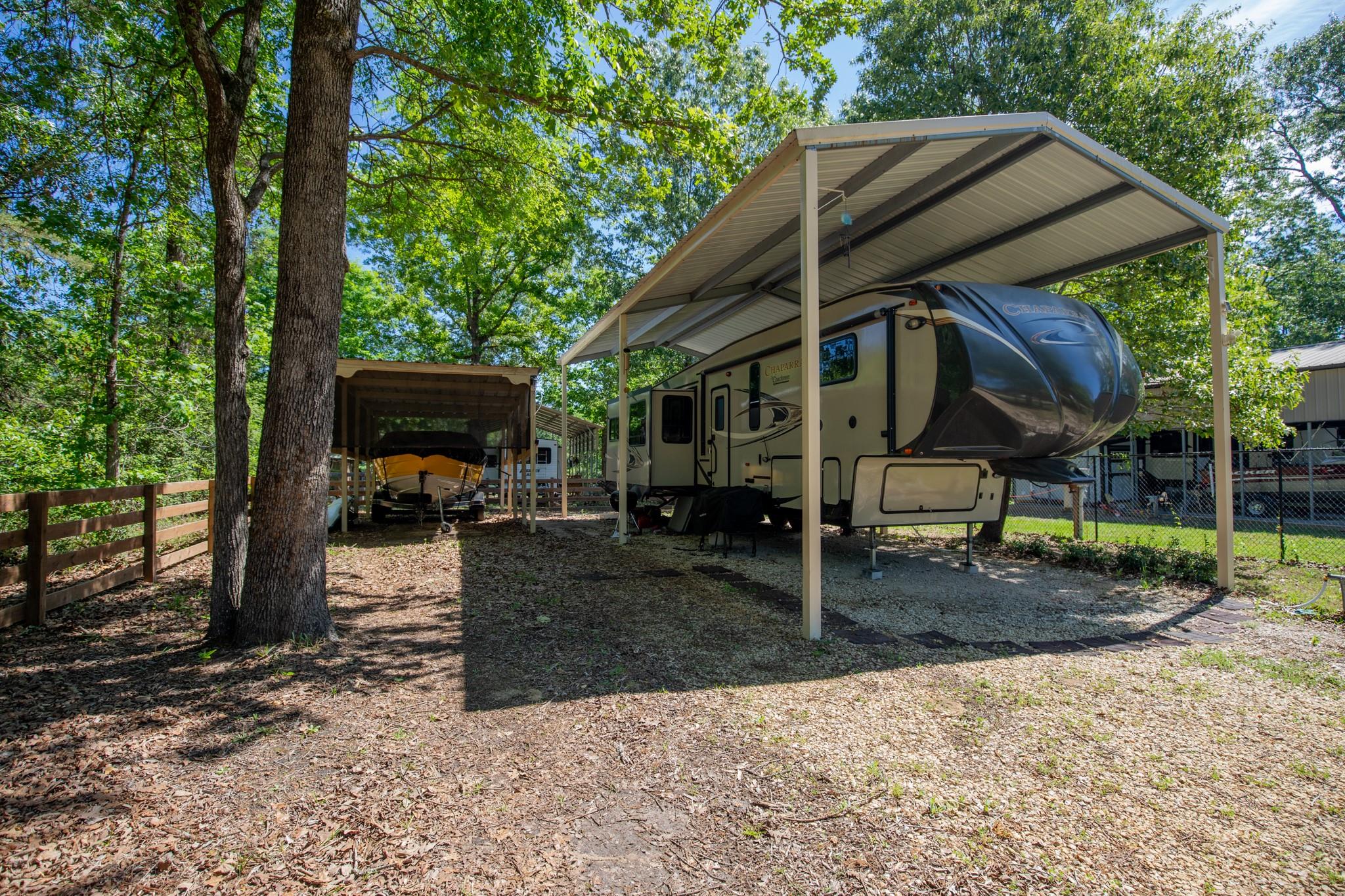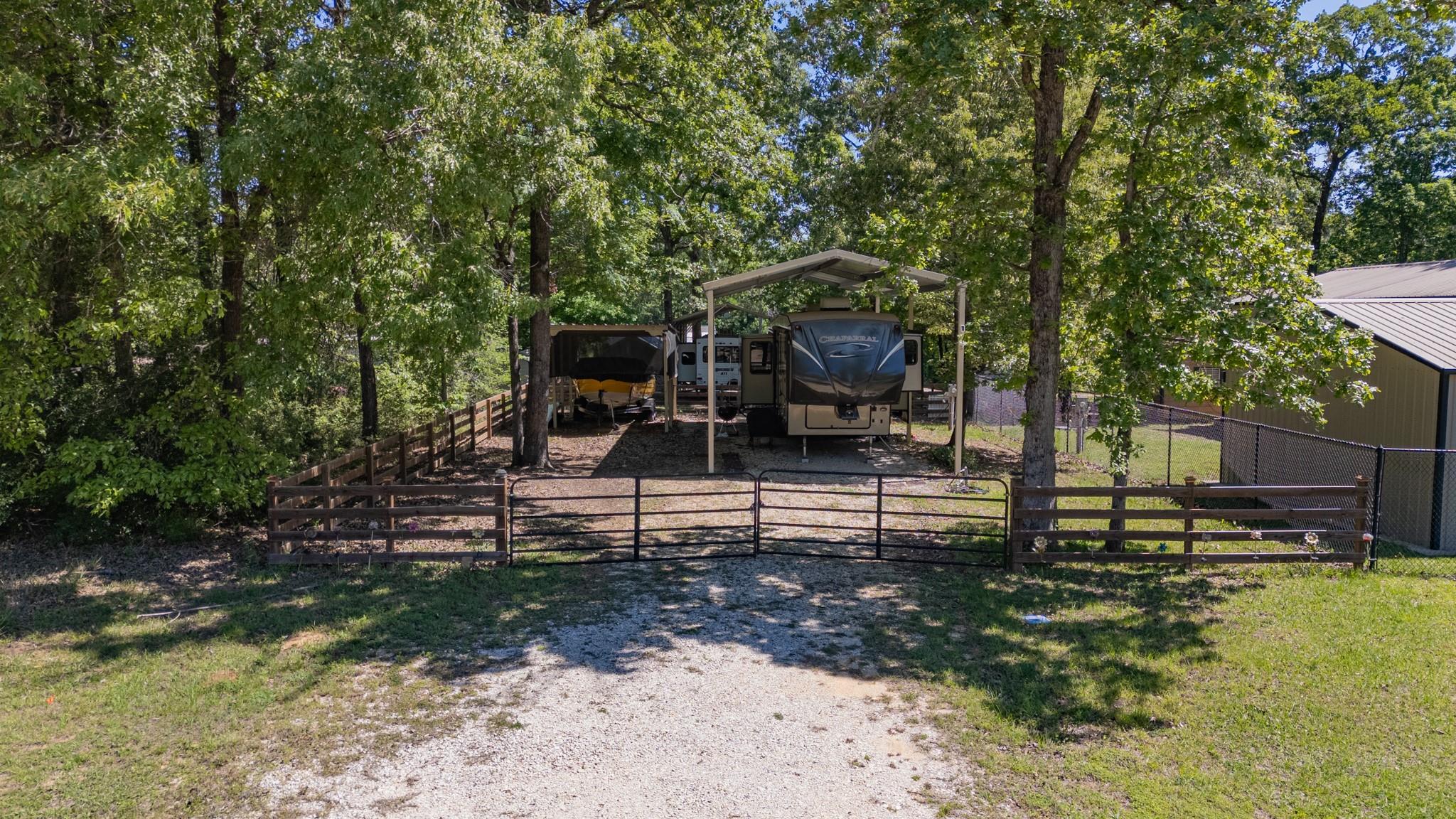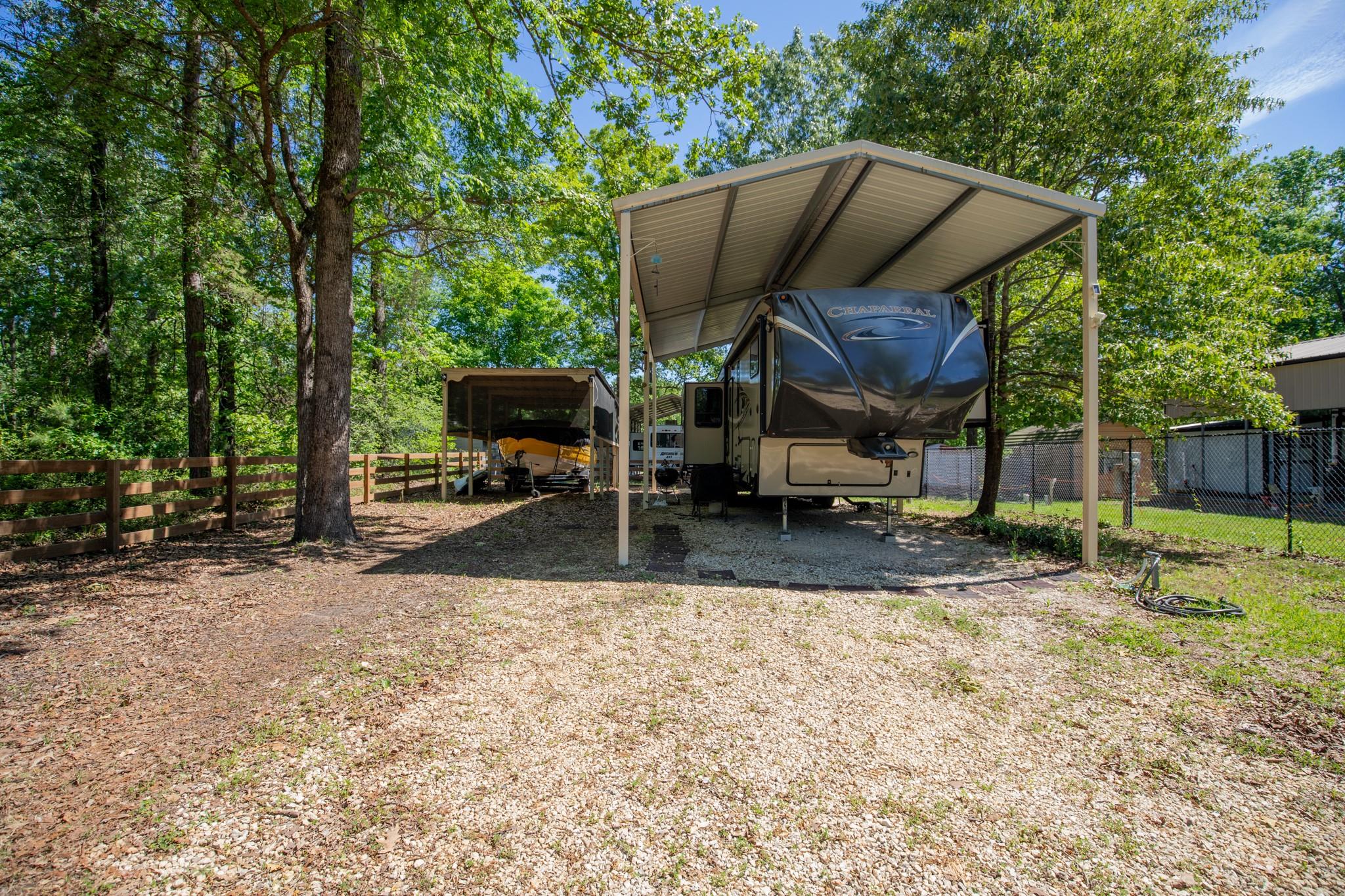 This lot is ready for a weekend of fun with your RV and boat! Electric, water, and sewer are in place. An 18X40 awning is ready for your RV, along with a 12X24 awning for your boat or golf cart. The lot is completely fenced with an extra-large double iron gate. There is plenty of shade, along with a limestone-based driveway. The gated subdivision offers a clubhouse, community pool, boat ramp, and park area. Cabins are available for rent for extra guests too!