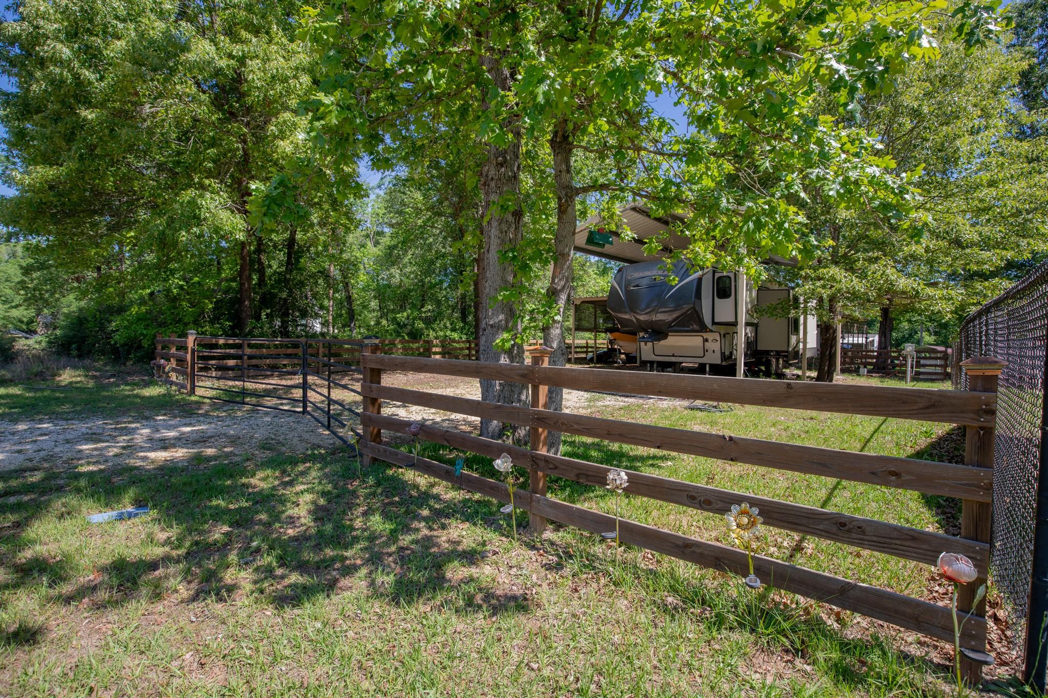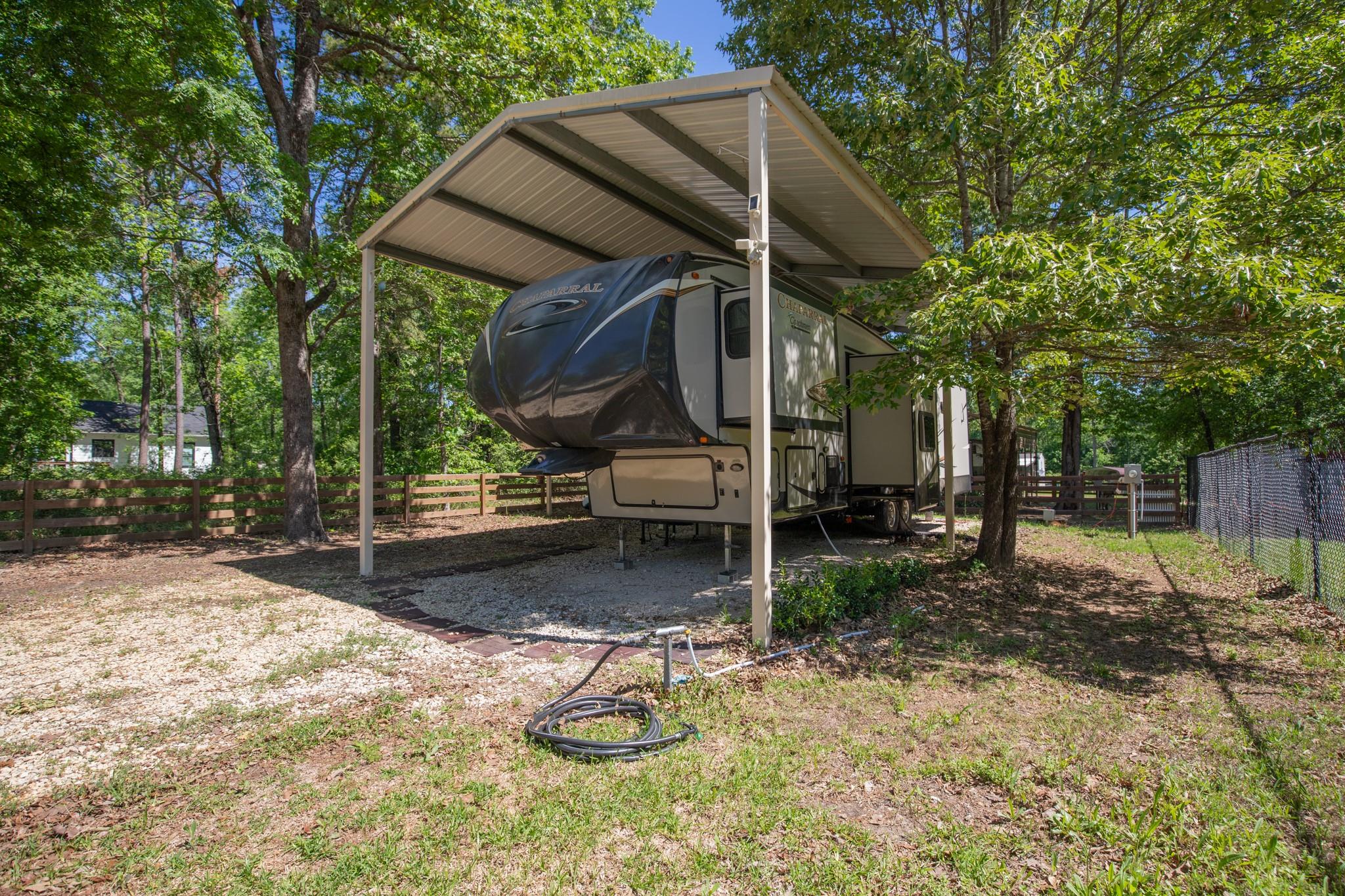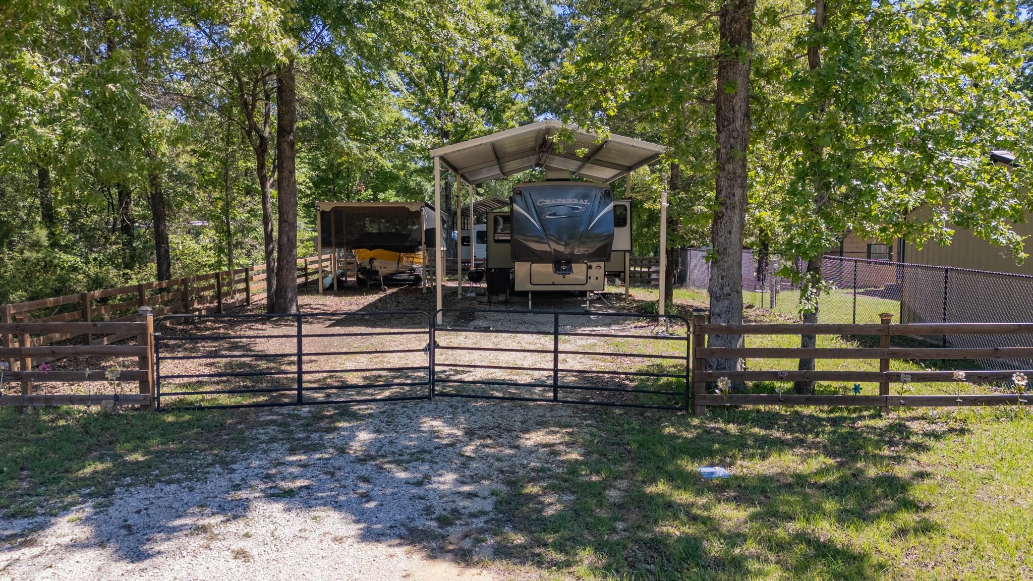 This lot is ready for a weekend of fun with your RV and boat! Electric, water, and sewer are in place. An 18X40 awning is ready for your RV, along with a 12X24 awning for your boat or golf cart. The lot is completely fenced with an extra-large double iron gate. There is plenty of shade, along with a limestone-based driveway. The gated subdivision offers a clubhouse, community pool, boat ramp, and park area. Cabins are available for rent for extra guests too!