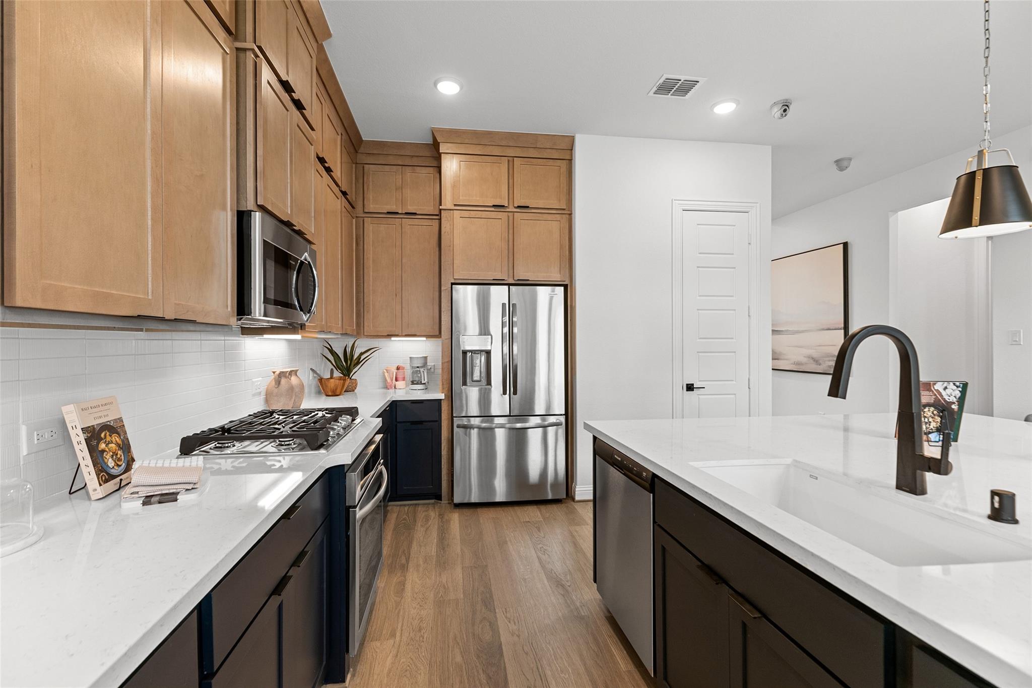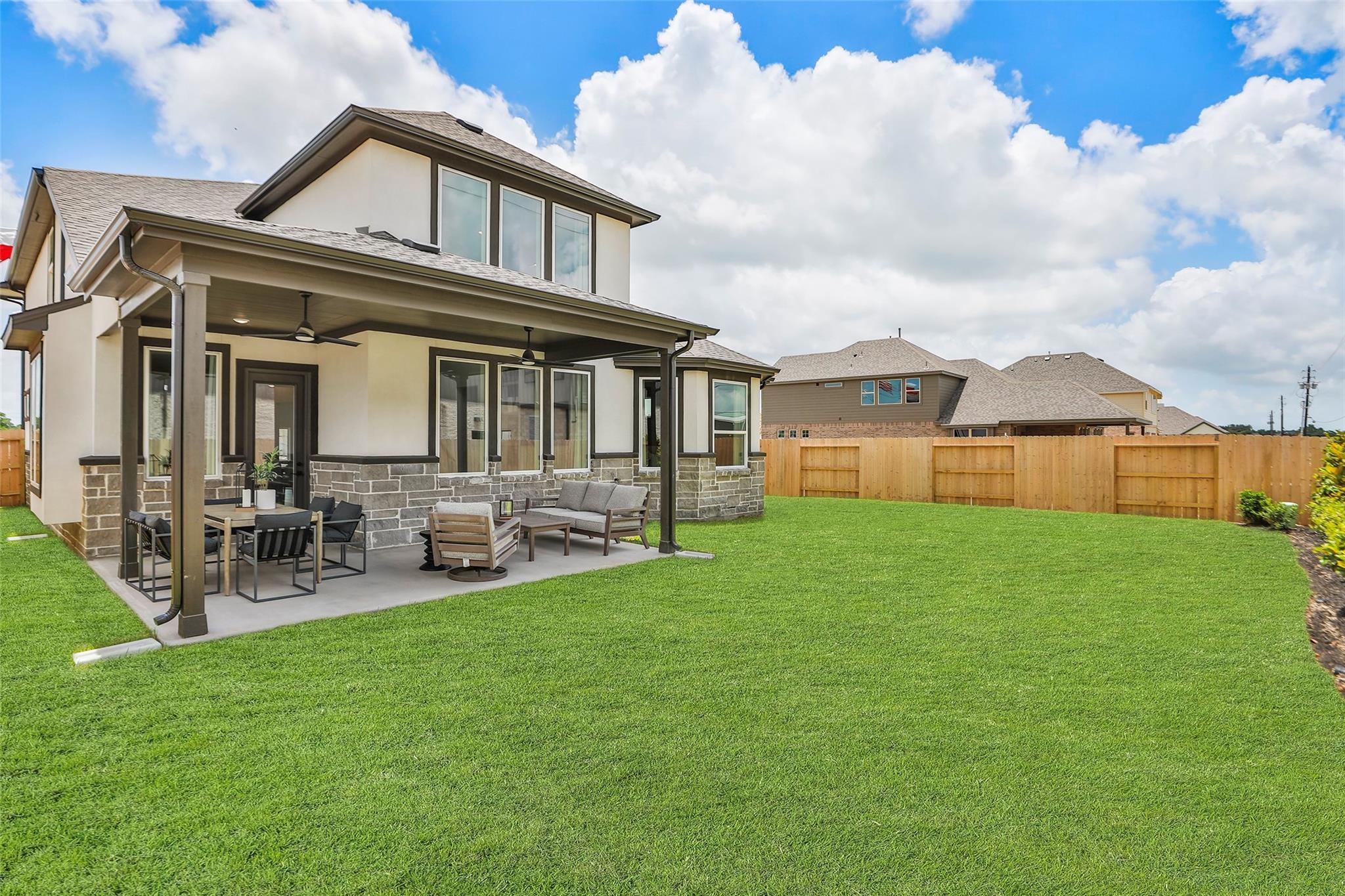 Welcome to Beamer Villas in Friendswood, TX, where modern living meets a charming, close-knit community feel. Located just minutes from Baybrook Mall, you’ll enjoy easy access to shopping, dining, and entertainment, along with neighborhood amenities like a dog park and playground for relaxed everyday living. This BEAUTIFUL former model home offers 4 bedrooms, 3.5 baths, a private study & a game room. The kitchen is designed to impress with stainless steel appliances, sleek omega stone countertops, an expansive island & stylish two-toned wood cabinetry. Fresh hardwood flooring enhances the main living areas, with tile in the wet spaces for durability. The primary suite is a true retreat, featuring an oversized closet, soaking tub, walk-in shower & dual vanities. Upstairs, all secondary bedrooms are paired with a spacious game room. Enjoy outdoor living on the extended covered patio with full sod & a built-in sprinkler system. June 2026 move-in, don’t miss your chance to call it home