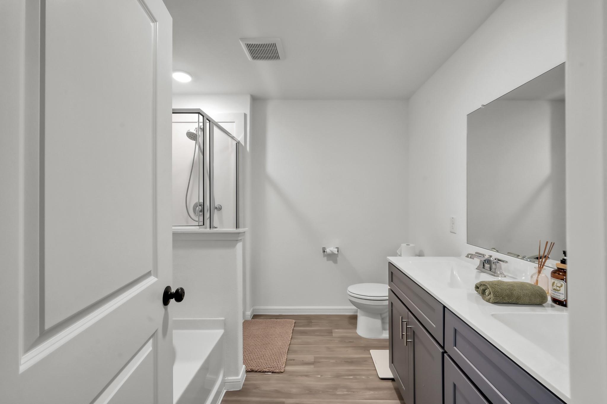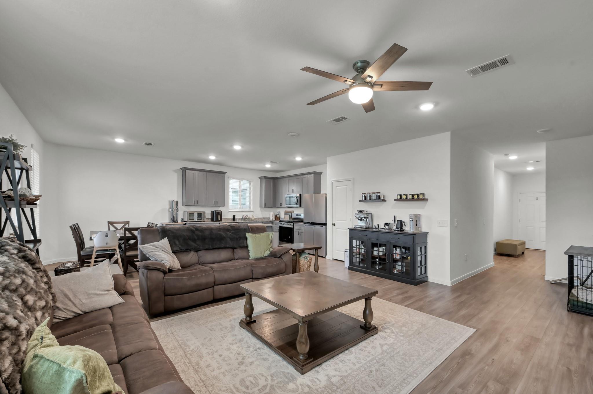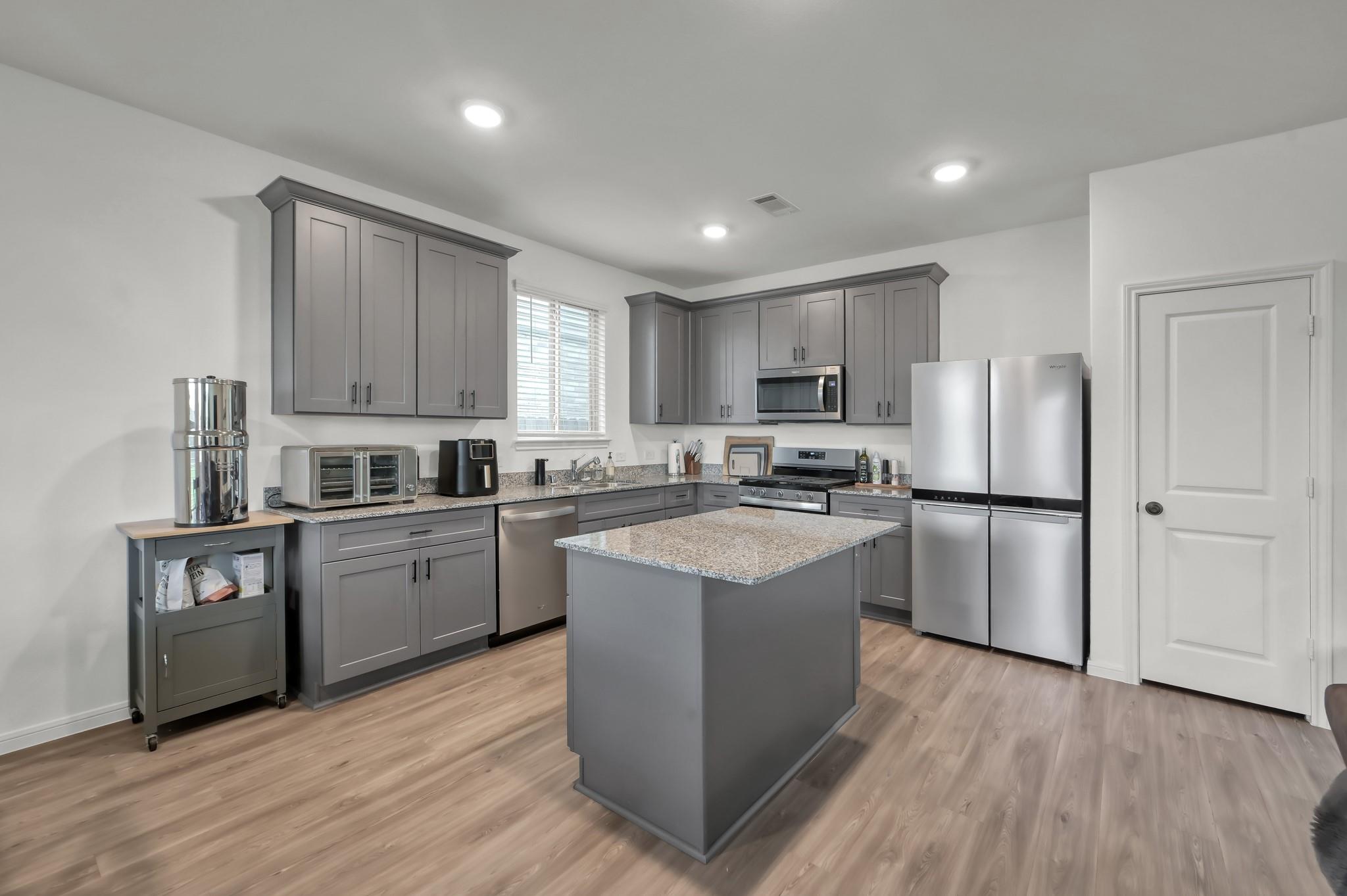 Welcome home to like-new living with rare privacy—no rear neighbors! Enjoy a covered patio and peaceful backyard setting, perfect for relaxing or entertaining. Located in Marvida with access to resort-style amenities including pools, splash pad, parks, and more. Zoned to Cypress-Fairbanks ISD with quick access to Hwy 290, Grand Parkway, shopping, and dining. Built in 2023, this 2-story home features an open-concept layout with upgraded LVP flooring throughout the main living areas. The island kitchen includes granite countertops, stainless steel appliances, and seamless flow into the living and dining spaces. Upstairs offers a spacious game room, generously sized secondary bedrooms, and a private primary suite with dual sinks, soaking tub, and separate shower. Added low-maintenance gravel landscaping and generator switch. Homes with no rear neighbors in newer communities are hard to find—schedule your showing today.