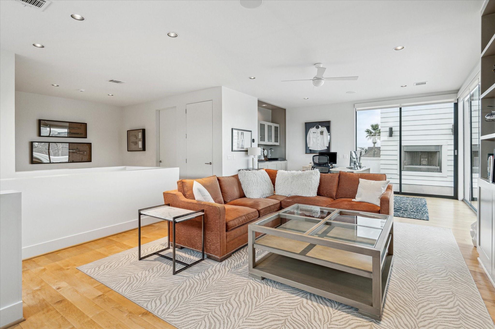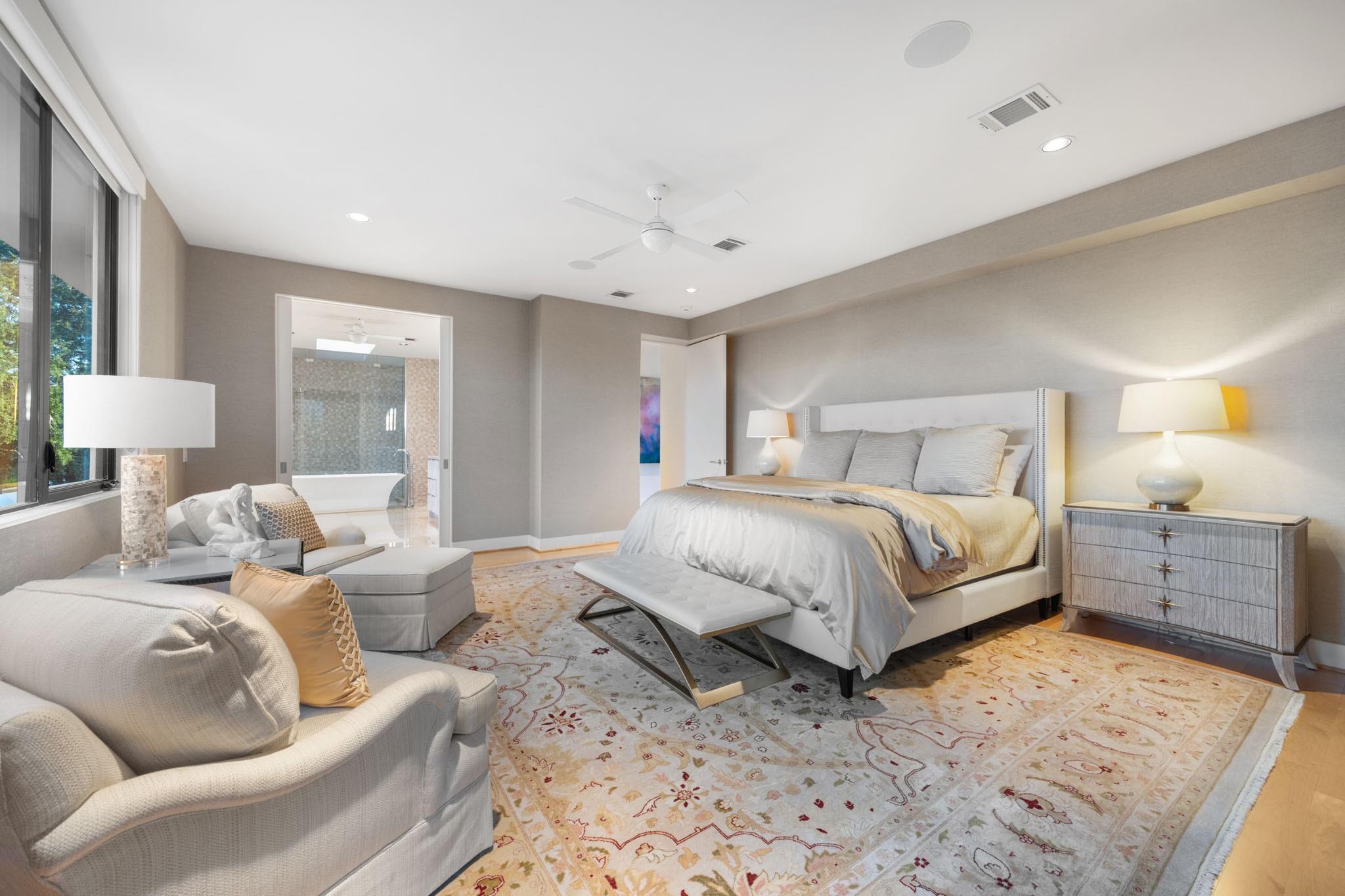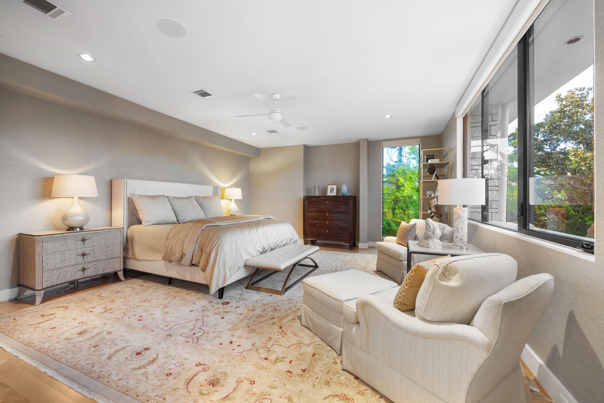 Enjoy luxury living in the heart of Houston's Galleria area. 2114 Potomac #A, nestled in an exclusive gated enclave of 3 patio style homes,offers both the privacy of a retreat and walking distance to city life.Owners purchased the home before completion and added many upgrades.Whether you need 4 bedrms or prefer a 3 bedrm layout with gamerm,office,study,this beautiful home adapts to your lifestyle with 1st flr living and elevator ready access to all 3 flrs(per builder) Front facing location provides lovely views of the private,perfectly landscaped patios and gardens- enjoyed from both formals, gathering rm and chef's kitchen.Upstairs,the primary suite is a haven of tranquililty with it's spa-inspired bath and 2 large walk-in closets. Top floor,currently used as a family rm /office has direct access to the 515 sq ft rooftop deck featuring an outdoor fireplace and awesome city views. Don't miss the pristine garage with built-in storage cabinets and premium Swisstrax system tile flooring.