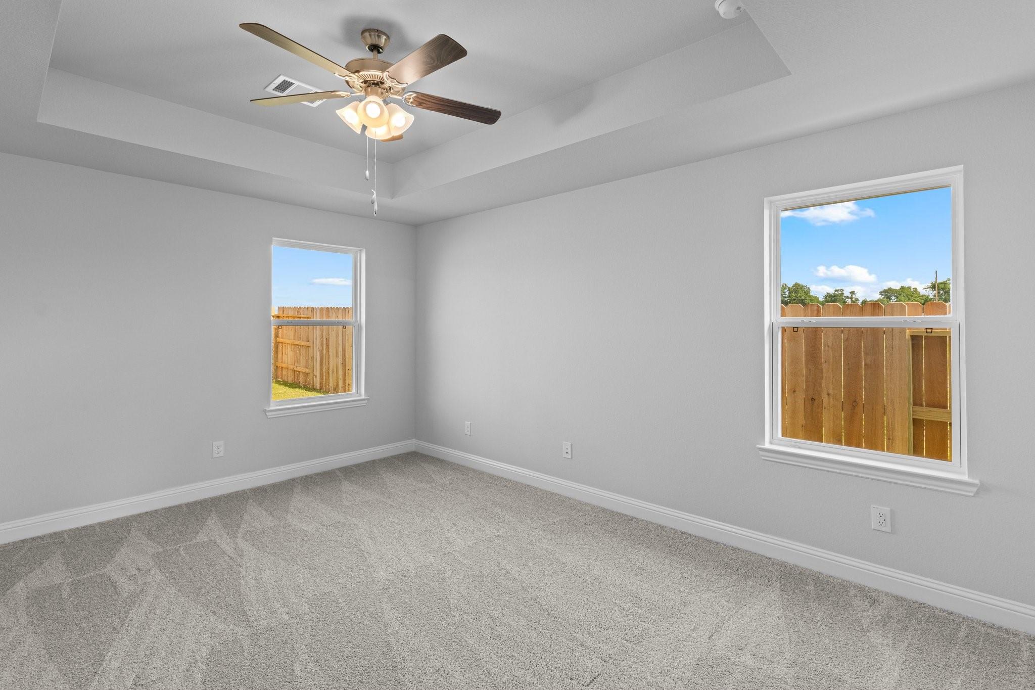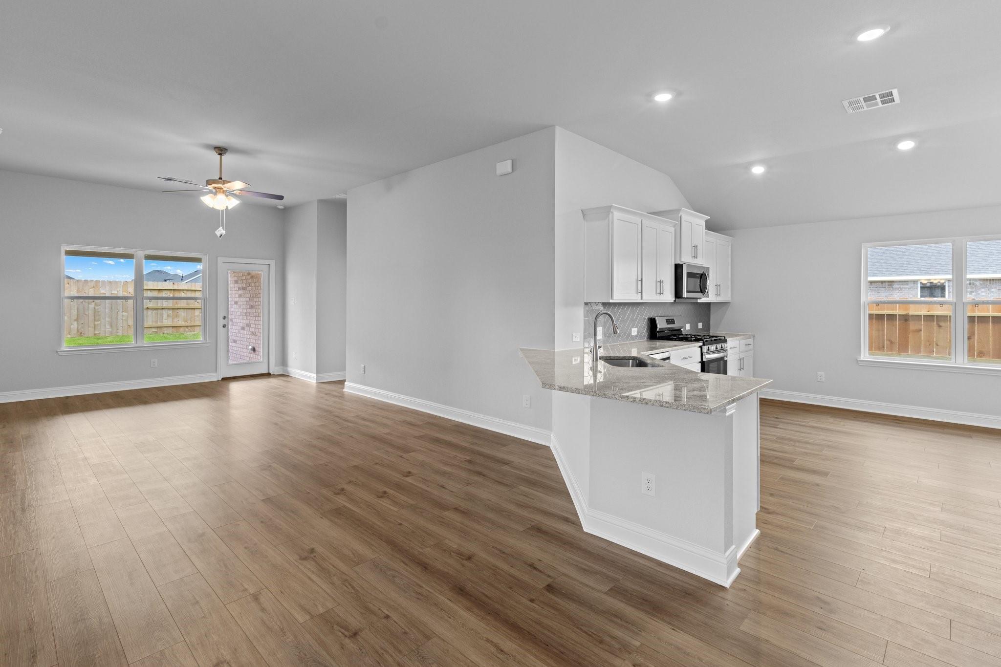 Welcome to The Suncrest! This stunning 1,820 sq ft single-story home offers 4 bedrooms, 2 bathrooms, and a 2-car garage perfectly blending comfort, functionality, and style. Enjoy L.V.P. flooring throughout, with soft 800 Dove carpet in the bedrooms. The spacious kitchen includes a breakfast nook, granite countertops with barstool seating, and flows into a formal dining room ideal for hosting holidays and family events. The primary suite features a tray ceiling, while the ensuite offers a relaxing soaker tub, a 5-foot stand-up shower, and dual vanities. One front bedroom includes French doors, making it perfect for a home office or flex space. Step outside to a fully sodded yard (front and back), and enjoy the covered patio—a great spot for barbecues and outdoor gatherings. Built by Adams Homes, where quality craftsmanship meets over 30 years of trusted experience. Enjoy affordable pricing and a simplified buying process, all designed to deliver lasting value in every home.