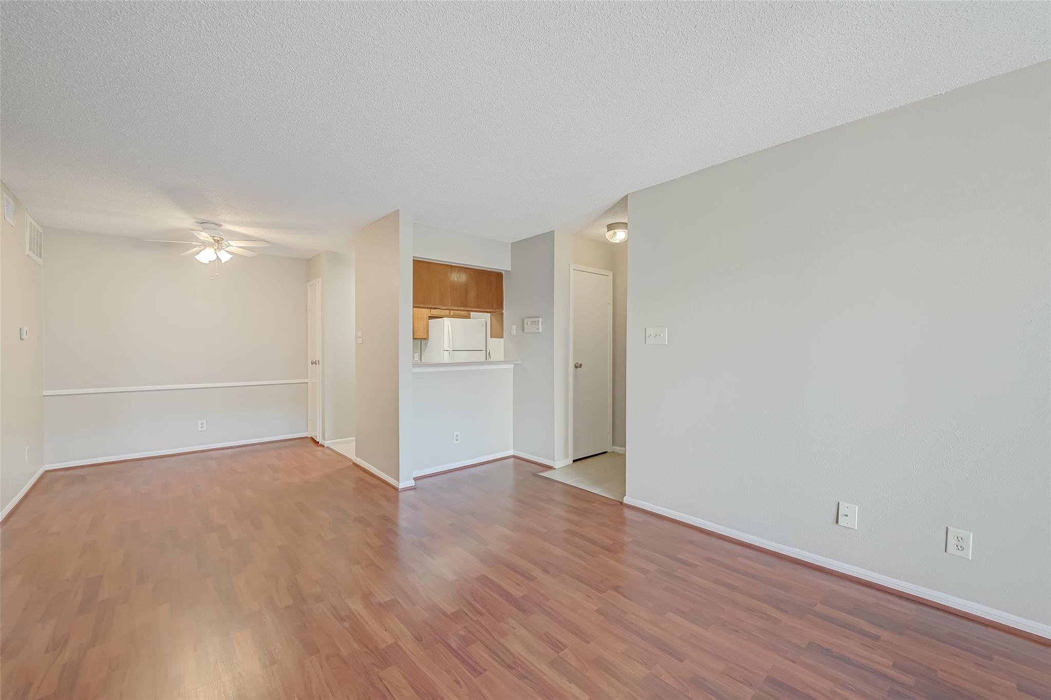 Nicely refreshed unit in Med Center area. Second floor condo close to parking, tennis courts, pool, one reserved parking space (#370) and plenty of guest parking. Easy access to 288, 610 and 45. Close proximity to the Texas medical center, NRG stadium, UT school of dentistry and stadium park/astrodome rail station providing quick access to downtown, memorial park and museum district. Balcony off the living room. The kitchen opens to dining and living with a breakfast bar. The bedroom has a large walk-in closet. Vinyl and tile flooring throughout. All info per Seller.