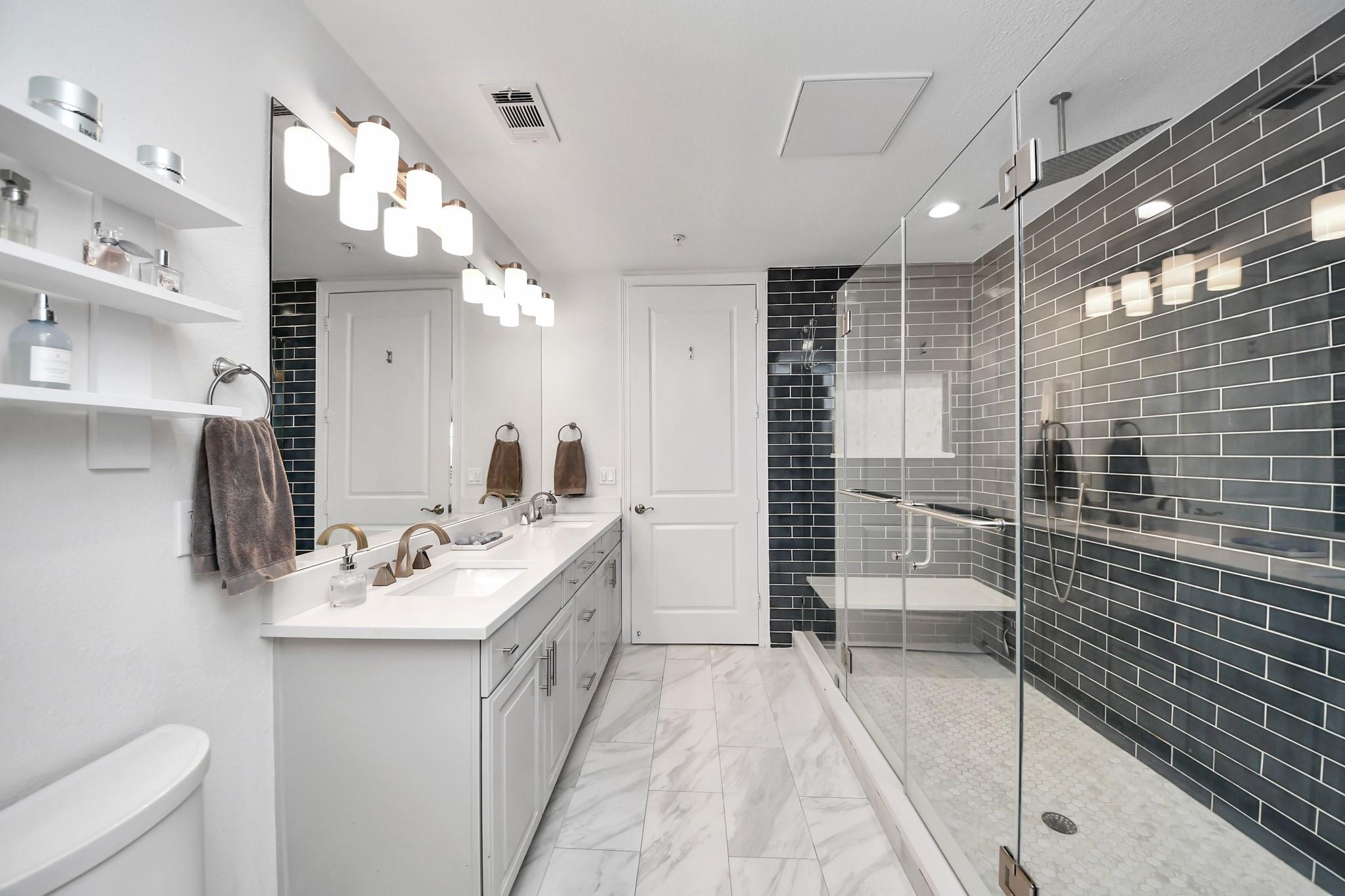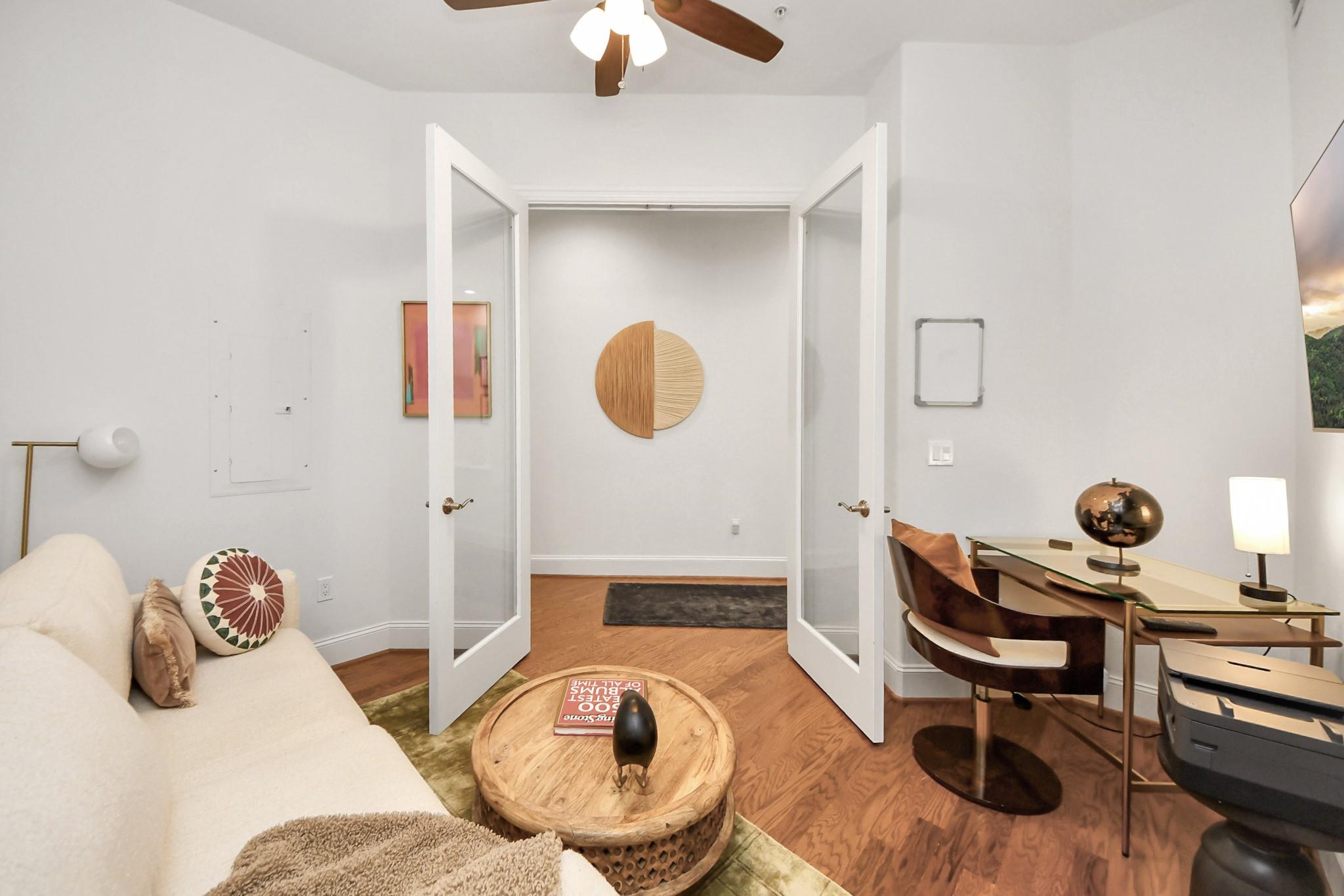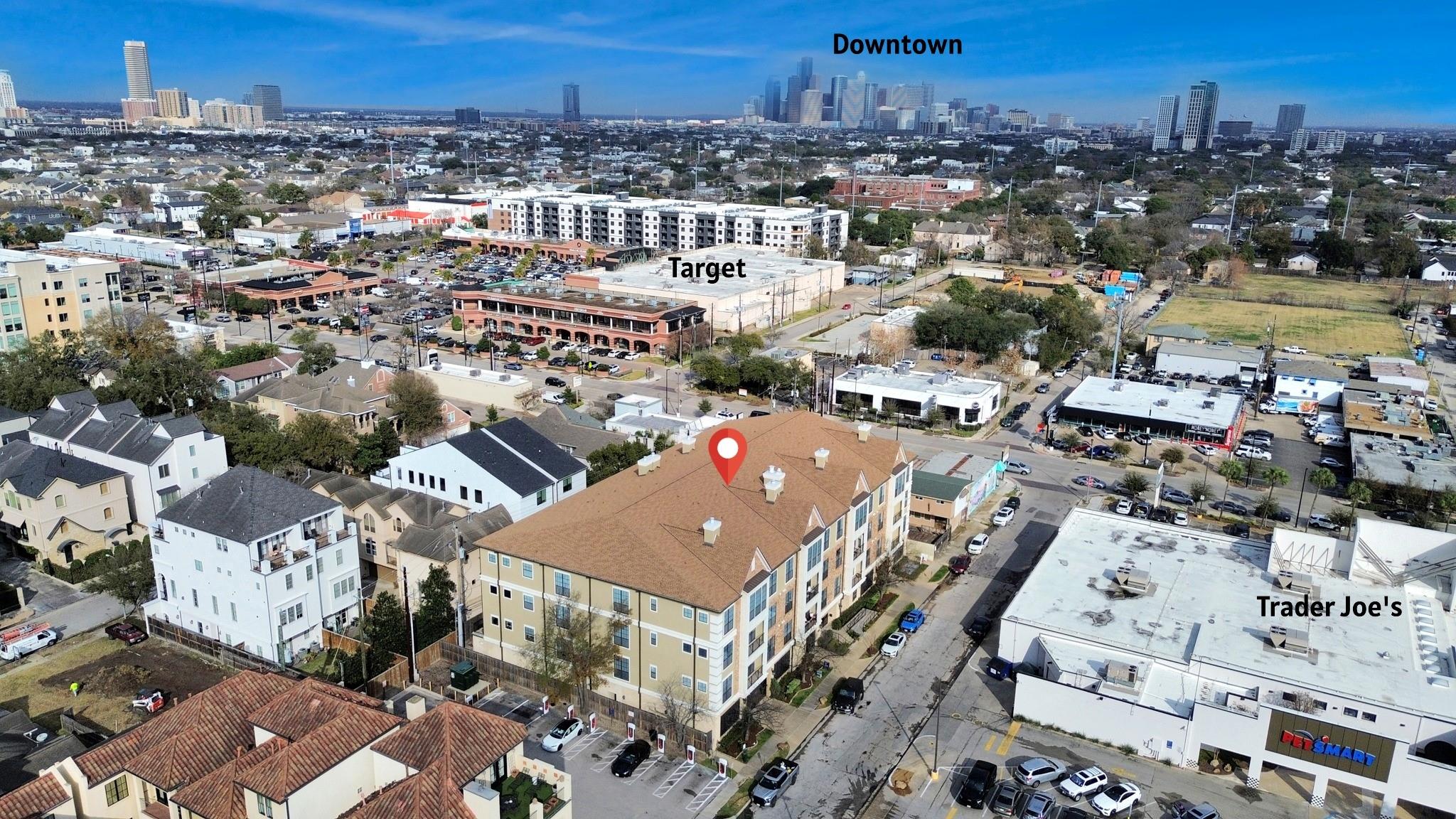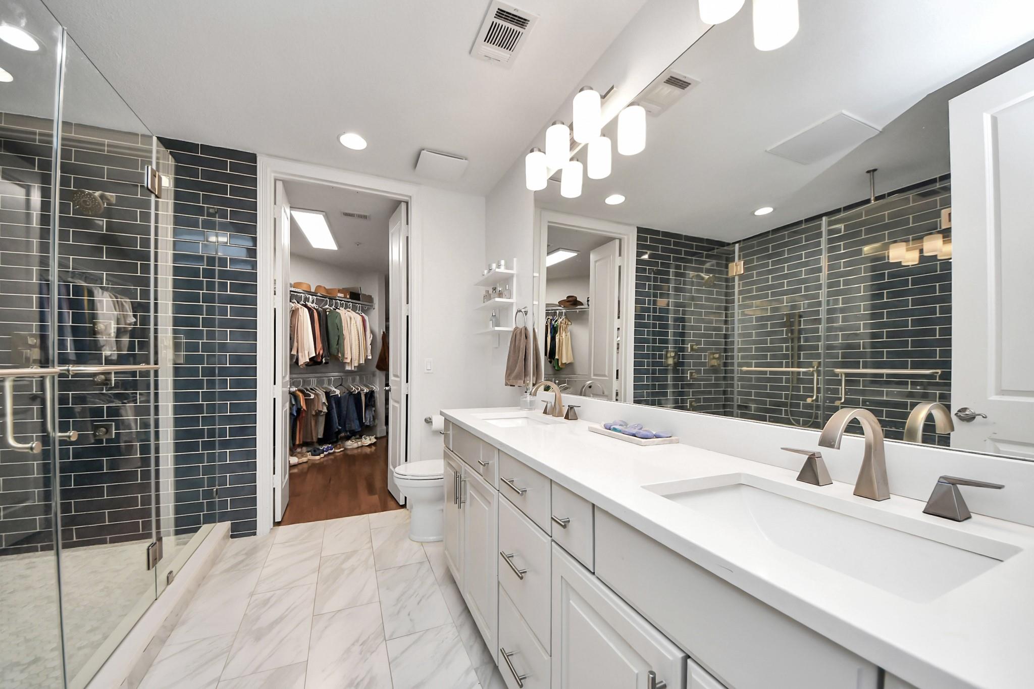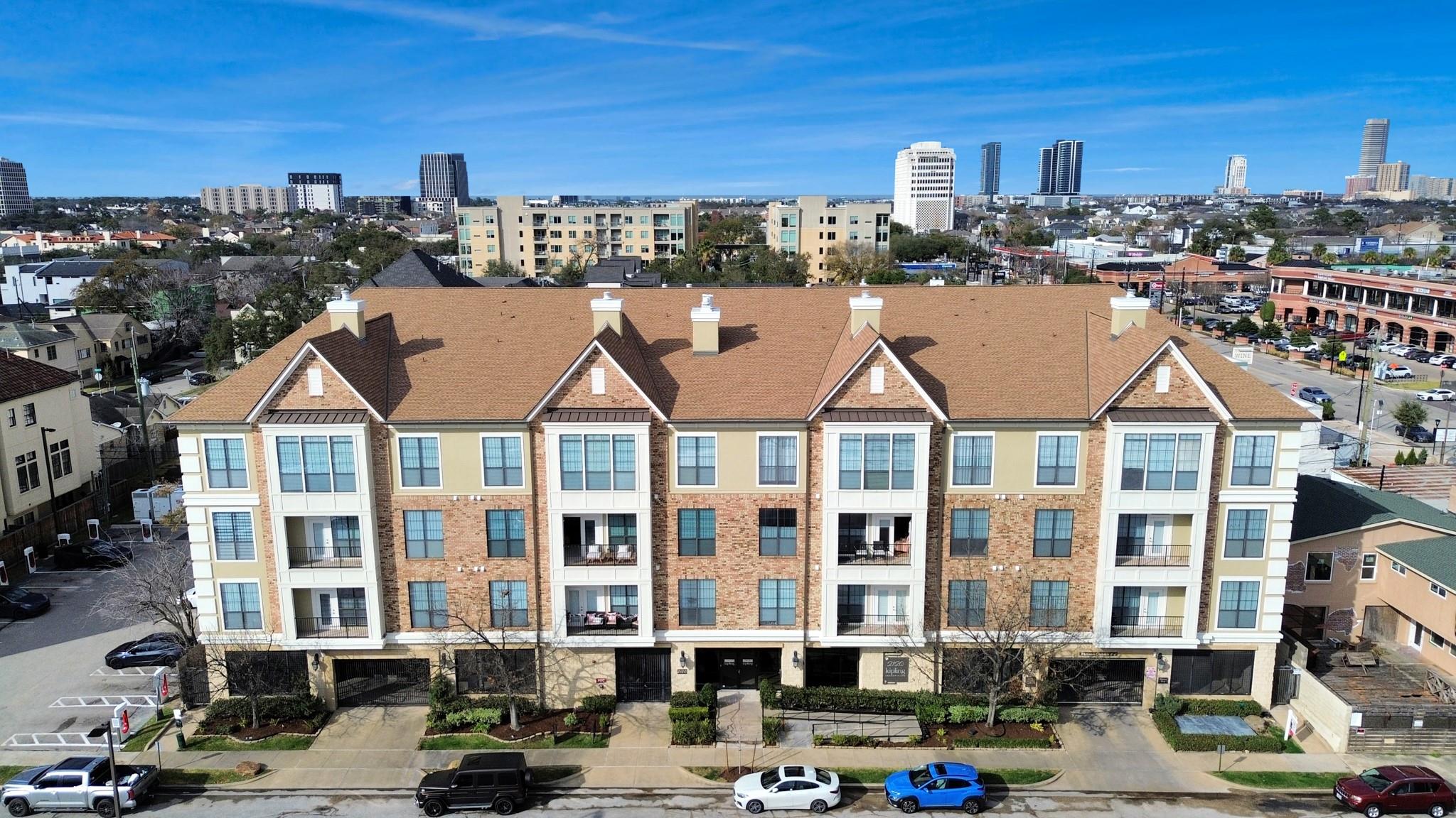 Beautifully updated (2023) corner-unit condo in the heart of Upper Kirby, across from Trader Joe’s and within walking distance to dining, shopping, and daily conveniences, no car needed! Open-concept floor plan with a gourmet kitchen featuring high-end appliances, quartz countertops, and abundant cabinetry. Engineered wood and tile flooring throughout — NO CARPET. The largest private balcony in the complex extends the living space and offers a peaceful spot to unwind. Split floor plan with guest suite opposite the primary for added privacy. Spacious office/study off the entry and full laundry room. Primary suite includes a spa-like bath and generous walk-in closet. Assigned parking in a ground-level garage, controlled access entry, and Tesla charging station next door. Building completed major renovations in Summer 2025, including exterior, roof, hallway, and lobby updates. Prime location near Midtown, Downtown, the Museum District, Rice University, and the Texas Medical Center.